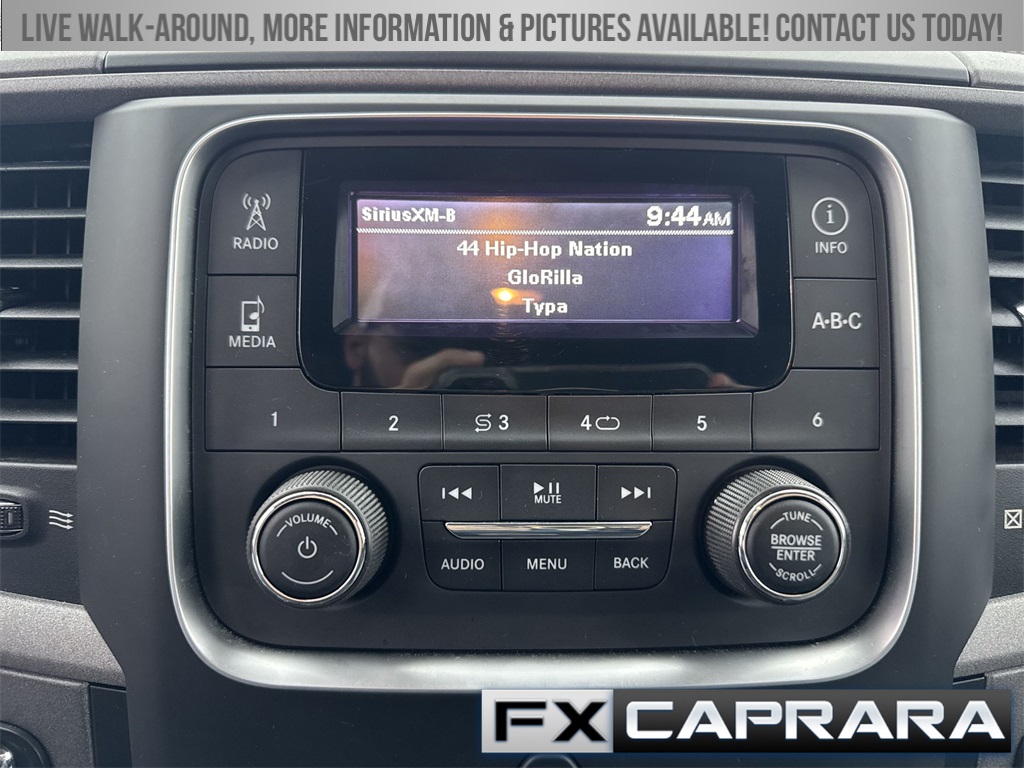 1-Yr SiriusXM Radio Service, 17" x 7" Aluminum Wheels, 17" x 7" Steel Wheels, 3.21 Rear Axle Ratio, 4-Wheel Disc Brakes, 40/20/40 Split Bench Seat, 6 Speakers, ABS brakes, Active Grille Shutters, Air Conditioning, AM/FM radio, Auto-dimming Rear-View mirror, Black Exterior Mirrors, Brake assist, Bright Front Bumper, Bright Grille, Bright Rear Bumper, Carpet Floor Covering, Center Hub, Chrome Appearance Group, Cloth 40/20/40 Bench Seat, Delay-off headlights, Driver door bin, Dual front impact airbags, Dual front side impact airbags, Electronic Shift, Electronic Stability Control, Exterior Mirrors w/Heating Element, For More Info, Call 800-643-2112, Front anti-roll bar, Front Armrest w/3 Cupholders, Front Center Armrest, Front wheel independent suspension, Fully automatic headlights, Heated door mirrors, Heavy Duty Vinyl 40/20/40 Split Bench Seat, Low tire pressure warning, Manual Adjust Seats, Media Hub (USB, AUX), No Satellite Coverage w/AK/HI, Occupant sensing airbag, Overhead airbag, ParkView Rear Back-Up Camera, Passenger door bin, Popular Equipment Group, Power door mirrors, Power steering, Power windows, Quick Order Package 22B Tradesman, Radio data system, Radio: 3.0, Rear anti-roll bar, Rear Folding Seat, Rear seat center armrest, Rear step bumper, Remote Keyless Entry w/All-Secure, Remote USB Port - Charge Only, SiriusXM Satellite Radio, Speed control, Storage Tray, Tachometer, Tilt steering wheel, Tip Start, Traction control, Tradesman Package, Variably intermittent wipers, Voltmeter.