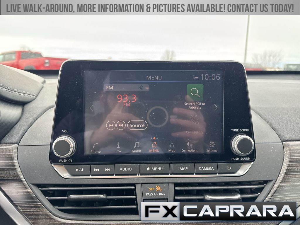 CVT with Xtronic, 17" Alloy Wheels, 4-Wheel Disc Brakes, 9 Speakers, ABS brakes, Air Conditioning, Alloy wheels, AM/FM radio: SiriusXM, Auto High-beam Headlights, Auto-dimming Rear-View mirror, Automatic temperature control, Blind Spot Warning, Body-Colored Splash Guards, Brake assist, Bumpers: body-color, Chrome Bumper Protector, Compass, Delay-off headlights, Driver door bin, Driver vanity mirror, Dual front impact airbags, Dual front side impact airbags, Electronic Stability Control, Emergency communication system: NissanConnect Services, Floor Mats/Trunk Mat/Hideaway Net, Four wheel independent suspension, Front anti-roll bar, Front Bucket Seats, Front Center Armrest, Front dual zone A/C, Front fog lights, Front reading lights, Fully automatic headlights, Garage door transmitter: HomeLink, Heated door mirrors, Heated Front Bucket Seats, Heated front seats, Heated steering wheel, Illuminated entry, Illuminated Kick Plates, Knee airbag, Leather Shift Knob, Leather-Appointed Seat Trim, Low tire pressure warning, Navigation System, NissanConnect featuring Apple CarPlay and Android Auto, Occupant sensing airbag, Outside temperature display, Overhead airbag, Overhead console, Panic alarm, Passenger door bin, Passenger vanity mirror, Power door mirrors, Power driver seat, Power moonroof, Power passenger seat, Power steering, Power windows, Radio data system, Radio: AM/FM/HD w/Bose Premium Sound System, Rear anti-roll bar, Rear Parking Sensors, Rear reading lights, Rear seat center armrest, Rear side impact airbag, Rear window defroster, Remote keyless entry, Security system, Speed control, Speed-sensing steering, Speed-Sensitive Wipers, Split folding rear seat, Sport steering wheel, Steering wheel mounted audio controls, Tachometer, Telescoping steering wheel, Tilt steering wheel, Traction control, Trip computer, Trunk Organizer Tray, Turn signal indicator mirrors, Variably intermittent wipers, CVT with Xtronic.