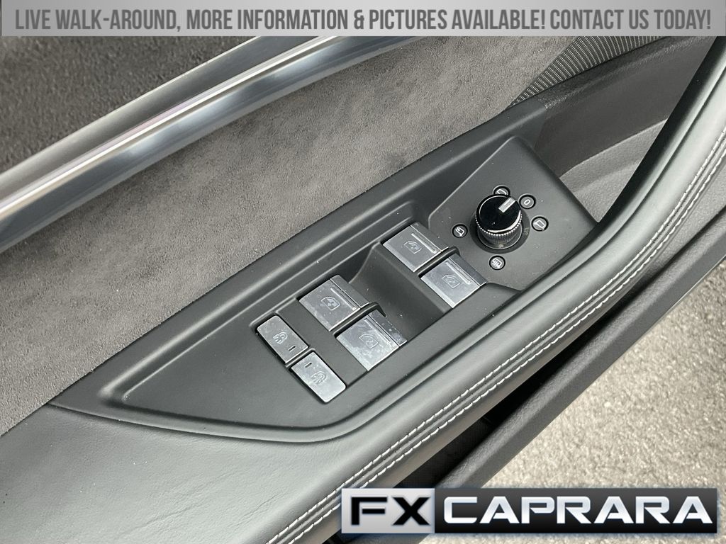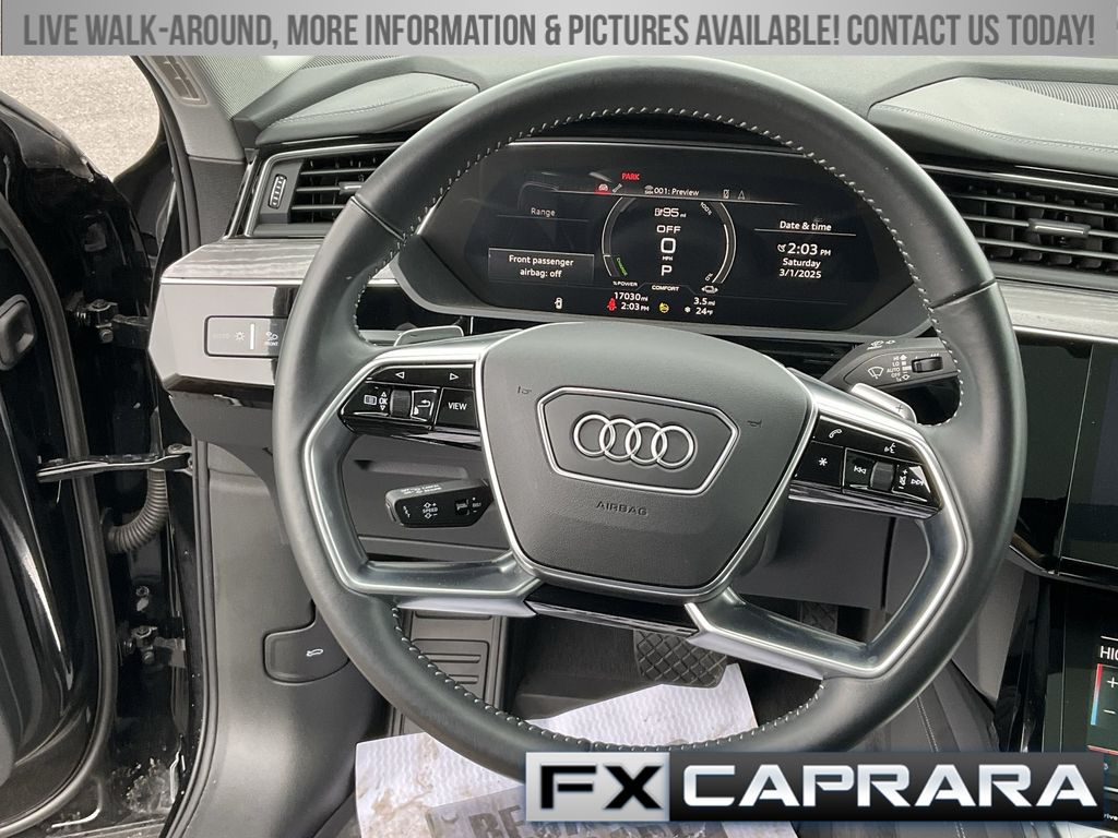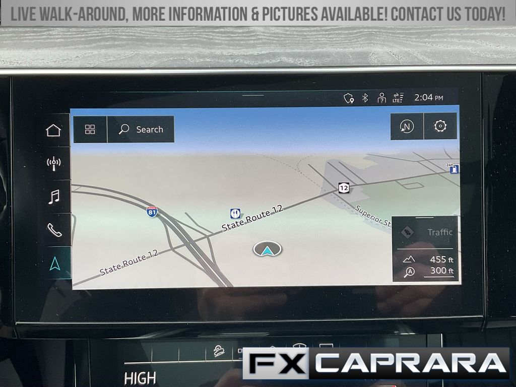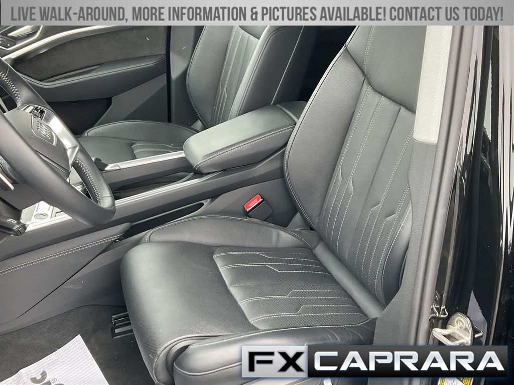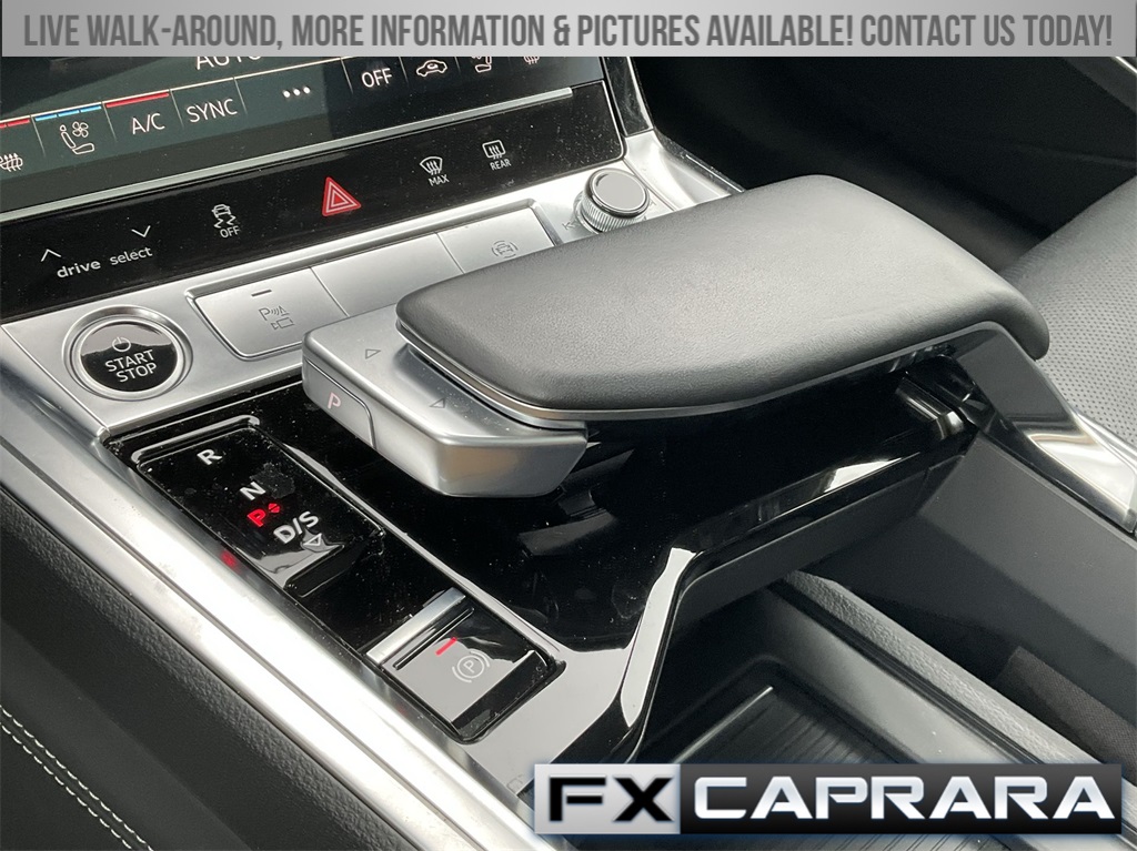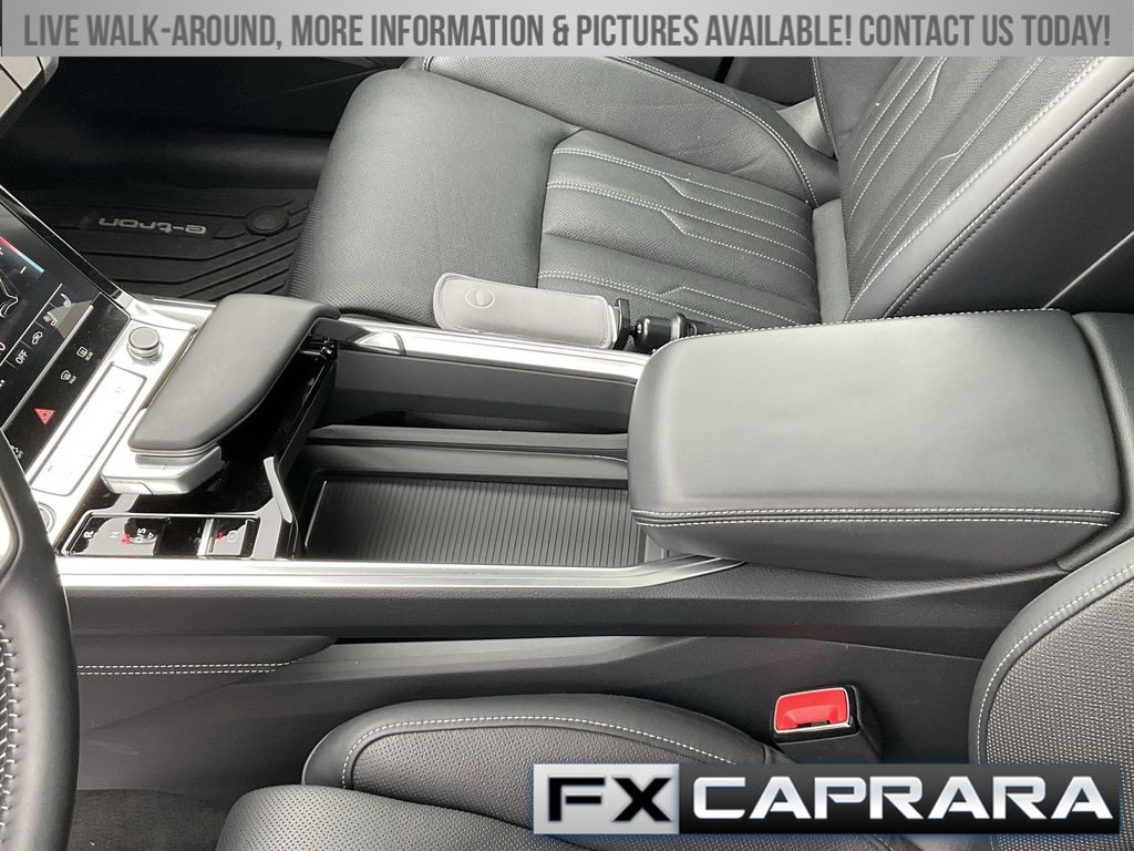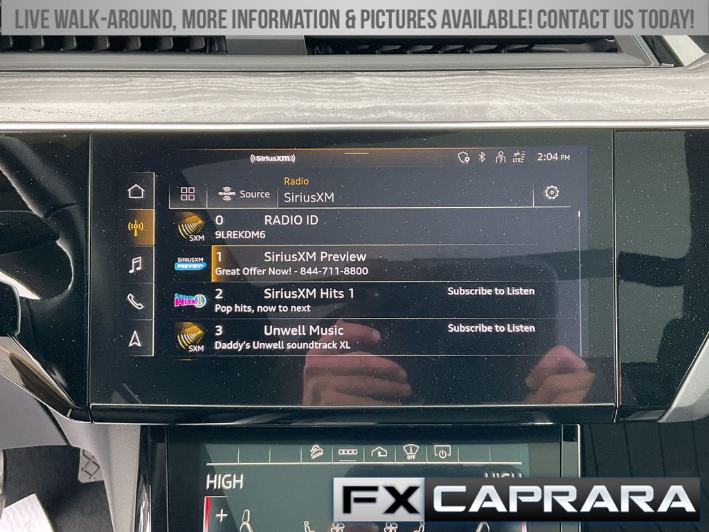 10 Speakers, 2nd Charge Port (AC Passenger Side), 4-Wheel Disc Brakes, 9.08 Axle Ratio, ABS brakes, Adaptive suspension, Air Conditioning, All Weather Floor Mats, Alloy wheels, Ambient Interior Lighting Package, Audi Active Lane Assist w/Emergency Assist, Audi Adaptive Cruise Assist, Audi e-tron Beam Front & Rear Doors, Audi Phone Box w/Wireless Charging, Audi smartphone interface (Apple CarPlay/Android Auto), Auto High-beam Headlights, Auto-dimming door mirrors, Auto-dimming Rear-View mirror, Auto-leveling suspension, Automatic temperature control, Bang & Olufsen 3D Premium Sound System, Black Optic Exterior Package, Black Optic Package (98T), Brake assist, Bumpers: body-color, Compass, Delay-off headlights, Digital Matrix Headlight, Driver door bin, Driver vanity mirror, Dual front impact airbags, Dual front side impact airbags, Dual Pane Acoustic Glass for Side Windows, Electronic Stability Control, Emergency communication system: Audi connect CARE, PRIME & PLUS, Exterior Parking Camera Rear, Four wheel independent suspension, Front anti-roll bar, Front Bucket Seats, Front Center Armrest, Front dual zone A/C, Front fog lights, Front reading lights, Fully automatic headlights, Garage door transmitter: HomeLink, Head-Up Display, Heated 8-Way Power Front Seats, Heated door mirrors, Heated front seats, Heated Rear Seats, Heated steering wheel, Illuminated entry, Illuminated Front & Rear Aluminum Door Sills, Individual Contour Heated & Ventilated Front Seats, Intersection Assist, Ionization & Fragrance Air Quality Package, Leather Seating Surfaces, LED Interior Multi-Color Ambient/Contour Lighting, Low tire pressure warning, Manual Sunshades for Rear Doors, Matrix-Design LED Headlights, Memory seat, Navigation system: Audi MMI Navigation plus with Touch Response, Occupant sensing airbag, Outside temperature display, Overhead airbag, Overhead console, Panic alarm, Passenger door bin, Passenger Seat Memory, Passenger vanity mirror, Power Door Closers, Power door mirrors, Power driver seat, Power Liftgate, Power moonroof: Panoramic, Power passenger seat, Power steering, Power windows, Prestige Package, Privacy Trunk Cover, Radio data system, Radio: HD FM/Sirius Satellite, Rear air conditioning, Rear anti-roll bar, Rear dual zone A/C, Rear fog lights, Rear reading lights, Rear seat center armrest, Rear Side Airbags, Rear window defroster, Rear window wiper, Remote keyless entry, Roof rack: rails only, Security system, Speed control, Speed-sensing steering, Split folding rear seat, Spoiler, Steering wheel memory, Steering wheel mounted audio controls, Telescoping steering wheel, Tilt steering wheel, Top View Camera System, Towing Package, Traction control, Traffic Sign Recognition, Trip computer, Turn signal indicator mirrors, Valcona Semi-Aniline Leather Seat Trim, Variably intermittent wipers, Wheels: 20" 5-Double-Spoke Bi-Color Design, Wheels: 21" 5-Spoke Bi-Color Turbine-Design.