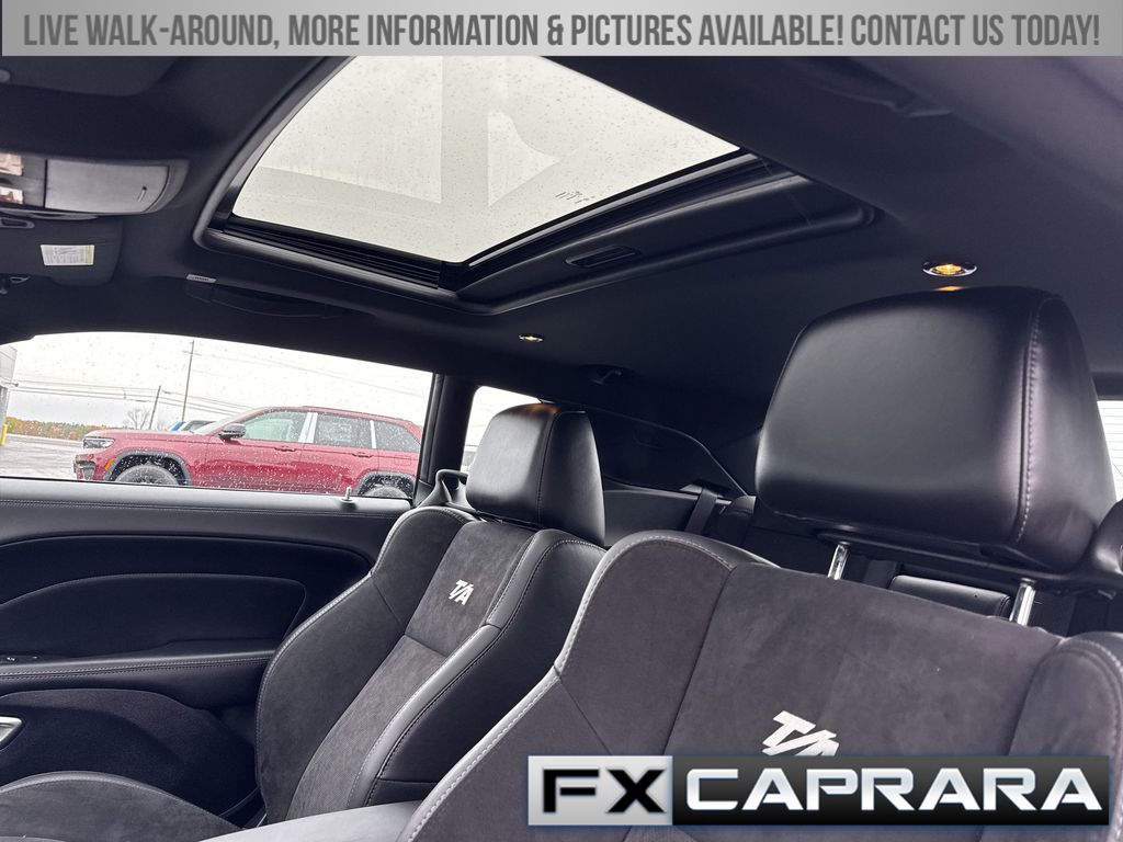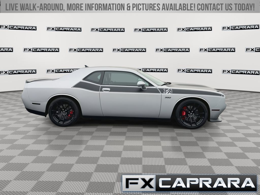 1-Yr SiriusXM Guardian Trial, 230MM Rear Axle, 392 Fender Decal, 4-Wheel Disc Brakes, 6 Speakers, ABS brakes, Air Conditioning, Alloy wheels, AM/FM radio: SiriusXM, Anti-whiplash front head restraints, Apple CarPlay, Apple CarPlay/Android Auto, Auto-dimming Rear-View mirror, Automatic temperature control, Black Satin Painted Hood, Blind Spot & Cross Path Detection, Brake assist, Bumpers: body-color, Compass, Delay-off headlights, Door Trim Panel w/Ambient Lighting, Driver Convenience Group, Driver door bin, Driver vanity mirror, Dual front impact airbags, Dual front side impact airbags, Electronic Stability Control, Emergency communication system: SiriusXM Guardian, Four wheel independent suspension, Front anti-roll bar, Front Bucket Seats, Front Center Armrest, Front dual zone A/C, Front fog lights, Front License Plate Bracket, Front reading lights, Fully automatic headlights, Functional Hood Scoop, Garage door transmitter, Gloss Black I/P Cluster Trim Rings, Google Android Auto, GPS Antenna Input, Heated door mirrors, Heated front seats, Heated Steering Wheel, Heated steering wheel, High-Intensity Discharge Headlamps, Houndstooth Cloth Performance Seats, Illuminated Air-Catcher Headlamps, Illuminated entry, Integrated Center Stack Radio, Integrated Voice Command w/Bluetooth, Leather Shift Knob, Low tire pressure warning, Media Hub (2 USB, AUX), MOPAR Black Hood Pin Kit, MOPAR Cold Air Intake System, Outside temperature display, Overhead airbag, Overhead console, Panic alarm, ParkView Rear Back-Up Camera, Passenger door bin, Passenger vanity mirror, Plus Package, Power door mirrors, Power driver seat, Power Multi-Function Foldaway Mirrors, Power steering, Power Sunroof, Power Tilt/Telescope Steering Column, Power windows, Premium-Stitched Dash Panel, Quick Order Package 23G R/T Scat Pack, Radio data system, Radio: Uconnect 4C w/8.4" Display, Radio/Driver Seat/Mirrors Memory, Rear anti-roll bar, Rear reading lights, Rear seat center armrest, Rear window defroster, Red Brake Calipers, Remote keyless entry, Satin Wrap Roof/Decklid, Scat Pack Logo Houndstooth Seat, Security system, Shark Fin Antenna, SiriusXM Satellite Radio, Speed control, Speed-sensing steering, Split folding rear seat, Spoiler, Sport steering wheel, Steering wheel mounted audio controls, T/A Bodyside Graphic, T/A Package, T/A Spoiler Decal, Tachometer, Telescoping steering wheel, Tilt steering wheel, Traction control, Trip computer, USB Host Flip, Variably intermittent wipers, Wheels: 20" x 9.5" Forged/Painted Aluminum, Wheels: 20" x 9" Lo Gloss Granite Crystal, White Face Instrument Cluster.