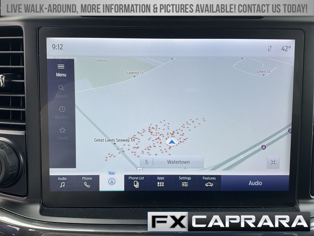 4WD, 3.55 Axle Ratio, 4-Wheel Disc Brakes, ABS brakes, Air Conditioning, Auto High-beam Headlights, Brake assist, Class IV Trailer Hitch Receiver, Compass, Delay-off headlights, Driver door bin, Dual front impact airbags, Dual front side impact airbags, Electronic Stability Control, Emergency communication system: SYNC 4 911 Assist, Exterior Parking Camera Rear, Front anti-roll bar, Front reading lights, Front wheel independent suspension, Fully automatic headlights, GVWR: 6,600 lbs Payload Package, Illuminated entry, Low tire pressure warning, Occupant sensing airbag, Outside temperature display, Overhead airbag, Overhead console, Panic alarm, Passenger door bin, Passenger vanity mirror, Power door mirrors, Power steering, Power windows, Radio data system, Radio: AM/FM SiriusXM w/360L, Rear step bumper, Remote keyless entry, Security system, Speed-sensing steering, Split folding rear seat, Steering wheel mounted audio controls, SYNC 4 w/Enhanced Voice Recognition, Tachometer, Telescoping steering wheel, Tilt steering wheel, Traction control, Trip computer, Variably intermittent wipers, Voltmeter, 4WD.