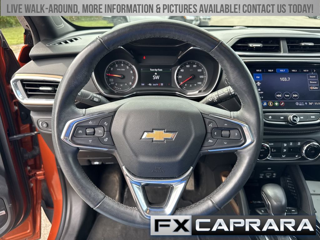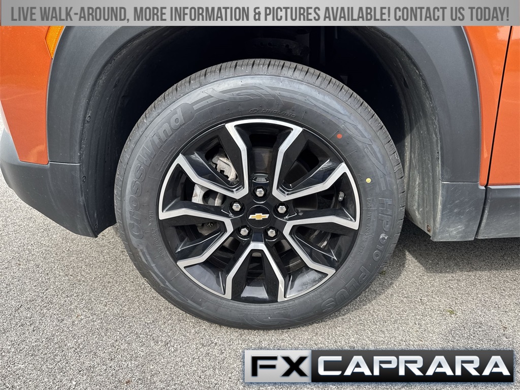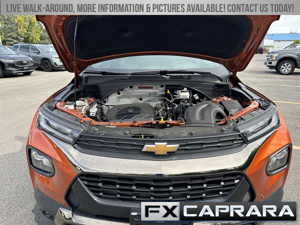 TrailBlazer ACTIV, 4D Sport Utility, 1.3L Ecotec Turbo DOHC SIDI w/VVT, 9-Speed Automatic, AWD, Vivid Orange Metallic, Jet Black With Arizona Accents Artificial Leather, 1 Type-A & 1 Type-C USB Charging-Only Ports, 120-Volt Power Outlet, 4.2" Diagonal Multi-Color Driver Info Center, 8" Diagonal Color Touchscreen Display, Adaptive Cruise Control, Bose Premium 7-Speaker Audio System Feature, Cabin Humidity Sensor, Convenience Package, Driver & Front Passenger Illuminated Vanity Mirrors, Driver Confidence Package, Dual-Pane Panoramic Power Sunroof, Hands-Free Power Programmable Liftgate, HD Radio, HD Rear Vision Camera, Heated Steering Wheel, Inside Rear-View Auto-Dimming Mirror, Lane Change Alert w/Side Blind Zone Alert, LED Headlamps, Memory Card Receptacle, Preferred Equipment Group 1SA, Radio: Chevrolet Infotainment 3 Plus System, Rear Cross Traffic Alert, Rear Park Assist, Single-Zone Auto Climate Control Air Conditioning, SiriusXM w/360L, Sun & Liftgate Package, Technology Package, Wireless Charging, 2-Way Power Driver Lumbar Seat Adjuster, 3.17 Axle Ratio, 4-Way Manual Front Passenger Seat Adjuster, 4-Wheel Disc Brakes, 6 Speakers, 6-Speaker Audio System Feature w/Amplifier, 8-Way Power Driver Seat Adjuster, ABS brakes, Air Conditioning, Alloy wheels, AM/FM radio: SiriusXM, Auto High-beam Headlights, Brake assist, Bumpers: body-color, Compass, Delay-off headlights, Driver door bin, Driver vanity mirror, Dual front impact airbags, Dual front side impact airbags, Electronic Stability Control, Emergency communication system: OnStar and Chevrolet connected services capable, Exterior Parking Camera Rear, Flat-Folding Front Passenger Seatback, Front anti-roll bar, Front Bucket Seats, Front Center Armrest, Front fog lights, Front License Plate Bracket, Front reading lights, Front wheel independent suspension, Fully automatic headlights, Heated door mirrors, Heated Driver & Front Passenger Seats, Heated front seats, Heated steering wheel, Illuminated entry, Knee airbag, Leather Shift Knob, Leather steering wheel, Leatherette Seat Trim, Low tire pressure warning, Not Equipped w/Driver & Fr Passenger Heated Seats, Not Equipped w/Rear Park Assist, Occupant sensing airbag, Overhead airbag, Overhead console, Panic alarm, Passenger door bin, Passenger vanity mirror, Power door mirrors, Power driver seat, Power steering, Power windows, Radio data system, Radio: Chevrolet Infotainment 3 System, Rear seat center armrest, Rear side impact airbag, Rear window defroster, Rear window wiper, Remote keyless entry, Ride & Handling Suspension, Roof rack: rails only, Security system, SiriusXM Radio, Speed control, Split folding rear seat, Spoiler, Steering wheel mounted audio controls, Summit White Two-Tone Roof, Tachometer, Telescoping steering wheel, Tilt steering wheel, Traction control, Trip computer, Variably intermittent wipers, Wheels: 17" High Gloss Black Machined Aluminum, Wireless Apple CarPlay/Android Auto, TrailBlazer ACTIV, 4D Sport Utility, 1.3L Ecotec Turbo DOHC SIDI w/VVT, 9-Speed Automatic, AWD, Vivid Orange Metallic, Jet Black With Arizona Accents Artificial Leather, 1 Type-A & 1 Type-C USB Charging-Only Ports, 120-Volt Power Outlet, 4.2" Diagonal Multi-Color Driver Info Center, 8" Diagonal Color Touchscreen Display, Adaptive Cruise Control, Bose Premium 7-Speaker Audio System Feature, Cabin Humidity Sensor, Conve