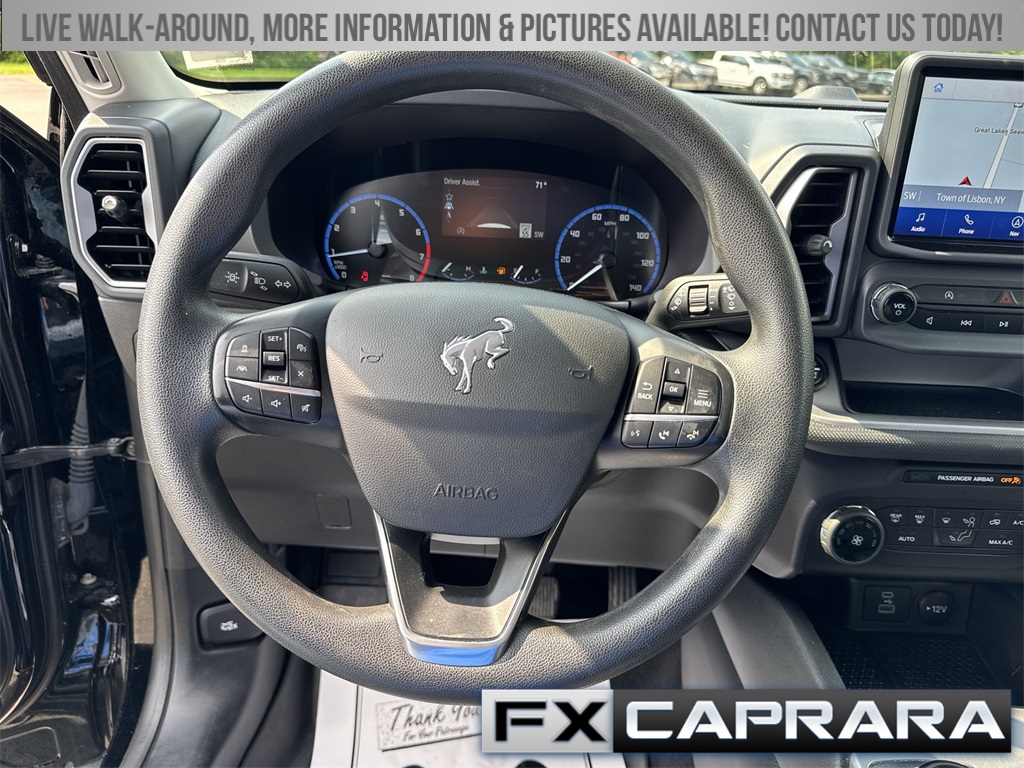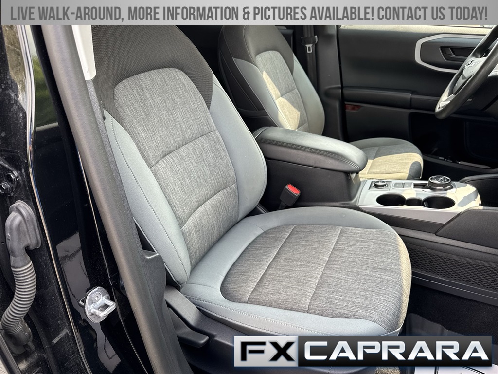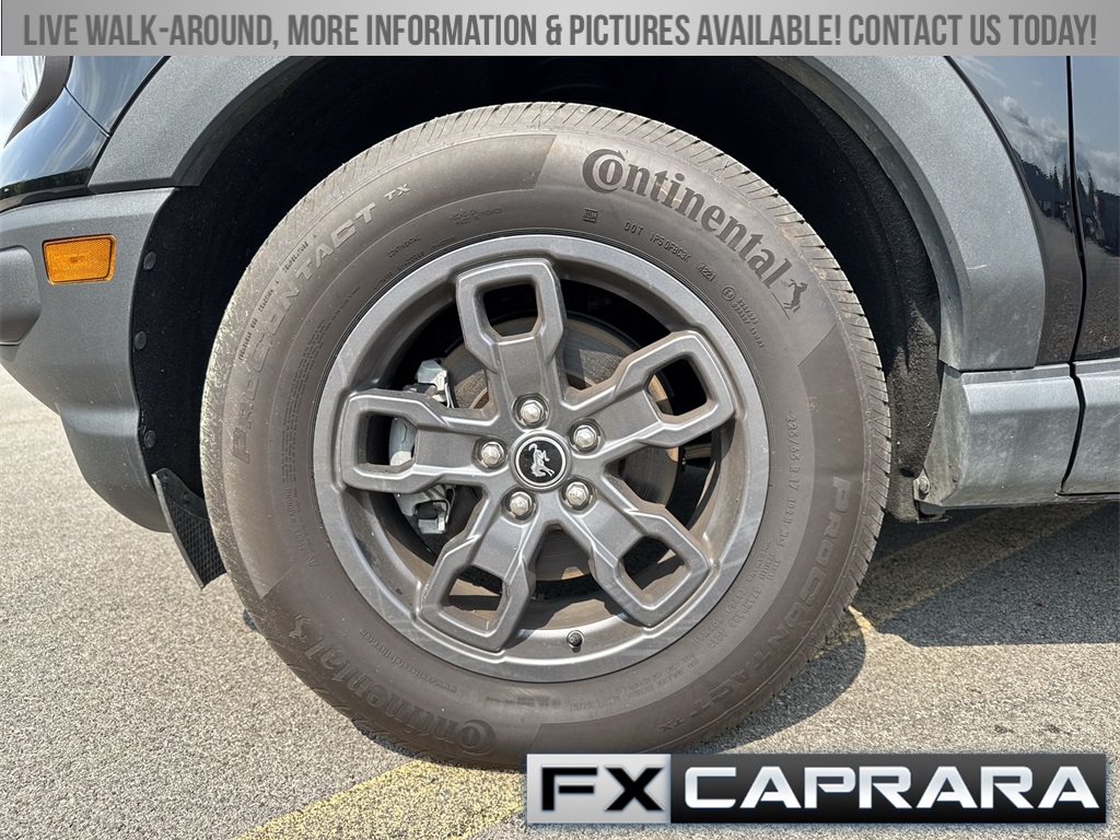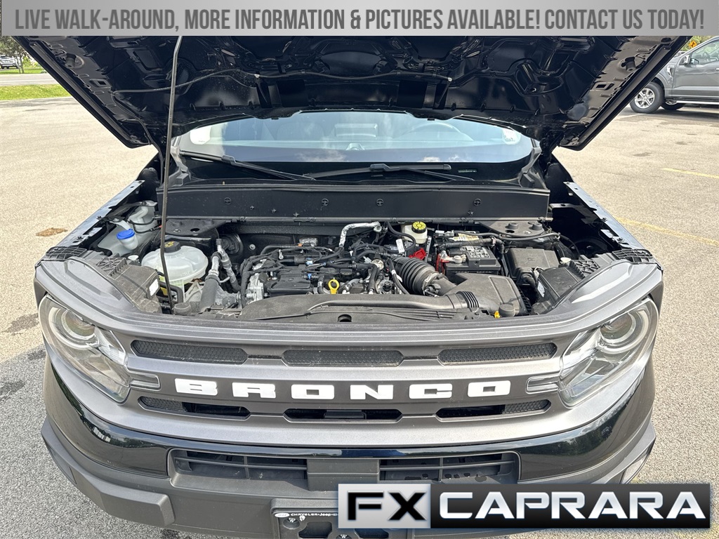 Bronco Sport Big Bend, 4D Sport Utility, 1.5L EcoBoost, 4WD, Shadow Black, Medium Dark Slate Cloth, Alloy wheels, Auto High-beam Headlights, Brake assist, Delay-off headlights, Electronic Stability Control, Equipment Group 200A, Evasive Steering Assist, Ford Co-Pilot360 Assist+, Fully automatic headlights, Intelligent Adaptive Cruise Control w/Stop & Go, Voice-Activated Touchscreen Navigation System, 3.80 Axle Ratio, 4-Wheel Disc Brakes, 6 Speakers, ABS brakes, Air Conditioning, AM/FM radio: SiriusXM, AM/FM Stereo, Automatic temperature control, Compass, Driver door bin, Driver vanity mirror, Dual front impact airbags, Dual front side impact airbags, Emergency communication system: SYNC 3 911 Assist, Four wheel independent suspension, Front & Rear Floor Liners, Front anti-roll bar, Front Bucket Seats, Front Center Armrest, Front reading lights, Heated door mirrors, Illuminated entry, Knee airbag, Low tire pressure warning, Occupant sensing airbag, Outside temperature display, Overhead airbag, Overhead console, Panic alarm, Passenger door bin, Passenger vanity mirror, Power door mirrors, Power steering, Power windows, Radio data system, Rear anti-roll bar, Rear reading lights, Rear seat center armrest, Rear window defroster, Rear window wiper, Remote keyless entry, Roof rack: rails only, Security system, SiriusXM Radio, Speed control, Speed-sensing steering, Speed-Sensitive Wipers, Split folding rear seat, Steering wheel mounted audio controls, SYNC 3 Communications & Entertainment System, SYNC 3/Apple CarPlay/Android Auto, Tachometer, Telescoping steering wheel, Tilt steering wheel, Traction control, Trip computer, Unique Cloth Front Bucket Seats, Variably intermittent wipers, Wheels: 17" Carbonized Gray-Painted Aluminum, Bronco Sport Big Bend, 4D Sport Utility, 1.5L EcoBoost, 4WD, Shadow Black, Medium Dark Slate Cloth, Alloy wheels, Auto High-beam Headlights, Brake assist, Delay-off headlights, Electronic Stability Control, Equipment Group 200A, Evasive Steering Assist, Ford Co-Pilot360 Assist+, Fully automatic headlights, Intelligent Adaptive Cruise Control w/Stop & Go, Voice-Activated Touchscreen Navigation System.