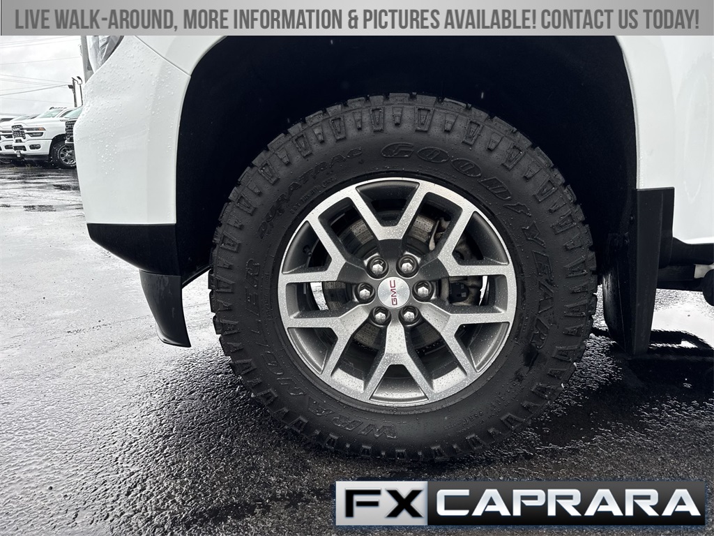 4WD, 3.42 Rear Axle Ratio, 4-Wheel Disc Brakes, 6 Speakers, 6-Speaker Audio System Feature, ABS brakes, Air Conditioning, Alloy wheels, AM/FM radio: SiriusXM, Apple CarPlay/Android Auto, Auto-dimming Rear-View mirror, Automatic temperature control, Bumpers: body-color, Cloth Seat Trim, Compass, Delay-off headlights, Driver 6-Way Power Seat Adjuster, Driver door bin, Driver Instrument Information Enhanced Display, Driver vanity mirror, Dual front impact airbags, Dual front side impact airbags, Electronic Stability Control, Emergency communication system: OnStar and GMC Connected Services capable, Exterior Parking Camera Rear, Front anti-roll bar, Front Bucket Seats, Front Center Armrest, Front fog lights, Front reading lights, Front wheel independent suspension, Fully automatic headlights, HD Radio, Heated door mirrors, Heated Steering Wheel, Hitch Guidance, Illuminated entry, Low tire pressure warning, Occupant sensing airbag, Outside temperature display, Overhead airbag, Overhead console, Panic alarm, Passenger door bin, Passenger vanity mirror, Power door mirrors, Power Driver Lumbar Control Seat Adjuster, Power driver seat, Power steering, Power windows, Premium audio system: GMC Infotainment System, Radio data system, Radio: AM/FM w/8" Diagonal Color Touch-Screen, Rear reading lights, Rear seat center armrest, Rear step bumper, Rear window defroster, Remote keyless entry, Security system, SiriusXM Radio, Speed control, Speed-sensing steering, Steering wheel mounted audio controls, Tachometer, Telescoping steering wheel, Tilt steering wheel, Tow/Haul Mode, Traction control, Trip computer, Variably intermittent wipers, Wheels: 17" x 8" Dark Argent Metallic, 4WD.