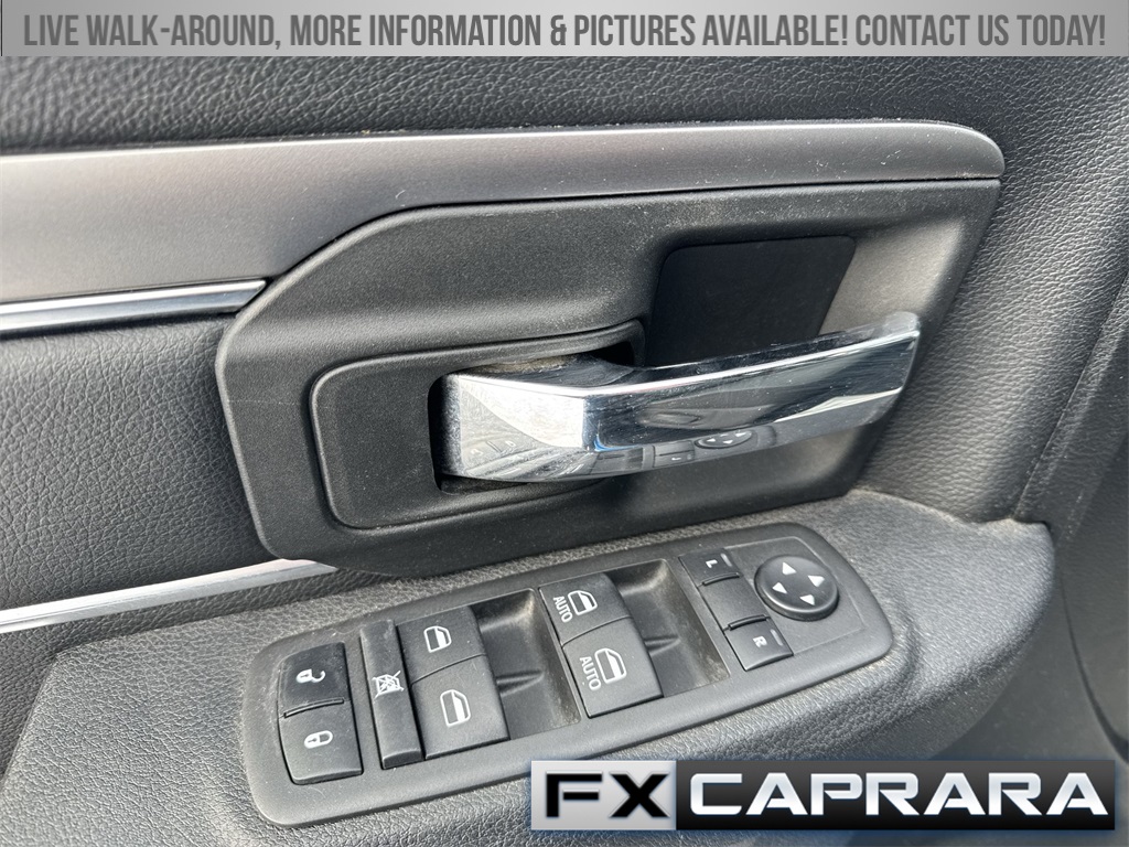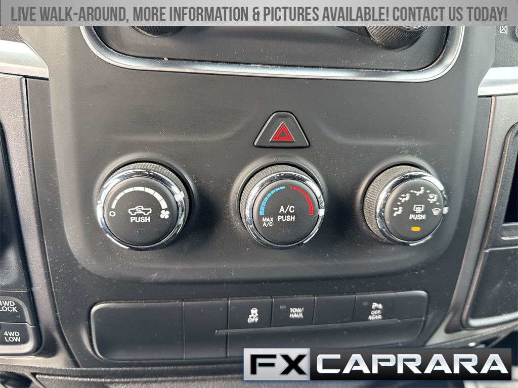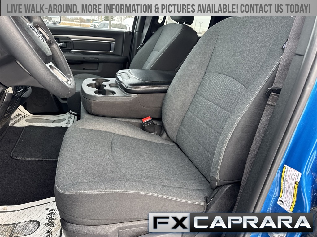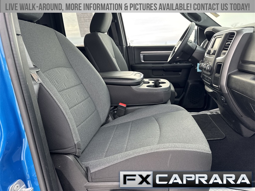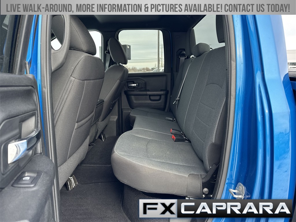 3.21 Rear Axle Ratio, 4-Wheel Disc Brakes, 40/20/40 Split Bench Seat, 4x4 Flat Black Badge, 6 Speakers, ABS brakes, Active Grille Shutters, Air Conditioning, Alloy wheels, AM/FM radio: SiriusXM, Audio Input Jack for Mobile Devices, B-Pillar Black Out, Bi-Function Halogen Projector Headlamps, Black Exterior Mirrors, Black Exterior Truck Badging, Black Grille w/RAM Lettering, Black Headlamp Filler Panel, Black Powder Coated Front Bumper, Black Powder Coated Rear Bumper, Black RAM Head Tailgate Badge, Black Wheel Flares, Brake assist, Bumpers: chrome, Center Hub, Charge Only Remote USB Port, Class IV Receiver Hitch, Cloth 40/20/40 Bench Seat, Compass, Delay-off headlights, Driver door bin, Dual front impact airbags, Dual front side impact airbags, Electronic Shift, Electronic Stability Control, Engine Calibration Flash, V2, Exterior Mirrors w/Heating Element, Front anti-roll bar, Front Armrest w/3 Cupholders, Front Center Armrest w/Storage, Front reading lights, Front wheel independent suspension, Front Wheel Well Liners, Fully automatic headlights, GPS Antenna Input, Heated door mirrors, Illuminated entry, Integrated Voice Command w/Bluetooth, Low tire pressure warning, Occupant sensing airbag, Outside temperature display, Overhead airbag, Overhead console, Panic alarm, ParkSense Rear Park Assist System, ParkView Rear Back-Up Camera, Passenger door bin, Passenger vanity mirror, Power door mirrors, Power steering, Power windows, Quick Order Package 29F Warlock, Radio data system, Radio: Uconnect 3 w/5" Display, Raised Ride Height, Rear anti-roll bar, Rear Extra HD Shock Absorbers, Rear step bumper, Remote keyless entry, Remote Start & Security Alarm Group, Remote Start System, Remote USB Port, Rotary Shifter-Black, Security Alarm, Semi-Gloss Black Hub, Speed control, Sport Tail Lamps, Tachometer, Tilt steering wheel, Tip Start, Traction control, Trip computer, Variably intermittent wipers, Voltmeter, Warlock, Warlock Interior Accents, Wheels: 20" x 9" Semi-Gloss Black Aluminum.