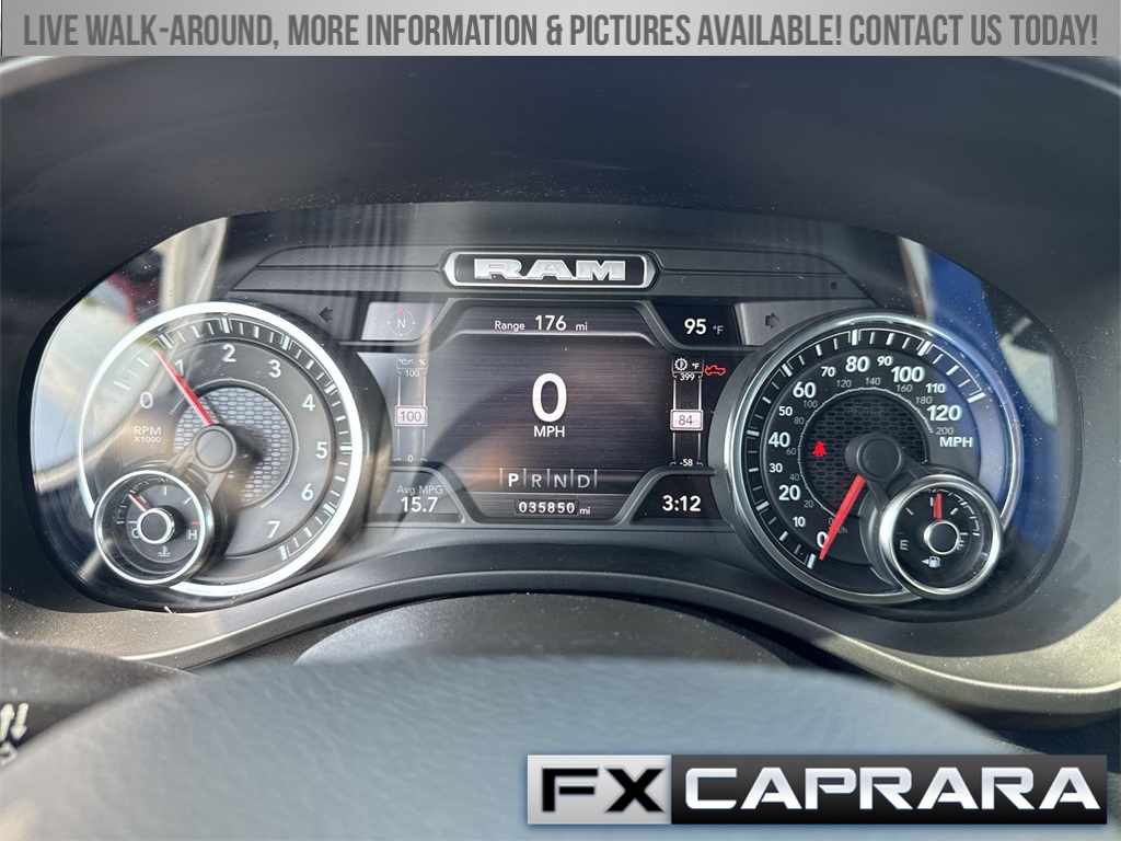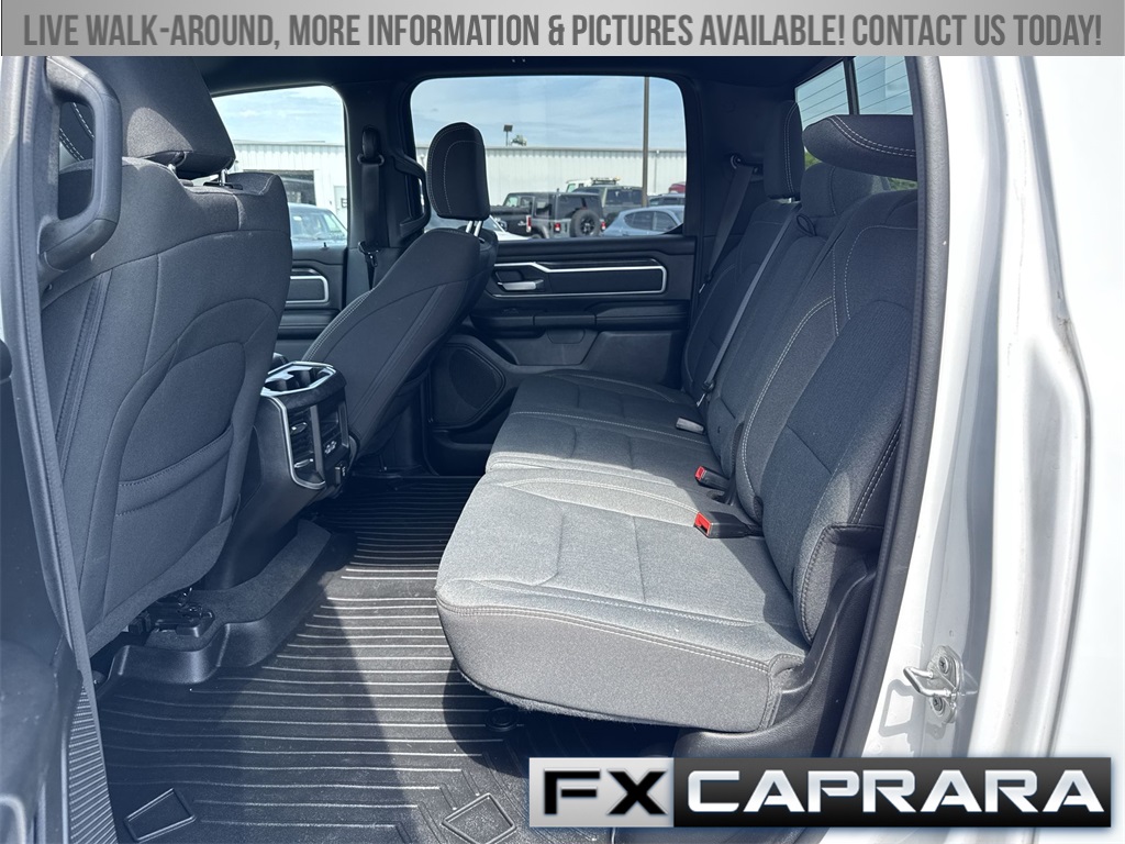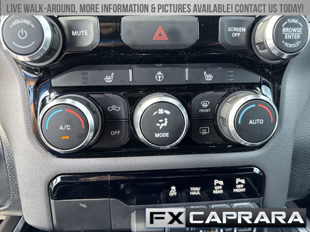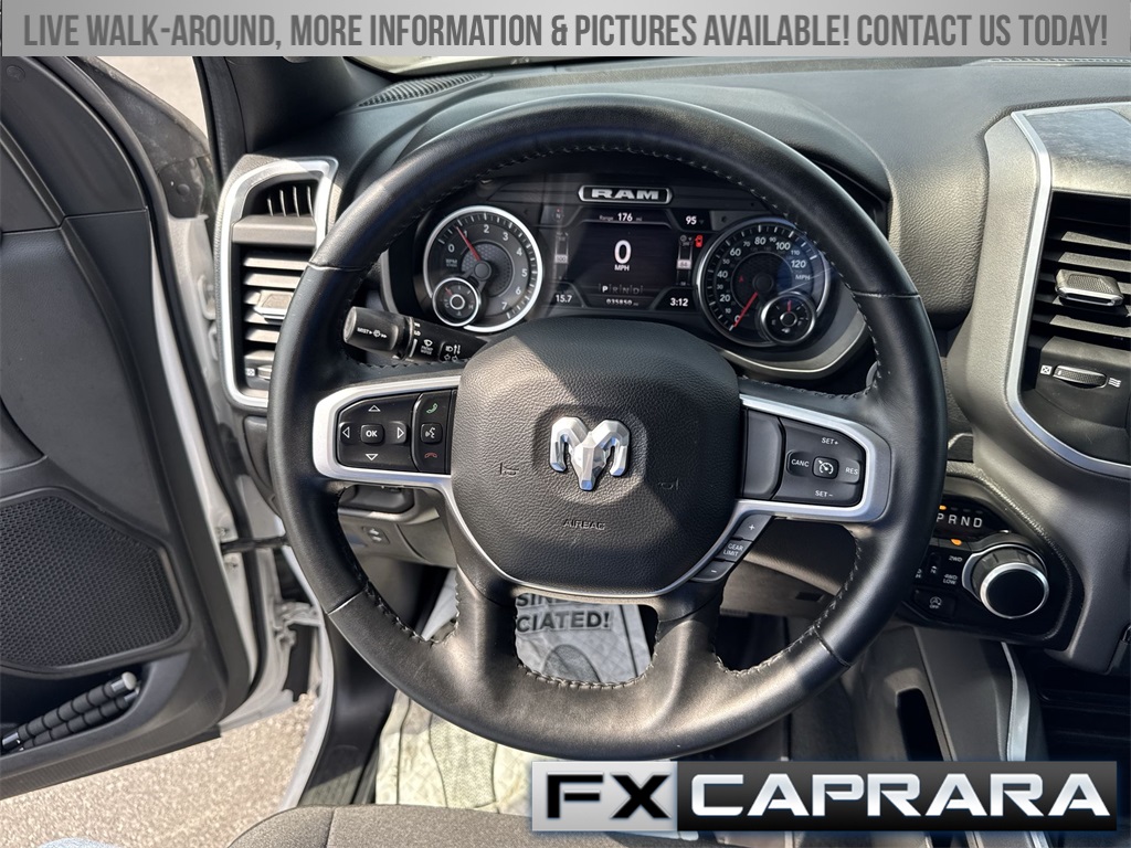 115V Auxiliary Power Outlet, 115V Auxiliary Rear Power Outlet, 2nd Row In Floor Storage Bins, 3 Rear Seat Head Restraints, 4 Way Front Headrests, 4-Wheel Disc Brakes, 400W Inverter, 48V Belt Starter Generator, 4G LTE Wi-Fi Hot Spot, 6 Speakers, 8.4" Touchscreen Display, ABS brakes, Air Conditioning, Air Conditioning ATC w/Dual Zone Control, All Plant-Installed Decals, All R1 High Radios, All Radio Equipped Vehicles, Alloy wheels, AM/FM radio, Apple CarPlay, Auto-Dimming Exterior Driver Mirror, Auto-Dimming Rear-View Mirror, Big Horn Badge, Big Horn Level 2 Equipment Group, Black Exterior Mirrors, Black Interior Accents, Black Premium Power Mirrors, Bluetooth Handsfree Phone & Audio, Body Color Exterior Mirrors, Body Color Front Bumper, Body Color Premium Power Mirrors, Body Color Rear Bumper w/Step Pads, Brake assist, Bridgestone Brand Tires, Bucket Seats, Bumpers: chrome, Class IV Receiver Hitch, Cloth Bench Seat, Cluster 7.0" TFT Color Display, Compass, Connected Travel & Traffic Services, Connectivity - US/Canada, Convex Wide-Angle Mirror Insert, Delay-off headlights, Delete LED Lamp - Floor Console Bin, Deluxe Cloth Bucket Seats, Disassociated Touchscreen Display, Driver door bin, Dual front impact airbags, Dual front side impact airbags, Electronic Stability Control, Emergency communication system: SiriusXM Guardian, Exterior Mirrors Courtesy Lamps, Exterior Mirrors w/Heating Element, Exterior Mirrors w/Supplemental Signals, For Details, Visit DriveUconnect.com, Front anti-roll bar, Front Center Armrest w/Storage, Front fog lights, Front reading lights, Front Seat Back Map Pockets, Front wheel independent suspension, Full Length Floor Console, Fully automatic headlights, Global Telematics Box Module (TBM), Glove Box Lamp, Google Android Auto, GPS Antenna Input, GPS Navigation, HD Radio, Heated door mirrors, Heated Front Seats, Heated Steering Wheel, Heavy-Duty Engine Cooling, Illuminated entry, Integrated Center Stack Radio, Integrated Voice Command w/Bluetooth, Leather steering wheel, Low tire pressure warning, Manual Adjust 4-Way Front Passenger Seat, Media Hub w/2 Charge Only USBs, MOPAR Front & Rear Rubber Floor Mats, Occupant sensing airbag, Outside temperature display, Overhead airbag, Overhead console, Panic alarm, ParkSense Front/Rear Park Assist w/Stop, ParkView Rear Back-Up Camera, Passenger door bin, Passenger vanity mirror, Power 2-Way Driver Lumbar Adjust, Power 8-Way Driver Seat, Power Adjustable Pedals, Power door mirrors, Power steering, Power windows, Power-Folding Mirrors, Quick Order Package 23Z Big Horn, Radio data system, Radio: Uconnect 3 w/5" Display, Radio: Uconnect 5 Nav w/8.4" Display, Radio: Uconnect 5 W w/8.4" Display, Rear 60/40 Folding Seat, Rear anti-roll bar, Rear Center Armrest, Rear Dome w/On/Off Switch Lamp, Rear Power Sliding Window, Rear seat center armrest, Rear step bumper, Rear Window Defroster, Remote keyless entry, Remote Start System, Security Alarm, SiriusXM Radio Service, SiriusXM Satellite Radio, SiriusXM w/360L, Speed control, Split folding rear seat, Sport Appearance Package, Sport Decal, Steering wheel mounted audio controls, Sun Visors w/Illuminated Vanity Mirrors, Tachometer, Telescoping steering wheel, Tilt steering wheel, Traction control, Trip computer, Universal Garage Door Opener, USB Host Flip, Variably intermittent wipers, Voltmeter, Wheels: 18" x 8" Cast-Aluminum Painted, Wheels: 20" x 9" Aluminum Chrome Clad (WRK).