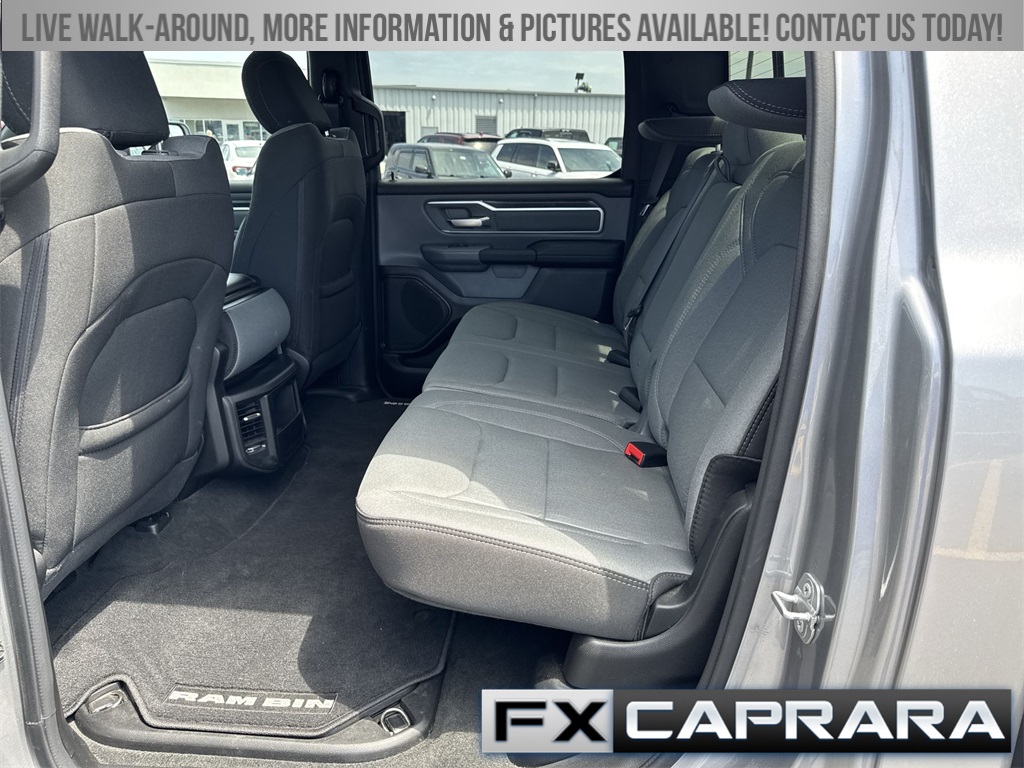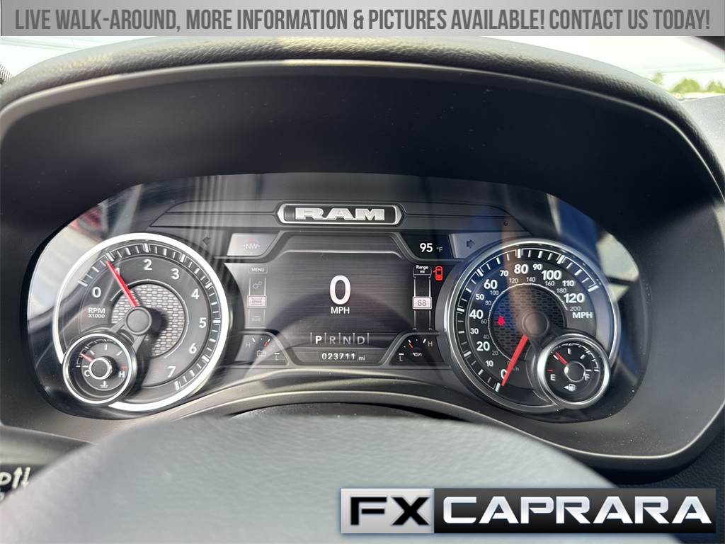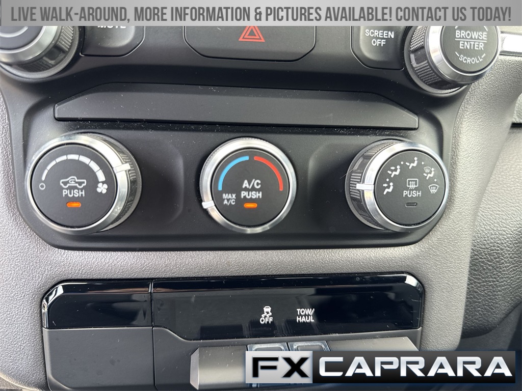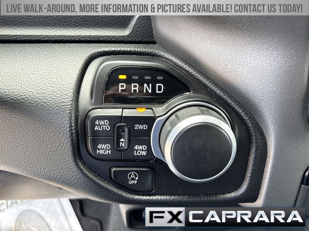 2nd Row In Floor Storage Bins, 3 Rear Seat Head Restraints, 3.21 Rear Axle Ratio, 4 Way Front Headrests, 4-Wheel Disc Brakes, 48V Belt Starter Generator, 4G LTE Wi-Fi Hot Spot, 6 Speakers, 8.4" Touchscreen Display, ABS brakes, Air Conditioning, Alloy wheels, AM/FM radio, Apple CarPlay, Auto-Dimming Exterior Driver Mirror, Auto-Dimming Rear-View Mirror, Big Horn Badge, Big Horn Level 1 Equipment Group, Black Exterior Mirrors, Black Premium Power Mirrors, Bluetooth Handsfree Phone & Audio, Brake assist, Bumpers: chrome, Class IV Receiver Hitch, Cloth Bench Seat, Cluster 3.5" TFT Color Display, Cluster 7.0" TFT Color Display, Compass, Connected Services Delete Credit, Connectivity - US/Canada, Convex Wide-Angle Mirror Insert, Delay-off headlights, Driver door bin, Dual front impact airbags, Dual front side impact airbags, Electronic Stability Control, Emergency communication system: SiriusXM Guardian, Exterior Mirrors Courtesy Lamps, Exterior Mirrors w/Heating Element, Exterior Mirrors w/Supplemental Signals, For Details, Visit DriveUconnect.com, Front anti-roll bar, Front Center Armrest w/Storage, Front fog lights, Front reading lights, Front Seat Back Map Pockets, Front wheel independent suspension, Fully automatic headlights, Global Telematics Box Module (TBM), Glove Box Lamp, Google Android Auto, GPS Antenna Input, Heated door mirrors, Heavy-Duty Engine Cooling, Illuminated entry, Integrated Center Stack Radio, Integrated Voice Command w/Bluetooth, Leather steering wheel, Low tire pressure warning, Occupant sensing airbag, Outside temperature display, Overhead airbag, Overhead console, Panic alarm, ParkView Rear Back-Up Camera, Passenger door bin, Passenger vanity mirror, Power 2-Way Driver Lumbar Adjust, Power 8-Way Driver Seat, Power Adjustable Pedals, Power door mirrors, Power steering, Power windows, Power-Folding Mirrors, Quick Order Package 23Z Big Horn, Radio data system, Radio: Uconnect 3 w/5" Display, Radio: Uconnect 5 W w/8.4" Display, Rear 60/40 Folding Seat, Rear anti-roll bar, Rear Dome w/On/Off Switch Lamp, Rear Power Sliding Window, Rear seat center armrest, Rear step bumper, Rear Wheelhouse Liners, Rear Window Defroster, Remote keyless entry, Remote Start System, SiriusXM Radio Service, SiriusXM Satellite Radio, Speed control, Split folding rear seat, Steering wheel mounted audio controls, Sun Visors w/Illuminated Vanity Mirrors, Tachometer, Telescoping steering wheel, Tilt steering wheel, Traction control, Trip computer, Universal Garage Door Opener, USB Host Flip, Variably intermittent wipers, Voltmeter, Wheels: 18" x 8" Cast-Aluminum Painted, Wheels: 20" x 9" Aluminum Chrome Clad (WRK).