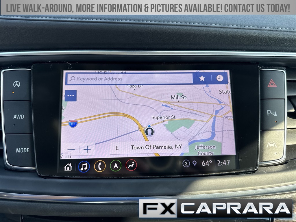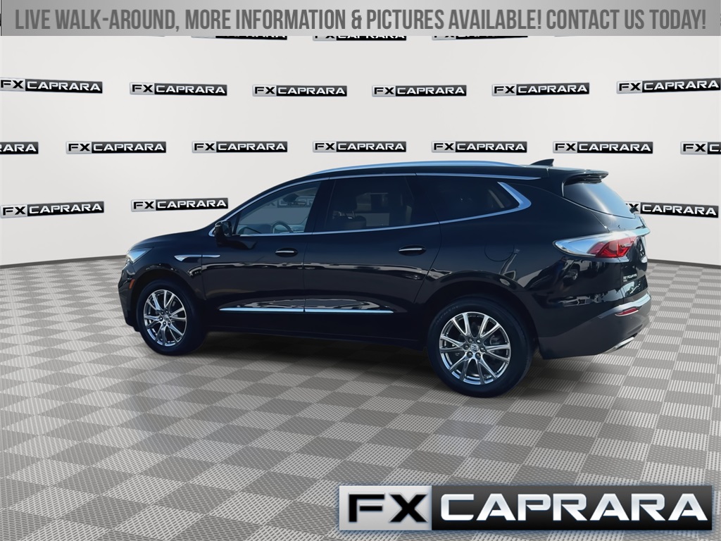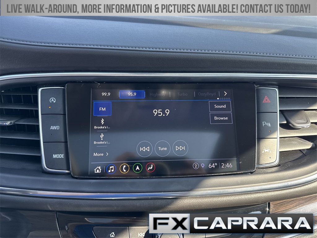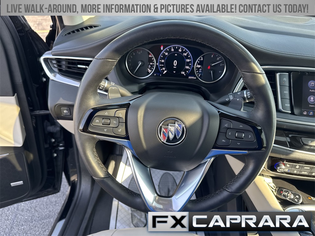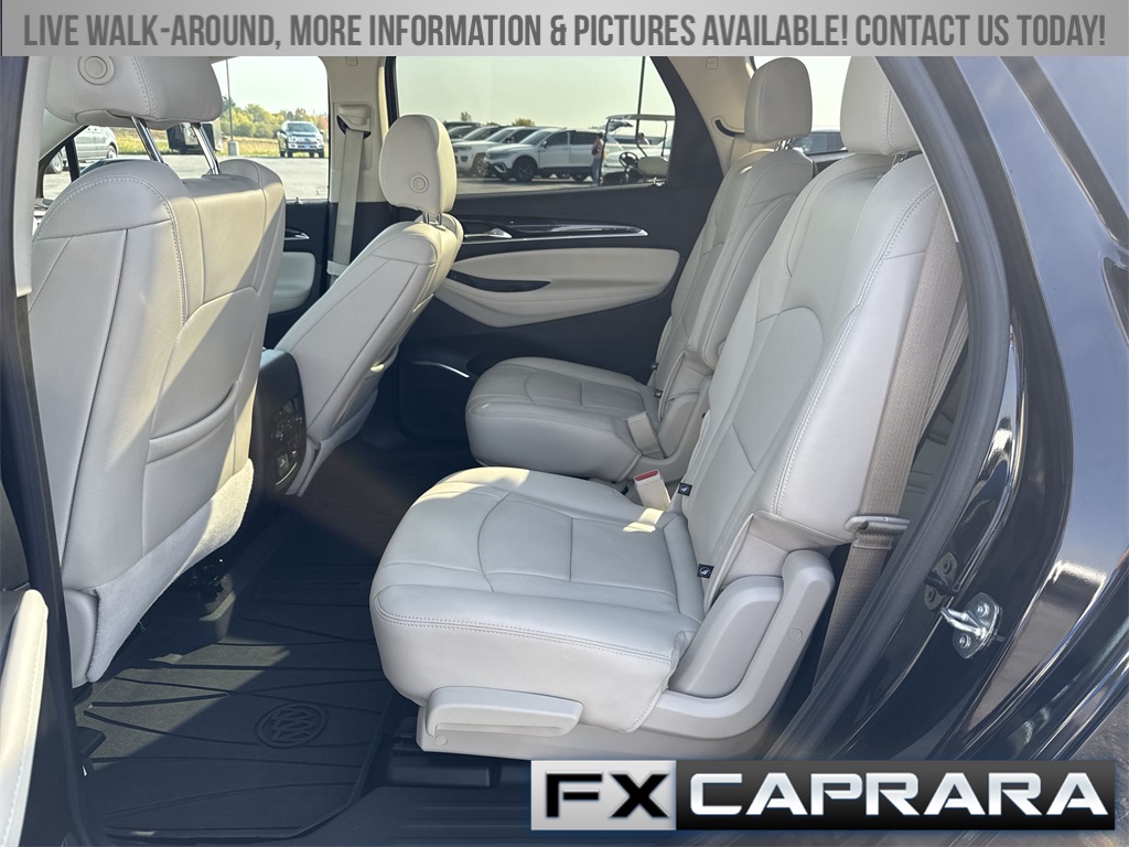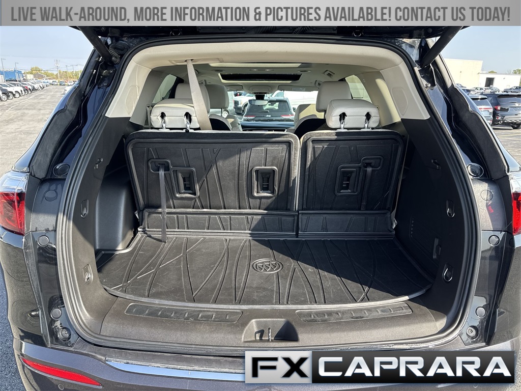 AWD, 10 Speakers, 18" Aluminum Wheels, 2nd Row Heated Outboard Seats, 3.49 Axle Ratio, 3rd row seats: split-bench, 4-Wheel Disc Brakes, 6-Way Power Front Passenger Seat Adjuster, 7-Passenger Seating, 8-Way Power Driver Seat Adjuster, ABS brakes, Air Conditioning, Alloy wheels, AM/FM radio: SiriusXM with 360L, Auto High-beam Headlights, Auto-dimming door mirrors, Auto-dimming Rear-View mirror, Automatic temperature control, Bose Performance-Enhanced 10-Speaker System, Brake assist, Bumpers: body-color, Compass, Delay-off headlights, Driver 4-Way Power Lumbar Seat Adjuster, Driver door bin, Driver vanity mirror, Dual front impact airbags, Dual front side impact airbags, Electronic Stability Control, Emergency communication system: OnStar and Buick connected services capable, Exterior Parking Camera Rear, Four wheel independent suspension, Front & Rear Park Assist, Front anti-roll bar, Front Bucket Seats, Front Center Armrest, Front dual zone A/C, Front Passenger 4-Way Power Lumbar Seat Adjuster, Front reading lights, Fully automatic headlights, Garage door transmitter, Heads-Up Display, Heated door mirrors, Heated Driver & Front Passenger Seats, Heated front seats, Heated rear seats, Heated Steering Wheel, Heated steering wheel, Illuminated entry, Leather steering wheel, Low tire pressure warning, Memory Package, Memory seat, Navigation System, Occupant sensing airbag, Outside temperature display, Overhead airbag, Overhead console, Panic alarm, Passenger door bin, Passenger vanity mirror, Perforated Leather-Appointed Seat Trim, Power door mirrors, Power driver seat, Power Liftgate, Power passenger seat, Power steering, Power windows, Premium audio system: Buick Infotainment System, Radio data system, Radio: Buick Infotainment Sys AM/FM Stereo w/Nav, Rear air conditioning, Rear anti-roll bar, Rear reading lights, Rear window defroster, Rear window wiper, Remote keyless entry, Roof rack: rails only, Security system, SiriusXM w/360L, Speed control, Speed-sensing steering, Spoiler, Steering wheel memory, Steering wheel mounted audio controls, Tachometer, Telescoping steering wheel, Tilt steering wheel, Traction control, Trip computer, Turn signal indicator mirrors, Variably intermittent wipers, Ventilated Driver & Front Passenger Seats, Ventilated front seats, Voltmeter, Wireless Apple CarPlay/Wireless Android Auto, AWD.