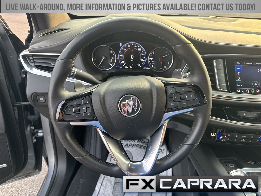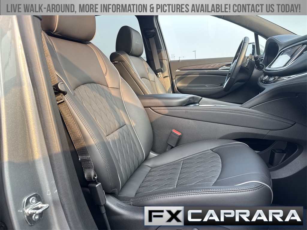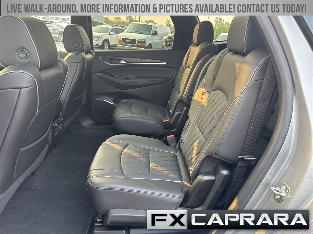 AWD, 10 Speakers, 2nd Row Heated Outboard Seats, 3.49 Axle Ratio, 3rd row seats: split-bench, 4-Wheel Disc Brakes, 6-Way Power Front Passenger Seat Adjuster, 7-Passenger Seating, 8-Way Power Driver Seat Adjuster, ABS brakes, Air Conditioning, Alloy wheels, AM/FM radio: SiriusXM with 360L, Auto High-beam Headlights, Auto tilt-away steering wheel, Auto-dimming door mirrors, Auto-dimming Rear-View mirror, Automatic temperature control, Bose Performance-Enhanced 10-Speaker System, Brake assist, Bumpers: body-color, Compass, Delay-off headlights, Driver 4-Way Power Lumbar Seat Adjuster, Driver door bin, Driver vanity mirror, Dual front impact airbags, Dual front side impact airbags, Electronic Stability Control, Emergency communication system: OnStar and Buick connected services capable, Exterior Parking Camera Rear, Four wheel independent suspension, Front & Rear Park Assist, Front anti-roll bar, Front Bucket Seats, Front Center Armrest, Front dual zone A/C, Front Passenger 4-Way Power Lumbar Seat Adjuster, Front reading lights, Fully automatic headlights, Garage door transmitter, Heads-Up Display, Heated door mirrors, Heated Driver & Front Passenger Seats, Heated front seats, Heated rear seats, Heated steering wheel, Illuminated entry, Leather steering wheel, Low tire pressure warning, Memory Package, Memory seat, Navigation System, Occupant sensing airbag, Outside temperature display, Overhead airbag, Overhead console, Panic alarm, Passenger door bin, Passenger vanity mirror, Perforated Leather-Appointed Seat Trim, Power door mirrors, Power driver seat, Power Liftgate, Power moonroof, Power passenger seat, Power steering, Power windows, Premium audio system: Buick Infotainment System, Radio data system, Radio: Buick Infotainment Sys AM/FM Stereo w/Nav, Rain sensing wipers, Rear air conditioning, Rear anti-roll bar, Rear reading lights, Rear window defroster, Rear window wiper, Remote keyless entry, Roof rack: rails only, Security system, SiriusXM w/360L, Speed control, Speed-sensing steering, Spoiler, Steering wheel memory, Steering wheel mounted audio controls, Tachometer, Telescoping steering wheel, Tilt steering wheel, Traction control, Trip computer, Turn signal indicator mirrors, Variably intermittent wipers, Ventilated Driver & Front Passenger Seats, Ventilated front seats, Voltmeter, Wheels: 20" w/Pearl Nickel Finish, Wireless Apple CarPlay/Wireless Android Auto, AWD.