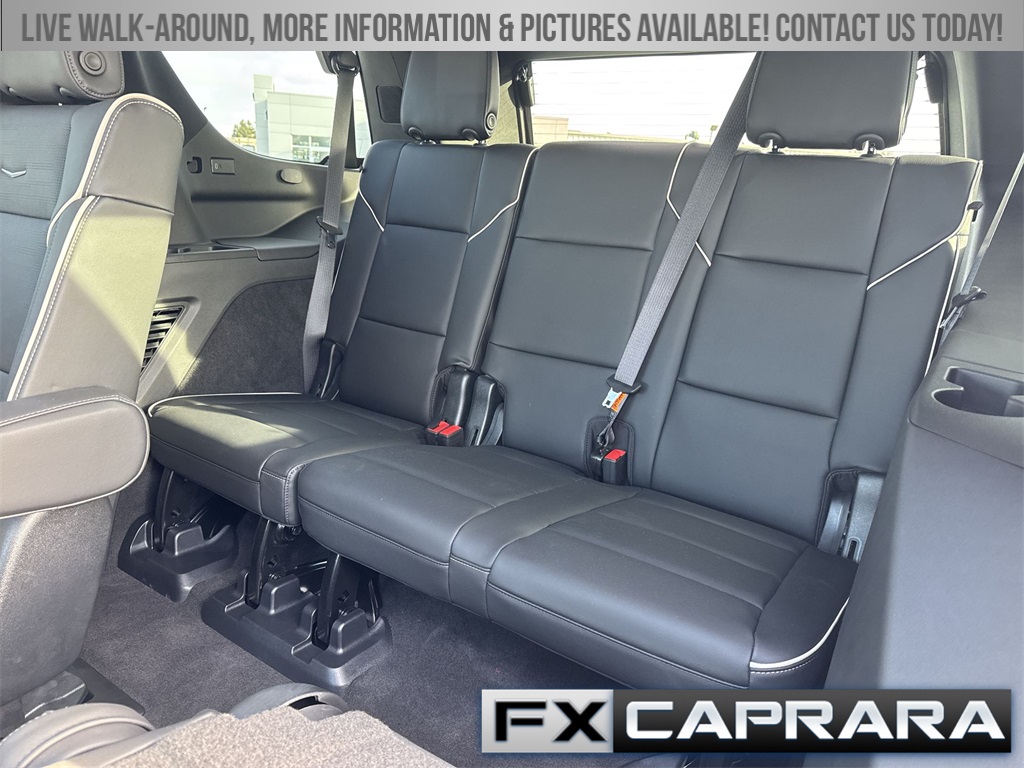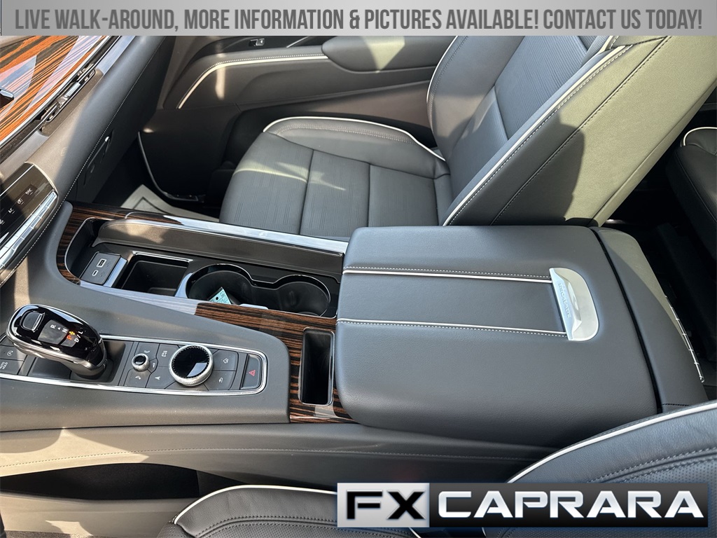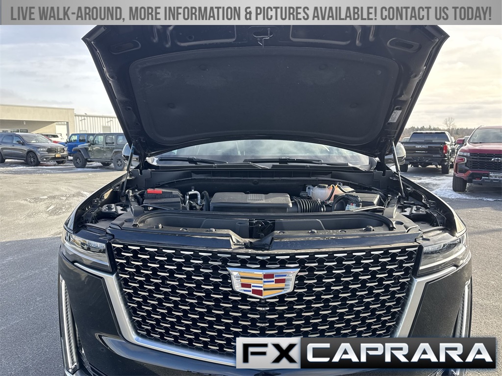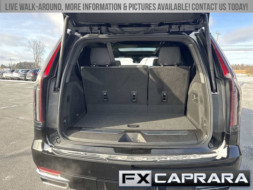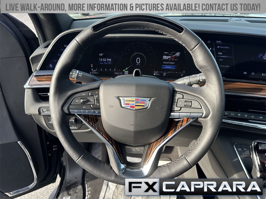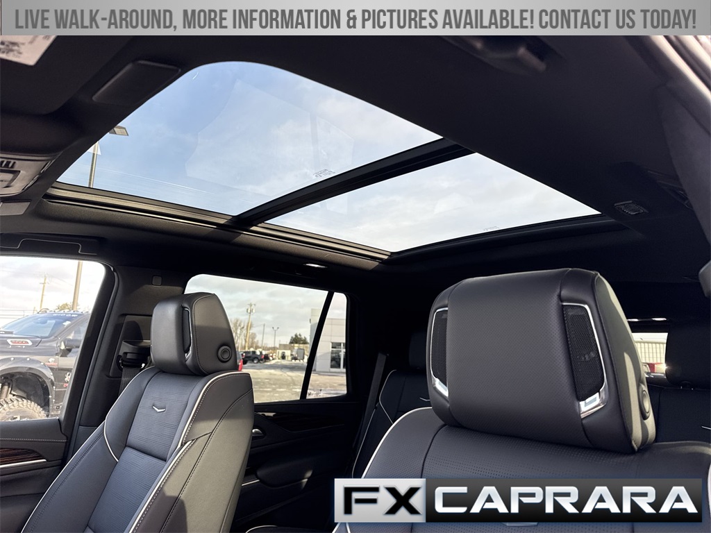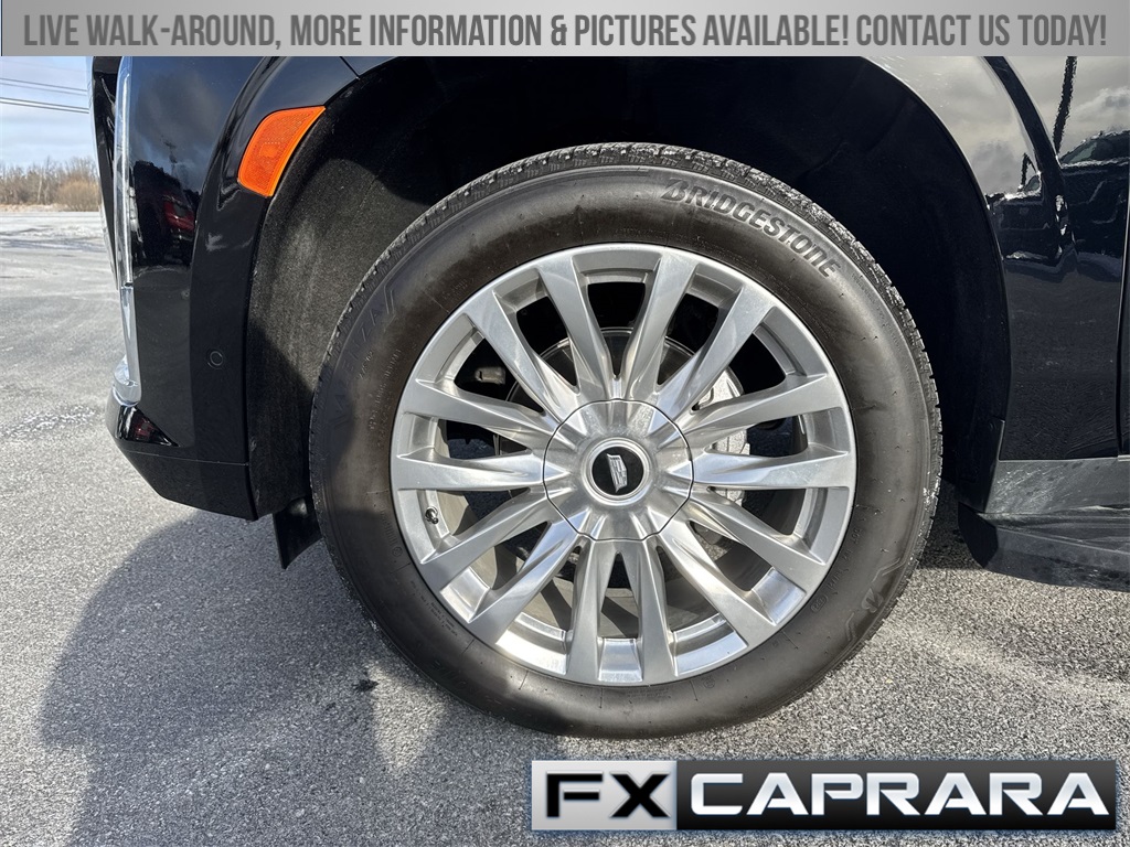 AWD, Leather, 16.9" Diagonal OLED Infotainment Screen, 19 Speakers, 2-Presets Memory For Driver Seat Adjuster, 3.23 Axle Ratio, 3rd row seats: split-bench, 4-Way Power Driver Lumbar Seat Adjuster, 4-Way Power Front Passenger Lumbar Seat Adjuster, 4-Wheel Disc Brakes, 8-Way Power Driver Seat Adjuster, 8-Way Power Front Passenger Seat Adjuster, ABS brakes, Adaptive Cruise Control, Air Conditioning, AKG Studio 19-Speaker Audio System, Alloy wheels, AM/FM radio: SiriusXM with 360L, Apple CarPlay/Android Auto, Audio memory, Auto High-beam Headlights, Auto tilt-away steering wheel, Auto-dimming door mirrors, Auto-dimming Rear-View mirror, Automatic Seat Belt Tightening, Automatic temperature control, Brake assist, Bumpers: body-color, Compass, Delay-off headlights, Door Lock & Latch Shields, Driver door bin, Driver vanity mirror, Dual front impact airbags, Dual front side impact airbags, Electronic Stability Control, Emergency communication system: OnStar and Cadillac connected services capable, Enhanced Automatic Emergency Braking, Enhanced Automatic Parking Assist, Exterior Parking Camera Rear, Four wheel independent suspension, Front anti-roll bar, Front Bucket Seats, Front Center Armrest w/Storage, Front dual zone A/C, Front reading lights, Fully automatic headlights, Garage door transmitter, Glass Breakage Sensor, HD Radio, Heads-Up Display, Heated & Ventilated Driver & Front Passenger Seats, Heated door mirrors, Heated Driver & Front Passenger Seats, Heated front seats, Heated rear seats, Heated steering wheel, Illuminated entry, Lane Change Alert w/Side Blind Zone Alert, Leather Seating Surfaces w/Mini-Chevron Perf Inserts, Low tire pressure warning, Mechanical Limited-Slip Differential, Memory seat, Navigation System, Occupant sensing airbag, Outside temperature display, Overhead airbag, Overhead console, Panic alarm, Passenger door bin, Passenger vanity mirror, Power door mirrors, Power driver seat, Power Liftgate, Power moonroof, Power Panoramic Tilt-Sliding Sunroof, Power passenger seat, Power steering, Power windows, Premium Smooth Ride Suspension, Radio data system, Radio: AM/FM w/Navigation, Rain sensing wipers, Rear air conditioning, Rear anti-roll bar, Rear Camera Mirror, Rear Camera Mirror Washer, Rear Cross Traffic Alert, Rear reading lights, Rear window defroster, Rear window wiper, Reconfigurable Full-Color Head-Up Display, Remote keyless entry, Reverse Automatic Braking, Running Board Assist Steps, Security system, SiriusXM w/360L, Speed control, Split folding rear seat, Spoiler, Steering wheel memory, Steering wheel mounted audio controls, Tachometer, Teen Driver, Telescoping steering wheel, Theft-Deterrent Alarm System, Tilt steering wheel, Traction control, Trip computer, Turn signal indicator mirrors, Variably intermittent wipers, Vehicle Inclination Sensor, Vehicle Interior Movement Sensor, Ventilated front seats, Voltmeter, Wheels: 22" 14-Spoke Alloy w/Polished Finish, Wireless Apple CarPlay/Wireless Android Auto, AWD, Leather.