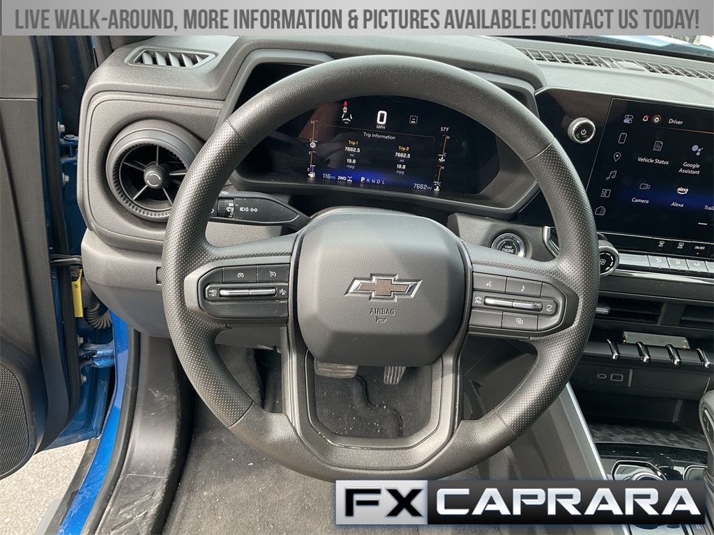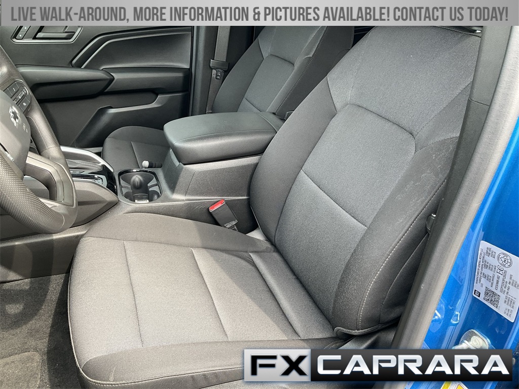 4WD, 3.42 Rear Axle Ratio, 4-Way Manual Passenger Seat Adjuster, 4-Wheel Disc Brakes, 6 Speakers, 6-Speaker Audio System Feature, 6-Way Manual Driver Seat Adjuster, 8-Way Power Driver Seat Adjuster, ABS brakes, Adaptive Cruise Control, Air Conditioning, Alloy wheels, AM/FM radio: SiriusXM, Apple CarPlay/Android Auto, Auto High-beam Headlights, Automatic Emergency Braking, Black Painted Mirror Caps, Black Spray-On Bedliner w/Chevrolet Logo, Blind Zone Steering Assist, Brake assist, Chevy Safety Assist, Cloth Seat Trim, Compass, Delay-off headlights, Driver door bin, Driver vanity mirror, Dual front impact airbags, Dual front side impact airbags, Electronic Automatic Cruise Control, Electronic Stability Control, EZ-Lift & Lower Tailgate, Following Distance Indicator, Forward Collision Alert, Front anti-roll bar, Front Bucket Seats, Front Center Armrest, Front License Plate Kit, Front Pedestrian & Bicyclist Braking, Front wheel independent suspension, HD Surround Vision, Heated Power-Adjustable Outside Mirrors, Illuminated entry, IntelliBeam Automatic High Beam On/Off, Lane Keep Assist w/Lane Departure Warning, Low tire pressure warning, Manual Rear-Sliding Window, Navigation System, Occupant sensing airbag, Outside temperature display, Overhead airbag, Overhead console, Panic alarm, Passenger door bin, Passenger vanity mirror, Power door mirrors, Power Driver Lumbar Control Seat Adjuster, Power steering, Power windows, Preferred Equipment Group 0TR, Radio data system, Radio: 11.3" Diagonal Advanced Color LCD Display, Rear Cross Traffic Braking, Rear Park Assist, Rear Pedestrian Alert, Rear reading lights, Rear step bumper, Rear-Window Electric Defogger, Remote keyless entry, Safety Package, Security system, SiriusXM Radio, Speed-sensing steering, Split folding rear seat, Steering Wheel Mounted Audio Controls, Steering wheel mounted audio controls, StowFlex Tailgate Storage Compartment, Tachometer, Tailgate Keyed Cylinder Lock, Technology Package, Tilt steering wheel, Traction control, Trail Boss Convenience Package, Trail Boss Convenience Package II, Trip computer, Variably intermittent wipers, Wheels: 18" x 8.5" Black High Gloss Aluminum, Wireless Phone Projection, 4WD.