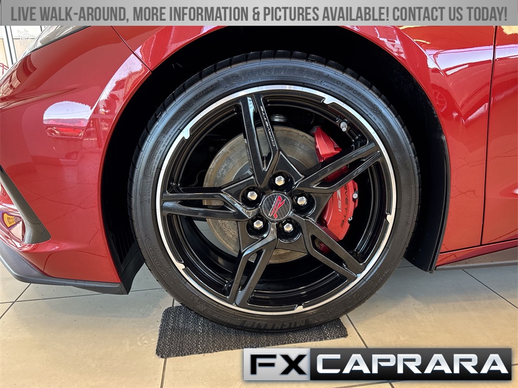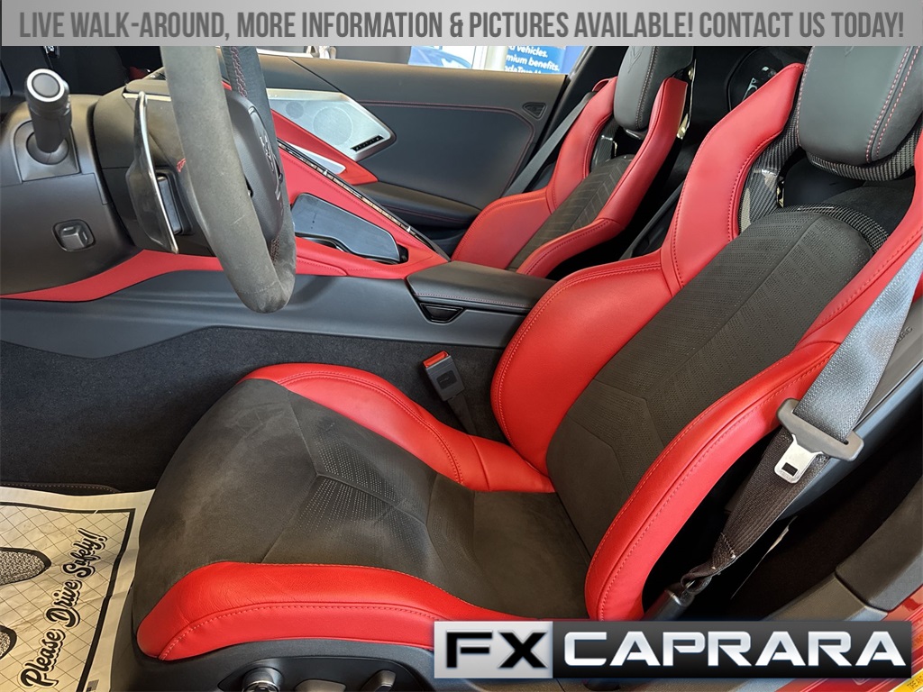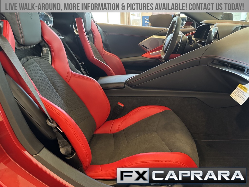 14 Speakers, 2 Cargo Nets, 2-Tone Seats, 4-Wheel Disc Brakes, 8-Way Power Driver Seat Adjuster, 8-Way Power Passenger Seat Adjuster, ABS brakes, Air Conditioning, Alloy wheels, AM/FM radio: SiriusXM, Apple CarPlay/Android Auto, Auto-dimming door mirrors, Auto-dimming Rear-View mirror, Automatic Leveling System Headlamp Control, Automatic temperature control, Battery Protection Package, Black Composite Rocker Extensions (LPO), Black Custom Splash Guards (LPO), Black Recovery Hook (LPO), Body-Color Removable Roof Panel, Bose Performance Series Sound System w/14 Speakers, Brake assist, Bumpers: body-color, Carbon Flash Metallic Painted Outside Mirrors, Carbon Flash Metallic-Painted Outside Mirrors, Compass, Contoured Cargo Area Liners w/Jake Logo (LPO), Corvette Racing Themed Graphics Package (LPO), Delay-off headlights, Driver door bin, Driver Power Bolster Seat Adjuster, Driver vanity mirror, Dual front impact airbags, Dual front side impact airbags, Edge Red-Painted Calipers, Electrical Theft Deterrent System, Electronic Limited-Slip Differential, Electronic Stability Control, Emergency communication system: OnStar and Chevrolet connected services capable, Four wheel independent suspension, Front anti-roll bar, Front Bucket Seats, Front Center Armrest, Front dual zone A/C, Front License Plate Bracket, Front Lift Adjustable Height w/Memory, Front reading lights, Fully automatic headlights, Garage door transmitter, GT1 Bucket Seats, GT2 Bucket Seats, HD Front & Rear Vision Cameras, HD Radio, Head-Up Display, Heads-Up Display, Heated & Vented Driver & Passenger Seats, Heated door mirrors, Heated front seats, Heated Steering Wheel, Heated steering wheel, Heavy-Duty Cooling System, Illuminated entry, Leather Shift Knob, Leather steering wheel, Low tire pressure warning, Memory Driver & Passenger Convenience Package, Memory seat, Mulan Lthr Seating Surfaces w/Perforated Inserts, Navigation System, Occupant sensing airbag, Outside temperature display, Overhead console, Panic alarm, Passenger door bin, Passenger Power Bolster Seat Adjuster, Passenger vanity mirror, Performance Data & Video Recorder, Performance Exhaust w/Stainless-Steel Tips, Performance Rear Axle Ratio, Performance Traction Management, Power door mirrors, Power Driver Lumbar Control Seat Adjuster, Power driver seat, Power Passenger Lumbar Control Seat Adjuster, Power passenger seat, Power steering, Power windows, Power-Adjustable Outside Heated Mirrors, Preferred Equipment Group 2LT, Premium audio system: Chevrolet Infotainment 3 Premium, Radio data system, Radio: Chevrolet Infotainment 3 Premium System, Rear anti-roll bar, Rear Camera Mirror, Rear Cross Traffic Alert, Rear window defroster, Rear Z51 Spoiler, Remote keyless entry, Security system, Side Blind Zone Alert, SiriusXM Radio, Speed control, Speed-sensing steering, Sport steering wheel, Steering wheel memory, Steering wheel mounted audio controls, Stingray R Appearance Package (LPO), Stingray R Logo Wheel Center Caps (LPO), Sueded Microfiber-Wrapped Steering Wheel, Tachometer, Telescoping steering wheel, Tilt steering wheel, Traction control, Trip computer, Turn signal indicator mirrors, Universal Home Remote, Variably intermittent wipers, Vehicle Inclination Theft Deterrent Sensor, Vehicle Interior Movement Theft Deterrent Sensor, Ventilated front seats, Voltmeter, Whe