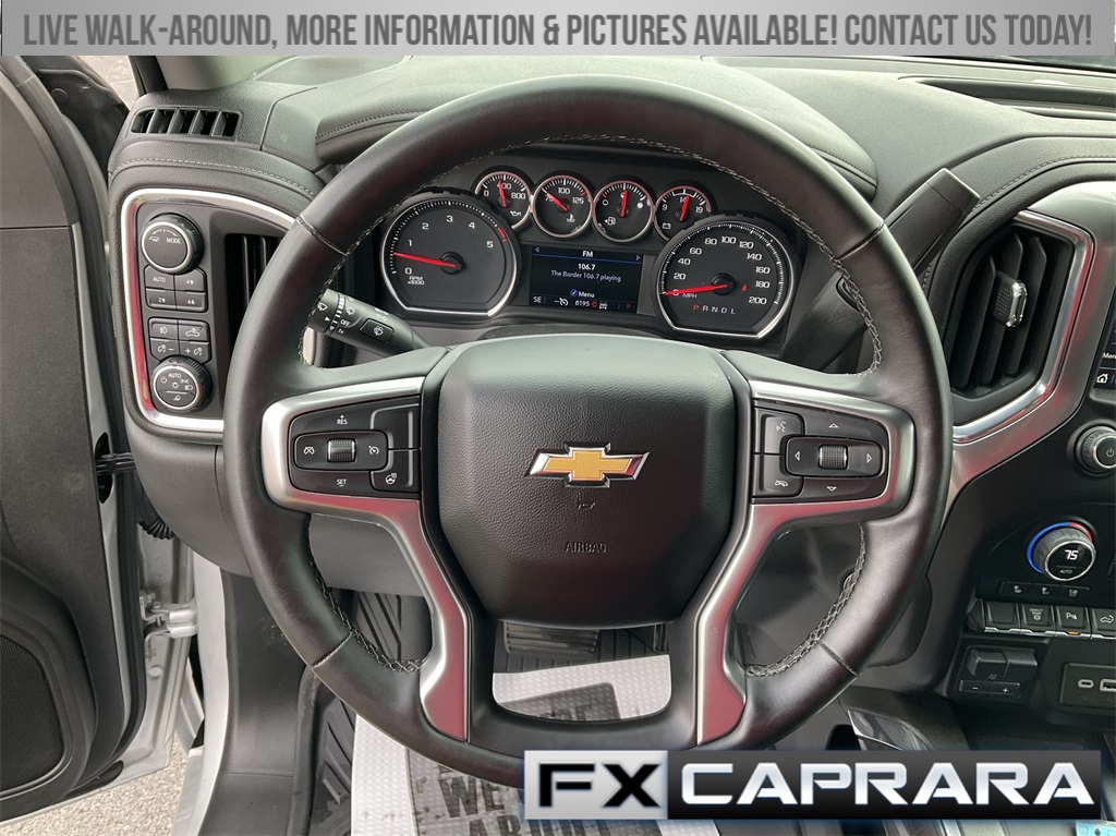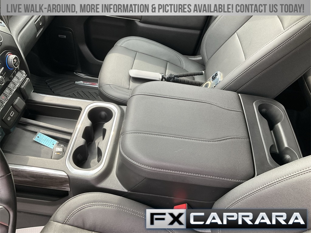 10-Speed Automatic, 4WD, Black Leather, 10-Way Power Driver Seat Adjuster w/Lumbar, 10-Way Power Passenger Seat Adjuster w/Lumbar, 12-Volt Rear Auxiliary Power Outlet, 120-Volt Bed Mounted Power Outlet, 120-Volt Instrument Panel Power Outlet, 170 Amp Alternator, 1st & 2nd Row All-Weather Floor Liners (LPO) (AAK), 2 USB Ports (1st Row), 2 USB Ports & 1 SD Card Reader, 2-Speed Active Electronic AutoTrac Transfer Case, 220 Amp Alternator, 4-Wheel Disc Brakes, 4.2" Diagonal Color Display Driver Info Center, 6 Speakers, 6-Speaker Audio System, 720 Cold-Cranking Amps Heavy-Duty Battery, ABS brakes, Advanced Trailering System, Air Conditioning, Alloy wheels, AM/FM radio: SiriusXM with 360L, Apple CarPlay/Android Auto, Auto-dimming door mirrors, Auto-Dimming Inside Rear-View Mirror, Auto-dimming Rear-View mirror, Automatic temperature control, Bed View Camera w/2 Trailer Camera Provisions, Black Chevytec Spray-On Bedliner, Bluetooth® For Phone, BOSE Premium 7-Speaker Sound System, Brake assist, Bumpers: chrome, Chevrolet Connected Access Capable, Chrome Front Grille, Chrome Mirror Caps, Color-Keyed Carpeting Floor Covering, Compass, Deep-Tinted Glass, Delay-off headlights, Driver door bin, Driver Memory, Driver vanity mirror, Dual Charge-Only USB Ports (2nd Row), Dual front impact airbags, Dual front side impact airbags, Electric Rear-Window Defogger, Electrical Lock Control Steering Column, Electronic Cruise Control w/Set & Resume Speed, Electronic Stability Control, Engine Block Heater, Exhaust Brake, EZ Lift Power Lock & Release Tailgate, Floor-Mounted Center Console, Front 40/20/40 Split-Bench Seats w/Lockable Storage, Front anti-roll bar, Front Bucket Seats, Front Center Armrest w/Storage, Front dual zone A/C, Front fog lights, Front LED Fog Lamps, Front reading lights, Front Rubberized Vinyl Floor Mats, Front wheel independent suspension, Fully automatic headlights, HD Rear Vision Camera, HD Surround Vision w/2 Trailer View Camera Provisions, Heated & Auto-Dim Pwr Vertical Trailering Mirrors, Heated 2nd Row Outboard Seats, Heated door mirrors, Heated Driver & Front Outboard Passenger Seating, Heated front seats, Heated Steering Wheel, Heated steering wheel, Hill Descent Control, Hitch Guidance w/Hitch View, Illuminated entry, Integrated Trailer Brake Controller, Keyless Open & Start, Lane Change Alert w/Side Blind Zone Alert, LED Cargo Area Lighting, Low tire pressure warning, LTZ Convenience Package, LTZ Convenience Package II, Manual Tilt & Telescoping Steering Column, Memory seat, Occupant sensing airbag, Off-Road Suspension, OnStar & Chevrolet Connected Services Capable, Outside temperature display, Overhead airbag, Overhead console, Panic alarm, Passenger door bin, Passenger vanity mirror, Perf Leather-Appointed Front Outboard Seat Trim, Power Door Locks, Power door mirrors, Power driver seat, Power Front Windows w/Driver Express Up/Down, Power Front Windows w/Passenger Express Up/Down, Power passenger seat, Power Rear Windows w/Express Down, Power Sliding Rear Window w/Defogger, Power steering, Power windows, Preferred Equipment Group 1LZ, Premium audio system: Chevrolet Infotainment 3 Premium, Pwr Up/Down Tailgate Function w/Pwr Lock & Release, Radio: Chevrolet Infotainment 3 Plus System, Radio: Chevrolet Infotainment 3 Premium System, Rear Cross Traffic Alert, Rear reading lights, Rear Rubberized Vinyl Floor Mats, Rear seat center armrest, Rear step bumper, Rear