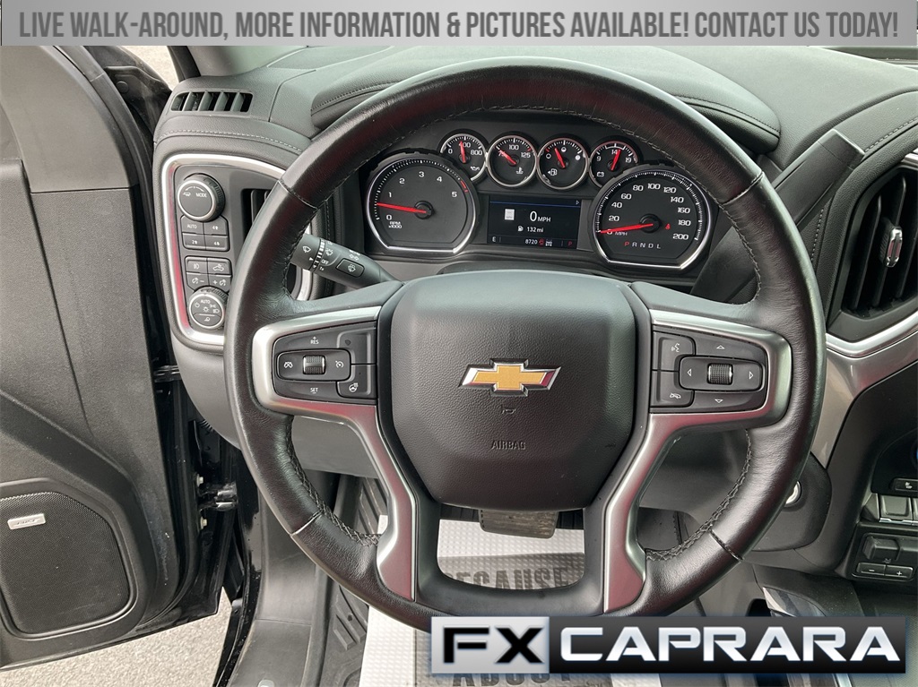 10-Speed Automatic, 4WD, Black Leather, 10-Way Power Driver Seat Adjuster w/Lumbar, 10-Way Power Passenger Seat Adjuster w/Lumbar, 12-Volt Rear Auxiliary Power Outlet, 120-Volt Bed Mounted Power Outlet, 120-Volt Instrument Panel Power Outlet, 170 Amp Alternator, 1st & 2nd Row All-Weather Floor Liners (LPO) (AAK), 2 USB Ports (1st Row), 2 USB Ports & 1 SD Card Reader, 2-Speed Active Electronic AutoTrac Transfer Case, 220 Amp Alternator, 4-Wheel Disc Brakes, 4.2" Diagonal Color Display Driver Info Center, 6 Speakers, 6-Speaker Audio System, 720 Cold-Cranking Amps Heavy-Duty Battery, ABS brakes, Advanced Trailering System, Air Conditioning, Alloy wheels, AM/FM radio: SiriusXM with 360L, Apple CarPlay/Android Auto, Auto-dimming door mirrors, Auto-Dimming Inside Rear-View Mirror, Auto-dimming Rear-View mirror, Automatic temperature control, Bed View Camera w/2 Trailer Camera Provisions, Black Chevytec Spray-On Bedliner, Bluetooth® For Phone, BOSE Premium 7-Speaker Sound System, Brake assist, Bumpers: chrome, Chevrolet Connected Access Capable, Chrome Front Grille, Chrome Mirror Caps, Color-Keyed Carpeting Floor Covering, Compass, Deep-Tinted Glass, Delay-off headlights, Driver door bin, Driver Memory, Driver vanity mirror, Dual Charge-Only USB Ports (2nd Row), Dual front impact airbags, Dual front side impact airbags, Electric Rear-Window Defogger, Electrical Lock Control Steering Column, Electronic Cruise Control w/Set & Resume Speed, Electronic Stability Control, Engine Block Heater, Exhaust Brake, EZ Lift Power Lock & Release Tailgate, Floor-Mounted Center Console, Front 40/20/40 Split-Bench Seats w/Lockable Storage, Front anti-roll bar, Front Bucket Seats, Front Center Armrest w/Storage, Front dual zone A/C, Front fog lights, Front LED Fog Lamps, Front reading lights, Front Rubberized Vinyl Floor Mats, Front wheel independent suspension, Fully automatic headlights, HD Rear Vision Camera, HD Surround Vision w/2 Trailer View Camera Provisions, Heated & Auto-Dim Pwr Vertical Trailering Mirrors, Heated 2nd Row Outboard Seats, Heated door mirrors, Heated Driver & Front Outboard Passenger Seating, Heated front seats, Heated Steering Wheel, Heated steering wheel, Hill Descent Control, Hitch Guidance w/Hitch View, Illuminated entry, Integrated Trailer Brake Controller, Keyless Open & Start, Lane Change Alert w/Side Blind Zone Alert, LED Cargo Area Lighting, Low tire pressure warning, LTZ Convenience Package, LTZ Convenience Package II, Manual Tilt & Telescoping Steering Column, Memory seat, Occupant sensing airbag, Off-Road Suspension, OnStar & Chevrolet Connected Services Capable, Outside temperature display, Overhead airbag, Overhead console, Panic alarm, Passenger door bin, Passenger vanity mirror, Perf Leather-Appointed Front Outboard Seat Trim, Power Door Locks, Power door mirrors, Power driver seat, Power Front Windows w/Driver Express Up/Down, Power Front Windows w/Passenger Express Up/Down, Power passenger seat, Power Rear Windows w/Express Down, Power Sliding Rear Window w/Defogger, Power steering, Power windows, Preferred Equipment Group 1LZ, Premium audio system: Chevrolet Infotainment 3 Premium, Pwr Up/Down Tailgate Function w/Pwr Lock & Release, Radio: Chevrolet Infotainment 3 Plus System, Radio: Chevrolet Infotainment 3 Premium System, Rear Cross Traffic Alert, Rear reading lights, Rear Rubberized Vinyl Floor Mats, Rear seat center armrest, Rear step bumper, Rear Wheel
