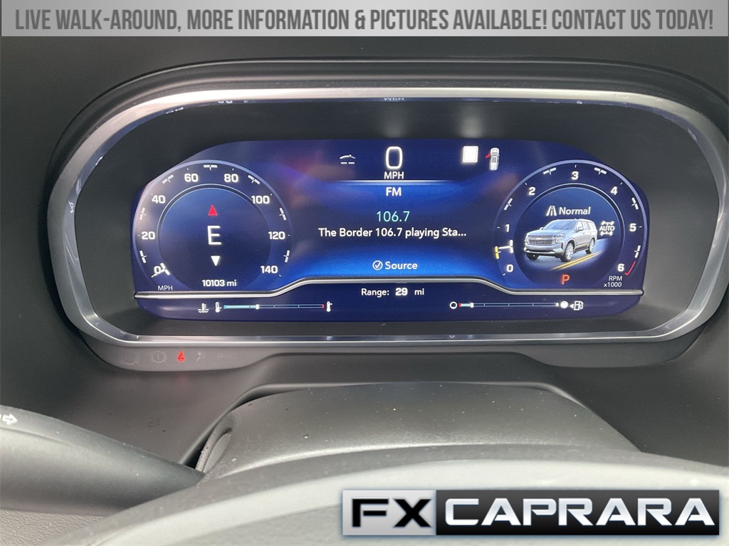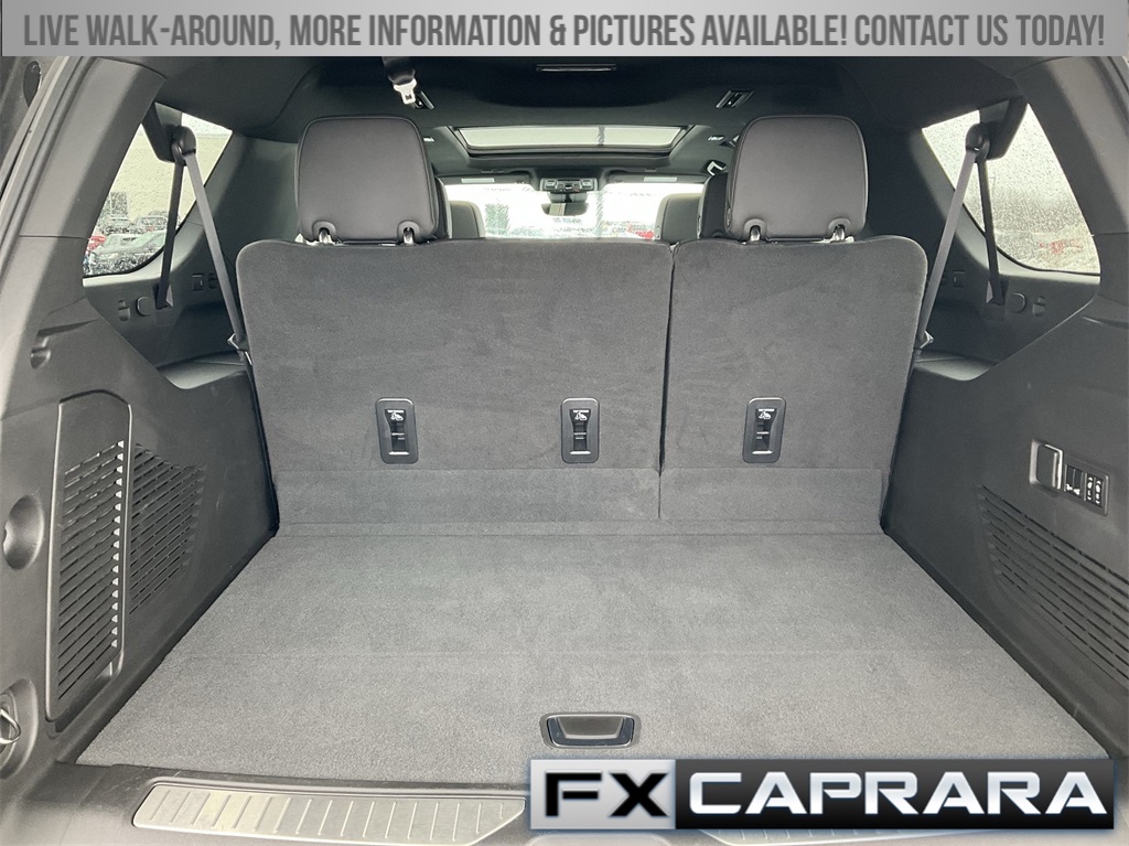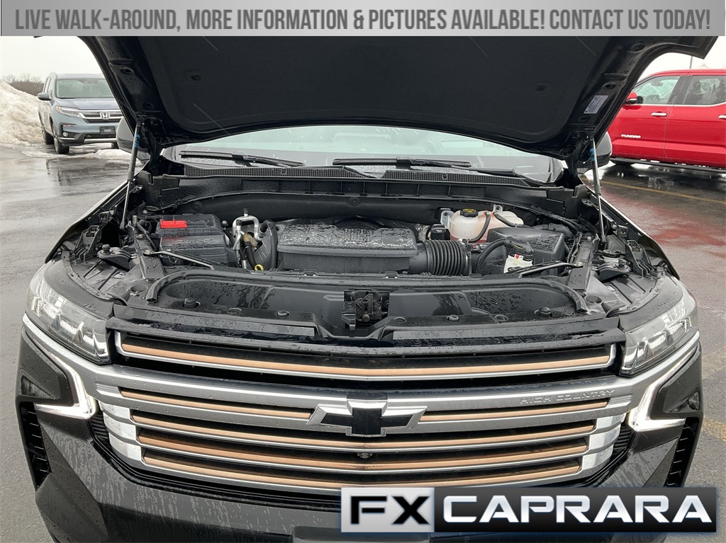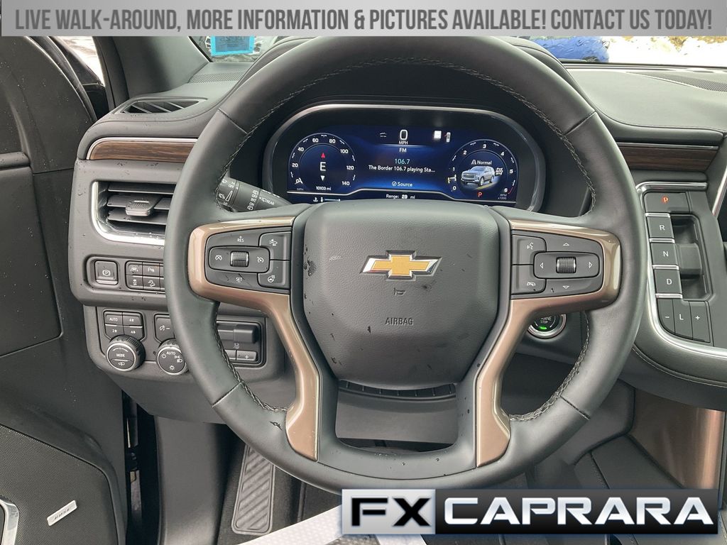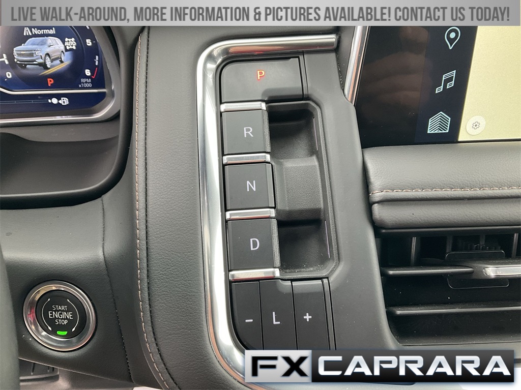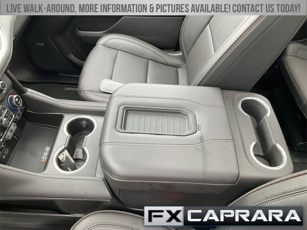 10 Speakers, 15" Diagonal Multi-Color Head-Up Display, 1st & 2nd Row Color-Keyed Carpeted Floor Mats, 2-Speed Active Electronic AutoTrac Transfer Case, 3.23 Rear Axle Ratio, 3rd Row 60/40 Power-Folding Split-Bench, 3rd row seats: split-bench, 4-Wheel Disc Brakes, ABS brakes, Adaptive suspension, Air Conditioning, Alloy wheels, AM/FM radio: SiriusXM with 360L, Apple CarPlay/Android Auto, Auto High-beam Headlights, Auto-dimming door mirrors, Auto-dimming Rear-View mirror, Auto-leveling suspension, Automatic temperature control, Bose 10-Speaker Surround w/CenterPoint, Brake assist, Bright Front & Rear Door Sill Plates, Bumpers: body-color, Chrome Door Handles w/Body-Color Strip, Color-Keyed Carpeting Floor Covering, Compass, Delay-off headlights, Driver & Front Outboard Passenger Airbags, Driver door bin, Driver vanity mirror, Dual Exhaust System, Dual front impact airbags, Dual front side impact airbags, Electronic Stability Control, Emergency communication system: OnStar and Chevrolet connected services capable, Enhanced Automatic Emergency Braking, Enhanced Driver Information Center, Exterior Parking Camera Rear, Floor Console, Four wheel independent suspension, Front anti-roll bar, Front Bucket Seats, Front Center Armrest, Front dual zone A/C, Front reading lights, Fully automatic headlights, Garage door transmitter, Hands-Free Rear Power Programmable Liftgate, HD Surround Vision, Heads-Up Display, Heated & Ventilated Driver & Front Passenger Seats, Heated 2nd Row Outboard Seats, Heated door mirrors, Heated Driver & Front Passenger Seats, Heated front seats, Heated rear seats, Heated Steering Wheel, Heated steering wheel, Hill Descent Control, Illuminated entry, Infotainment Display, Inside Rearview Auto-Dimming Rear Camera Mirror, Lane Change Alert w/Side Blind Zone Alert, LED Daytime Running Lamps, Low tire pressure warning, Magnetic Ride Control Suspension, Memory seat, Memory Settings, Navigation System, Occupant sensing airbag, Outside Heated Power-Adjustable Mirrors, Outside temperature display, Overhead airbag, Overhead console, Panic alarm, Passenger door bin, Passenger vanity mirror, Perforated Leather Seating Surfaces, Power door mirrors, Power driver seat, Power Liftgate, Power passenger seat, Power Release 2nd Row Bucket Seats, Power steering, Power Tilt & Telescopic Steering Column, Power windows, Premium audio system: Chevrolet Infotainment 3 Premium, Radio: Chevrolet Infotainment 3 Premium System, Rain sensing wipers, Rear air conditioning, Rear anti-roll bar, Rear Camera Mirror Washer, Rear Cross Traffic Alert, Rear Pedestrian Alert, Rear reading lights, Rear window defroster, Rear window wiper, Remote keyless entry, Remote Start, Roof rack: rails only, Safety Alert Seat, Security system, SiriusXM Radio w/360L, Speed control, Speed-sensing steering, Split folding rear seat, Spoiler, Steering wheel memory, Steering wheel mounted audio controls, Tachometer, Telescoping steering wheel, Tilt steering wheel, Traction control, Trip computer, Turn signal indicator mirrors, Universal Home Remote, Variably intermittent wipers, Ventilated front seats, Voltmeter, Wheel Locks (Set of 4) (LPO), Wheels: 22" x 9" Sterling Silver Premium Painted, Wireless Charging, Wrapped Steering Wheel.