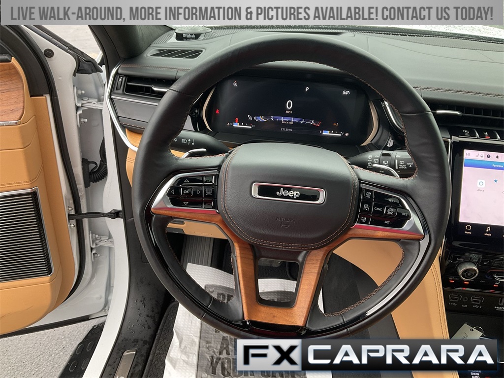4WD, 10 Speakers, 19 Speakers High Performance Audio, 2nd-Row Manual Window Shades, 3.45 Rear Axle Ratio, 4-Wheel Disc Brakes, 950 Watt Amplifier, ABS brakes, Active Noise Control System, Adaptive suspension, ADV Protech Group IV, Air Conditioning, Alloy wheels, AM/FM radio: SiriusXM with 360L, Anti-whiplash front head restraints, Audio memory, Auto High-beam Headlights, Auto-dimming door mirrors, Auto-dimming Rear-View mirror, Auto-leveling suspension, Automatic temperature control, Auxiliary Battery, Brake assist, Bumpers: body-color, Compass, Delay-off headlights, Deluxe Headliner, Driver door bin, Driver vanity mirror, Dual front impact airbags, Dual front side impact airbags, Electronic Stability Control, Emergency communication system, Four wheel independent suspension, Front anti-roll bar, Front Bucket Seats, Front Center Armrest w/Storage, Front dual zone A/C, Front fog lights, Front License Plate Bracket, Front Passenger Interactive Display, Front reading lights, Fully automatic headlights, Garage door transmitter, Genuine wood dashboard insert, Genuine wood door panel insert, Heads-Up Display, Heated door mirrors, Heated front seats, Heated rear seats, Heated steering wheel, Illuminated entry, Knee airbag, Leather steering wheel, Low tire pressure warning, Luxury Tech Group V, Memory seat, MOPAR Black Side Steps, Nappa Leather Seats, Navigation System, Night Vision w/Pedestrian-Animal Detection, Normal Duty Suspension, Occupant sensing airbag, Outside temperature display, Overhead airbag, Overhead console, Palermo Leather Door Trim, Palermo Leather Seats, Panic alarm, Passenger door bin, Passenger vanity mirror, Power door mirrors, Power driver seat, Power Liftgate, Power moonroof, Power passenger seat, Power steering, Power windows, Quick Order Package 22U Summit Reserve, Radio data system, Radio: Uconnect 5 Nav w/10.1" Display, Rain sensing wipers, Rear air conditioning, Rear anti-roll bar, Rear dual zone A/C, Rear reading lights, Rear seat center armrest, Rear window defroster, Rear window wiper, Rearview Autodim Digital Display Mirror, Remote keyless entry, Security system, Speed control, Speed-Sensitive Wipers, Split folding rear seat, Spoiler, Steering wheel memory, Steering wheel mounted audio controls, Summit Reserve, Summit Reserve Badge, Tachometer, Telescoping steering wheel, Tilt steering wheel, Traction control, Trip computer, Turn signal indicator mirrors, Variably intermittent wipers, Ventilated front seats, Ventilated Rear Seats, Voltmeter, Wheels: 20" x 8.5" Fully Painted Aluminum Silver, Wheels: 21" x 9" Machined Face/Painted Aluminum, Wireless Charging Pad, 4WD.