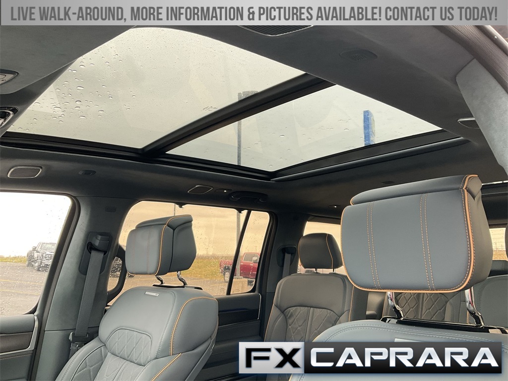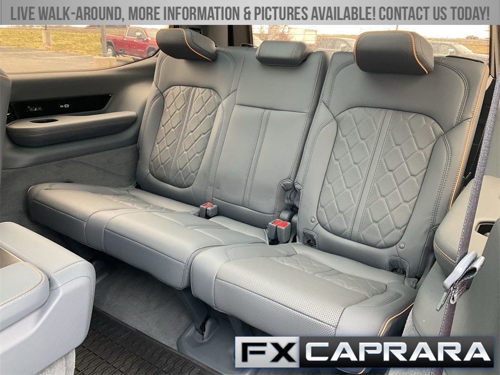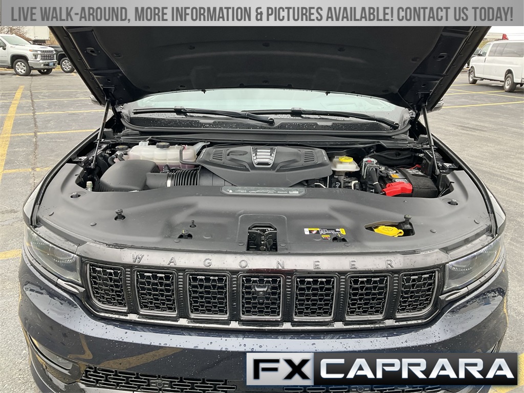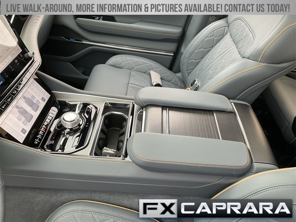 3.92 Rear Axle Ratio, 3rd row seats: bench, 4-Wheel Disc Brakes, ABS brakes, Adjustable pedals, Air Conditioning, Alloy wheels, AM/FM radio: SiriusXM with 360L, Anti-whiplash front head restraints, Audio memory, Auto High-beam Headlights, Auto-dimming door mirrors, Auto-dimming Rear-View mirror, Auto-leveling suspension, Automatic temperature control, Black Interior Accents, Brake assist, Bumpers: body-color, Compass, Delay-off headlights, Driver door bin, Driver vanity mirror, Driver's Seat Mounted Armrest, Dual front impact airbags, Dual front side impact airbags, Electronic Stability Control, Emergency communication system: Automatic SOS Call, Four wheel independent suspension, Front anti-roll bar, Front Bucket Seats, Front Center Armrest w/Storage, Front dual zone A/C, Front fog lights, Front reading lights, Fully automatic headlights, Garage door transmitter, Genuine wood console insert, Genuine wood dashboard insert, Genuine wood door panel insert, Gloss Black Upper & Lower DLO Molding, HD Trailer Tow Package, Heads-Up Display, Heated door mirrors, Heated front seats, Heated rear seats, Heated steering wheel, Heavy-Duty Engine Cooling, Illuminated entry, Knee airbag, Leather steering wheel, Low tire pressure warning, Memory seat, Navigation System, Night vision lights, Normal Duty Suspension, Obsidian Appearance Package, Occupant sensing airbag, Outside temperature display, Overhead airbag, Overhead console, Panic alarm, Passenger door bin, Passenger seat mounted armrest, Passenger vanity mirror, Pedal memory, Piano Black Exterior Accents, Power adjustable front head restraints, Power door mirrors, Power driver seat, Power Liftgate, Power moonroof, Power passenger seat, Power steering, Power windows, Premium Leather Trimmed Bucket Seats, Quick Order Package 28T Obsidian, Radio data system, Radio: Uconnect 5 Nav w/12.0" Display, Rain sensing wipers, Rear air conditioning, Rear anti-roll bar, Rear dual zone A/C, Rear reading lights, Rear seat center armrest, Rear window defroster, Rear window wiper, Reclining 3rd row seat, Remote keyless entry, Removable Rear Tow Hook, Roof rack, Security system, Speed control, Speed-sensing steering, Speed-Sensitive Wipers, Split folding rear seat, Steering wheel memory, Steering wheel mounted audio controls, Tachometer, Telescoping steering wheel, Tilt steering wheel, Traction control, Trailer Brake Control, Trailer Hitch Zoom, Trip computer, Turn signal indicator mirrors, Two Tone Paint Group, Variably intermittent wipers, Ventilated front seats, Ventilated rear seats, Voltmeter, Wheels: 22" x 9.0" Premium 4 Aluminum, Wheels: 22" x 9.0" Tinted Polished w/Black Insert.