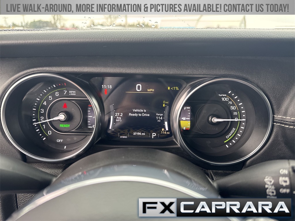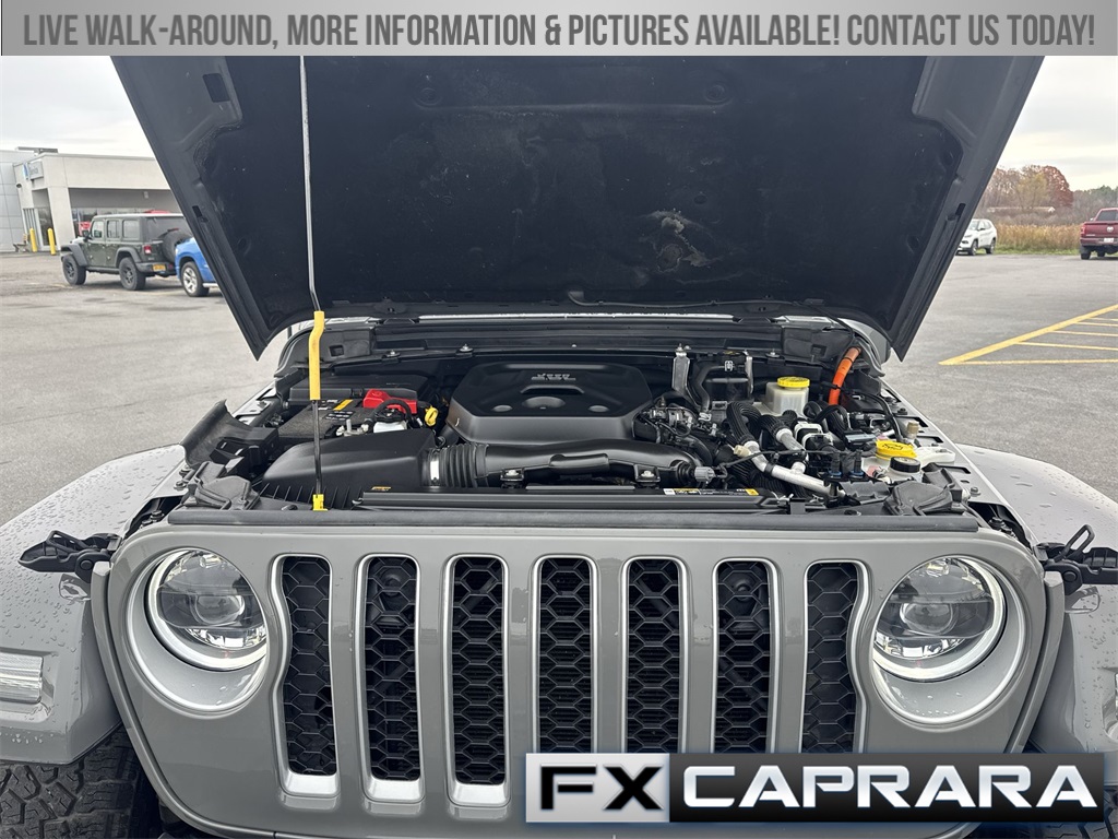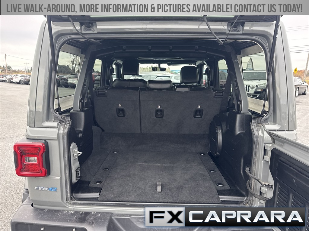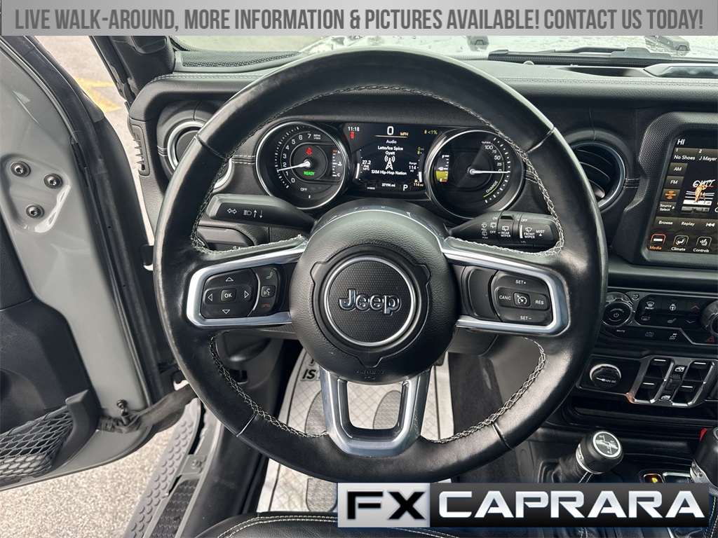 2.0L I4 DOHC, 3.73 Rear Axle Ratio, 4-Wheel Disc Brakes, 9 Speakers, ABS brakes, Air Conditioning, Alloy wheels, AM/FM radio: SiriusXM, Apple CarPlay/Android Auto, Auto-dimming Rear-View mirror, Automatic temperature control, Brake assist, Cold Weather Group, Compass, Delay-off headlights, Driver door bin, Driver vanity mirror, Dual front impact airbags, Dual front side impact airbags, Electronic Stability Control, Emergency communication system: SiriusXM Guardian, Front anti-roll bar, Front Bucket Seats, Front Center Armrest w/Storage, Front dual zone A/C, Front fog lights, Front License Plate Bracket, Front reading lights, Fully automatic headlights, Garage door transmitter, Heated door mirrors, Heated Front Seats, Heated Steering Wheel, Illuminated entry, Integrated roll-over protection, Leather Shift Knob, Low tire pressure warning, MOPAR Plastic Door Sill Guards, Navigation System, Occupant sensing airbag, Outside temperature display, Panic alarm, ParkView Rear Back-Up Camera, Passenger door bin, Passenger vanity mirror, Power door mirrors, Power steering, Power windows, Premium McKinley Trimmed Seats, Quick Order Package 29P Sahara, Radio data system, Radio: Uconnect 4C Nav w/8.4" Display, Rear anti-roll bar, Rear reading lights, Rear seat center armrest, Remote keyless entry, Security system, Side Steps, Sky 1-Touch Power Top, Speed control, Split folding rear seat, Sport Suspension, Steering wheel mounted audio controls, Tachometer, Telescoping steering wheel, Tilt steering wheel, Traction control, Trip computer, Variably intermittent wipers, Voltmeter, Wheels: 20" x 8" Fully Painted Aluminum, 2.0L I4 DOHC.
