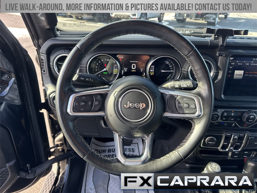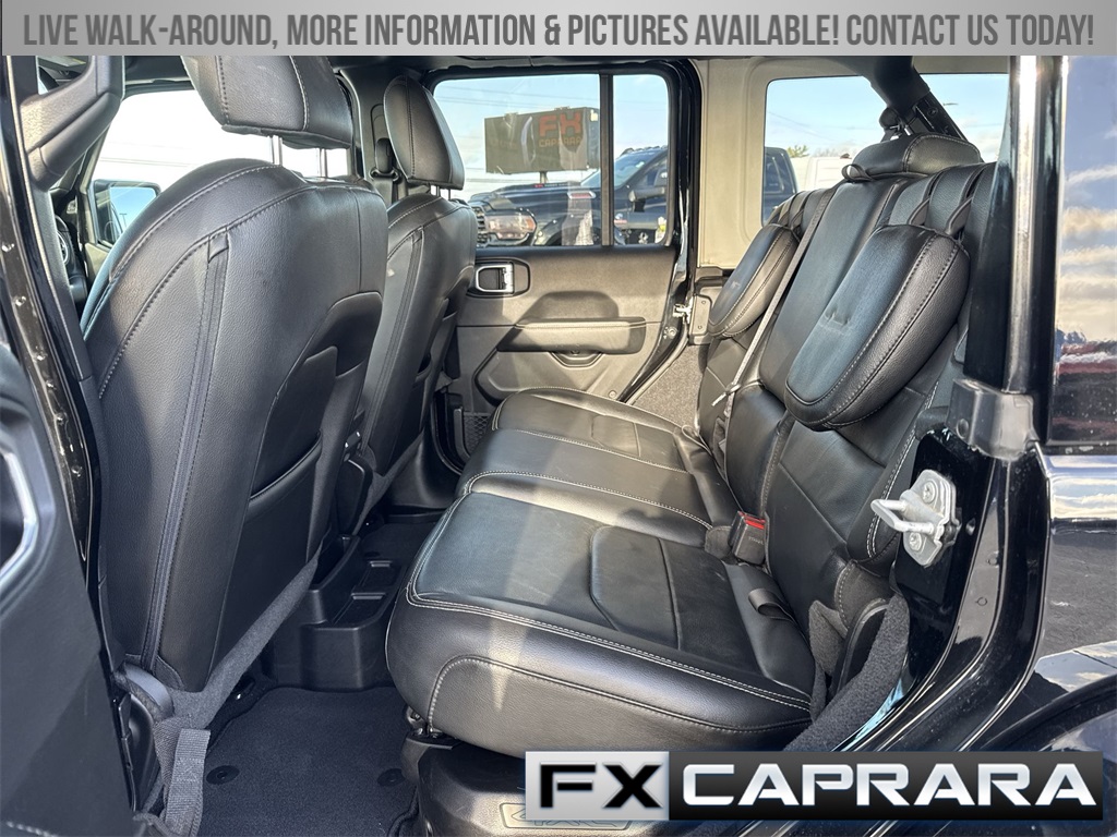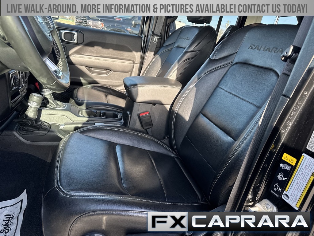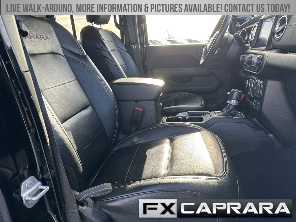 2.0L I4 DOHC, 3.73 Rear Axle Ratio, 4-Wheel Disc Brakes, 700 Amp Maintenance Free Battery, 9 Speakers, ABS brakes, Air Conditioning, Alloy wheels, AM/FM radio: SiriusXM, Apple CarPlay/Android Auto, Auto-dimming Rear-View mirror, Automatic temperature control, Auxiliary Switches, Body Color 3-Piece Hard Top, Brake assist, Cold Weather Group, Compass, Delay-off headlights, Driver door bin, Driver vanity mirror, Dual front impact airbags, Dual front side impact airbags, Dual Top Group, Electronic Stability Control, Emergency communication system: SiriusXM Guardian, Freedom Panel Storage Bag, Front anti-roll bar, Front Bucket Seats, Front Center Armrest w/Storage, Front dual zone A/C, Front fog lights, Front License Plate Bracket, Front reading lights, Fully automatic headlights, Garage door transmitter, Heated door mirrors, Heated Front Seats, Heated Steering Wheel, Illuminated entry, Integrated roll-over protection, Leather Shift Knob, Low tire pressure warning, Navigation System, Occupant sensing airbag, Outside temperature display, Panic alarm, ParkView Rear Back-Up Camera, Passenger door bin, Passenger vanity mirror, Power door mirrors, Power steering, Power windows, Premium Black Sunrider Soft Top w/Dual Top Group, Premium McKinley Trimmed Seats, Quick Order Package 29P Sahara, Radio data system, Radio: Uconnect 4C Nav w/8.4" Display, Rear anti-roll bar, Rear reading lights, Rear seat center armrest, Rear Window Defroster, Rear Window Wiper/Washer, Remote keyless entry, Security system, Side Steps, Speed control, Split folding rear seat, Sport Suspension, Steering wheel mounted audio controls, Tachometer, Telescoping steering wheel, Tilt steering wheel, Traction control, Trailer Tow & Aux Switch Group, Trip computer, Variably intermittent wipers, Voltmeter, Wheels: 20" x 8" Fully Painted Aluminum, 2.0L I4 DOHC.
