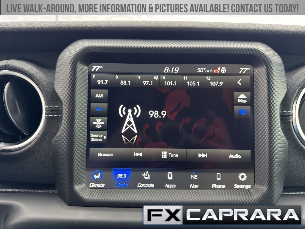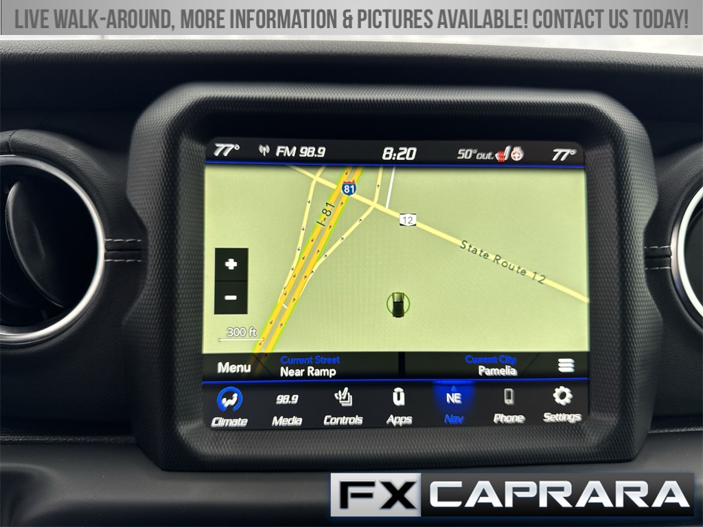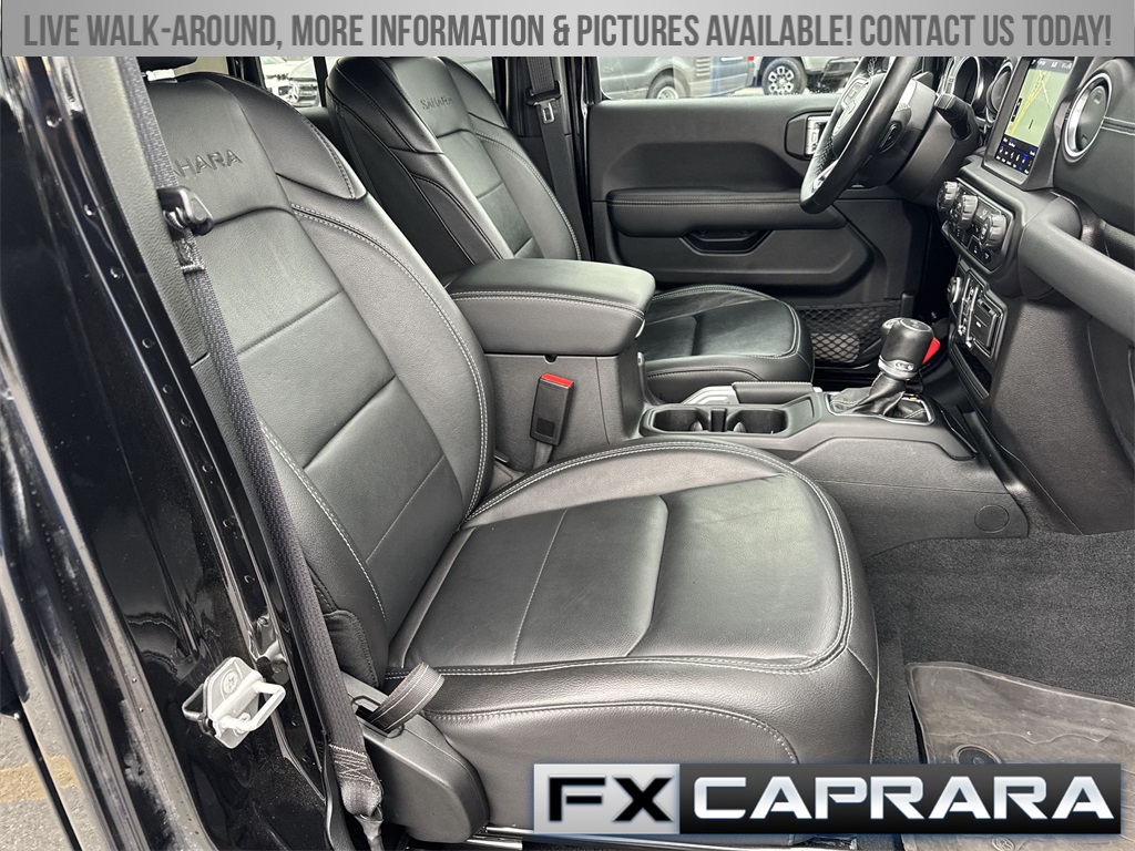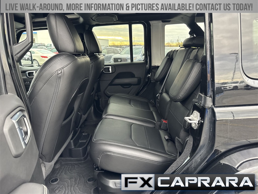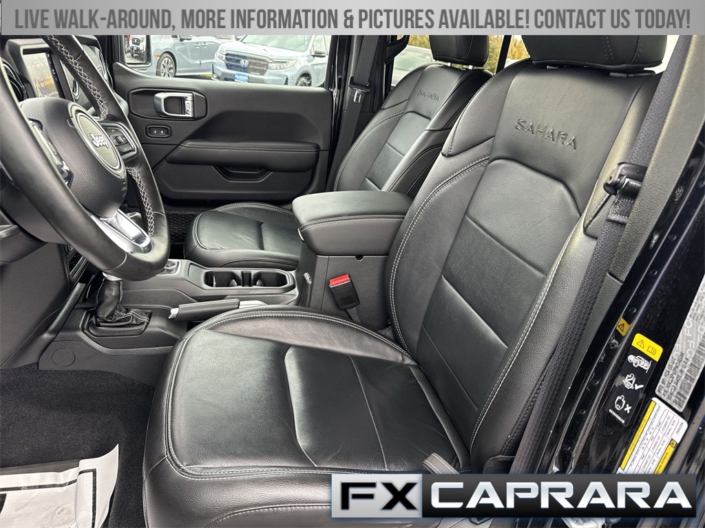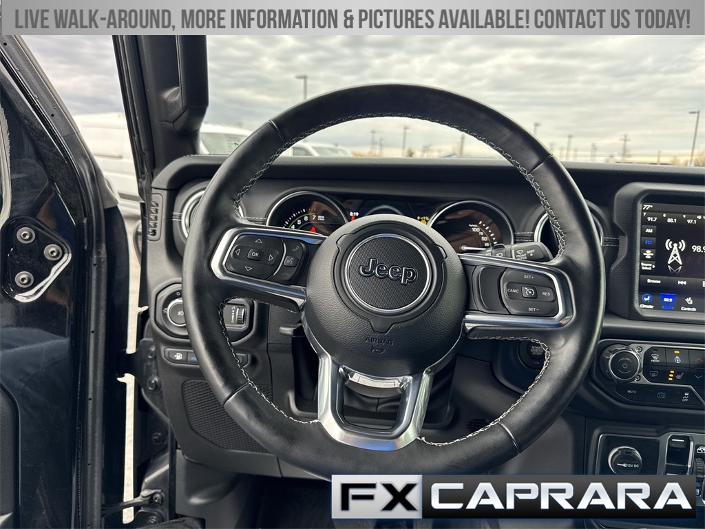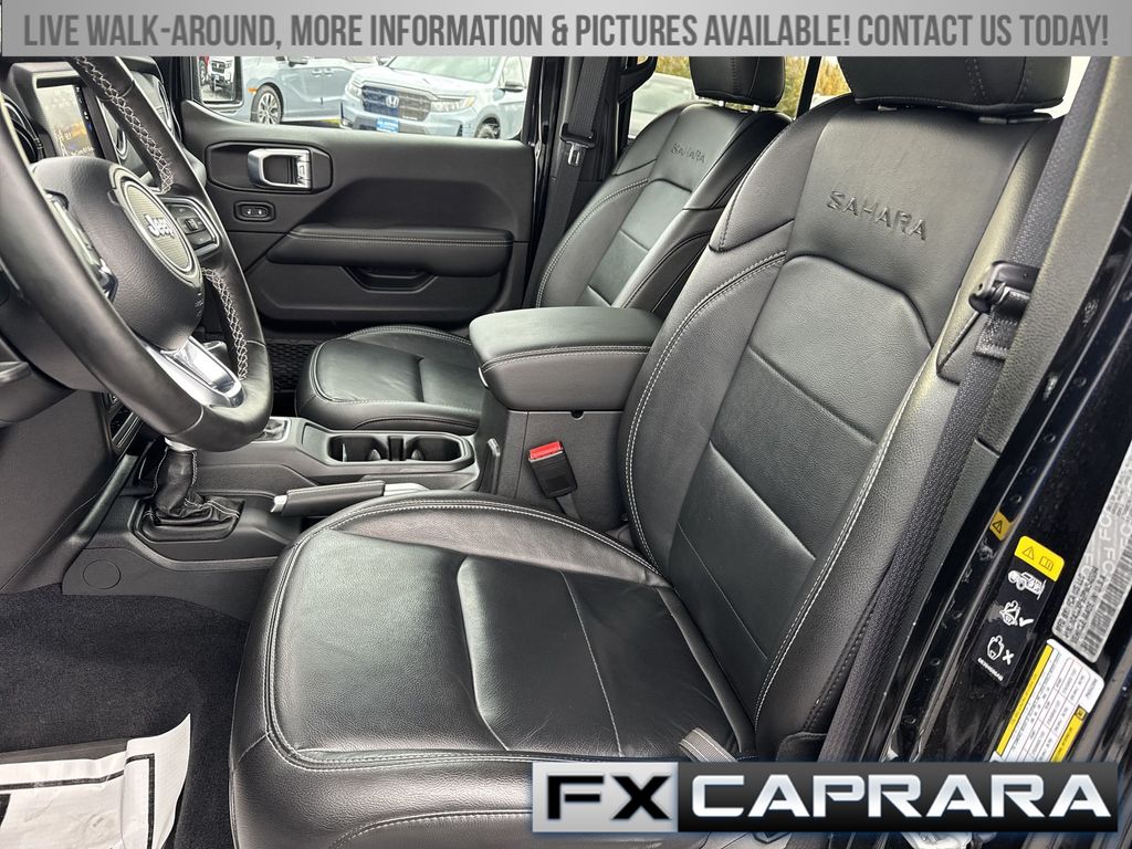 2.0L I4 DOHC, 3.73 Rear Axle Ratio, 4-Wheel Disc Brakes, 9 Speakers, ABS brakes, Air Conditioning, Alloy wheels, AM/FM radio: SiriusXM, Apple CarPlay/Android Auto, Auto-dimming Rear-View mirror, Automatic temperature control, Brake assist, Cold Weather Group, Compass, Delay-off headlights, Driver door bin, Driver vanity mirror, Dual front impact airbags, Dual front side impact airbags, Electronic Stability Control, Emergency communication system: SiriusXM Guardian, Front anti-roll bar, Front Bucket Seats, Front Center Armrest w/Storage, Front dual zone A/C, Front fog lights, Front reading lights, Fully automatic headlights, Garage door transmitter, Heated door mirrors, Heated Front Seats, Heated Steering Wheel, Illuminated entry, Integrated roll-over protection, Leather Shift Knob, Low tire pressure warning, MOPAR All-Weather Floor Mats, Navigation System, Occupant sensing airbag, Outside temperature display, Panic alarm, ParkView Rear Back-Up Camera, Passenger door bin, Passenger vanity mirror, Power door mirrors, Power steering, Power windows, Premium McKinley Trimmed Seats, Quick Order Package 29P Sahara, Radio data system, Radio: Uconnect 4C Nav w/8.4" Display, Rear anti-roll bar, Rear reading lights, Rear seat center armrest, Remote keyless entry, Security system, Side Steps, Sky 1-Touch Power Top, Speed control, Split folding rear seat, Sport Suspension, Steering wheel mounted audio controls, Tachometer, Telescoping steering wheel, Tilt steering wheel, Traction control, Trip computer, Variably intermittent wipers, Voltmeter, Wheels: 20" x 8" Fully Painted Aluminum, 2.0L I4 DOHC.