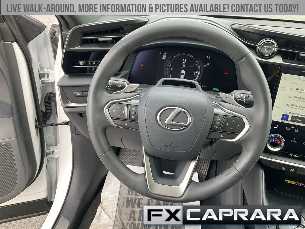 13 Speakers, 4-Wheel Disc Brakes, ABS brakes, Air Conditioning, Alloy wheels, AM/FM radio: SiriusXM, Apple CarPlay/Android Auto, Auto High-beam Headlights, Auto-dimming door mirrors, Auto-dimming Rear-View mirror, Automatic temperature control, Brake assist, Bumpers: body-color, Delay-off headlights, Driver door bin, Driver vanity mirror, Dual front impact airbags, Dual front side impact airbags, Electronic Stability Control, Emergency communication system: Safety Connect (10-year trial), Exterior Parking Camera Rear, Four wheel independent suspension, Front anti-roll bar, Front Bucket Seats, Front Center Armrest, Front dual zone A/C, Front reading lights, Fully automatic headlights, Heads-Up Display, Heated & Ventilated Front Bucket Seats, Heated door mirrors, Heated front seats, Heated rear seats, Heated steering wheel, Illuminated entry, Knee airbag, Low tire pressure warning, Memory seat, Navigation System, Occupant sensing airbag, Outside temperature display, Overhead airbag, Overhead console, Panic alarm, Passenger door bin, Passenger vanity mirror, Power door mirrors, Power driver seat, Power Liftgate, Power passenger seat, Power steering, Power windows, Radio data system, Radio: Lexus Interface w/Mark Levinson Audio, Rear anti-roll bar, Rear seat center armrest, Rear window defroster, Remote keyless entry, Security system, Speed control, Speed-sensing steering, Split folding rear seat, Spoiler, Steering wheel memory, Steering wheel mounted audio controls, TBD Axle Ratio, Telescoping steering wheel, Tilt steering wheel, Traction control, Trip computer, Turn signal indicator mirrors, Ultrasuede Seat Trim, Variably intermittent wipers, Ventilated front seats, Wheels: 20" 10-Spoke Premium Alloy.