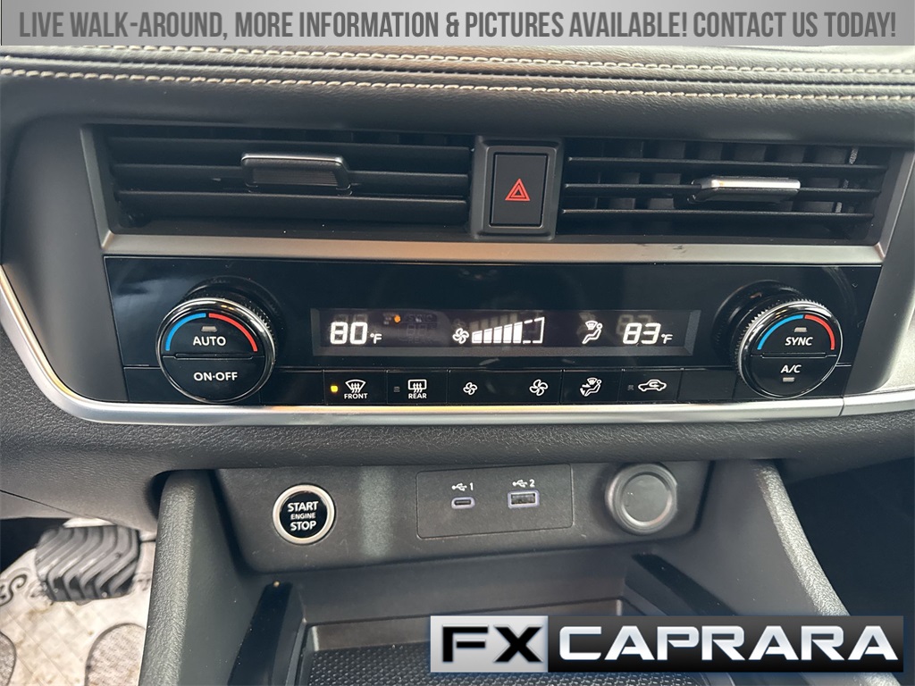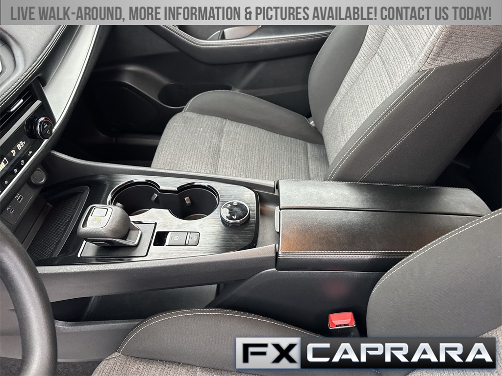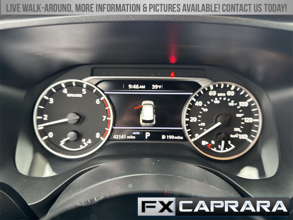 AWD, 18" Aluminum Alloy Wheels, 4-Wheel Disc Brakes, 5.604 Axle Ratio, 6 Speakers, ABS brakes, Air Conditioning, Alloy wheels, AM/FM Radio, AM/FM radio: SiriusXM, Auto High-beam Headlights, Automatic temperature control, Brake assist, Bumpers: body-color, Cloth Seat Trim, Delay-off headlights, Driver door bin, Driver vanity mirror, Dual front impact airbags, Dual front side impact airbags, Electronic Stability Control, Emergency communication system: NissanConnect Services, First Aid Kit, Floor Mats w/1-Piece Cargo Area Protector, Four wheel independent suspension, Front anti-roll bar, Front Bucket Seats, Front Center Armrest, Front dual zone A/C, Front reading lights, Fully automatic headlights, Heated door mirrors, Illuminated entry, Knee airbag, Low tire pressure warning, NissanConnect featuring Apple CarPlay and Android Auto, Occupant sensing airbag, Outside temperature display, Overhead airbag, Overhead console, Panic alarm, Passenger door bin, Passenger vanity mirror, Power door mirrors, Power driver seat, Power steering, Power windows, Radio data system, Rear anti-roll bar, Rear Parking Sensors, Rear seat center armrest, Rear side impact airbag, Rear window defroster, Rear window wiper, Remote keyless entry, Speed control, Speed-Sensitive Wipers, Split folding rear seat, Spoiler, Steering wheel mounted audio controls, Tachometer, Telescoping steering wheel, Tilt steering wheel, Traction control, Trip computer, Variably intermittent wipers, AWD.