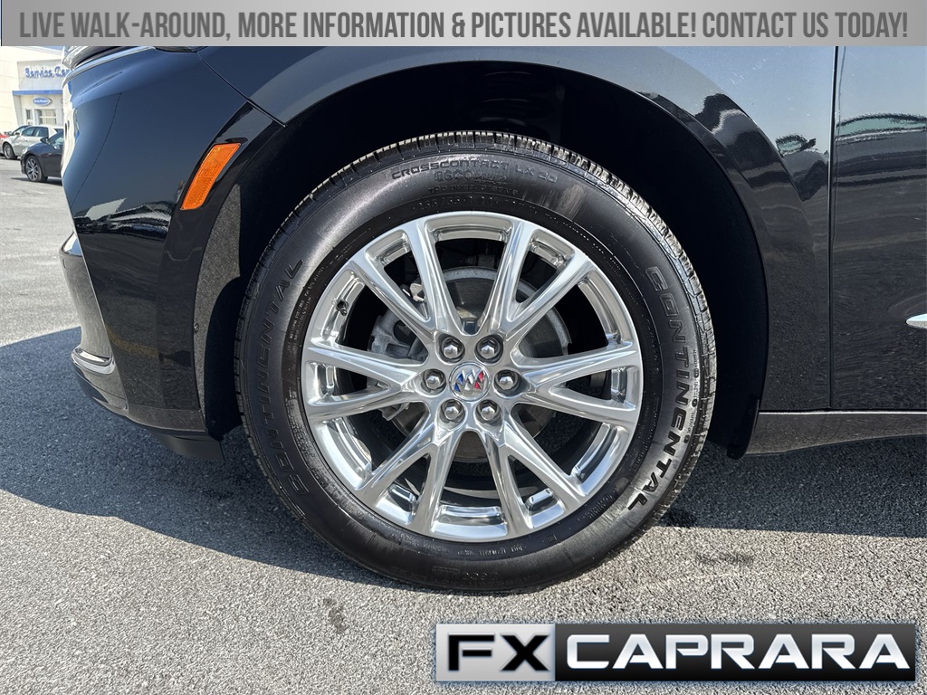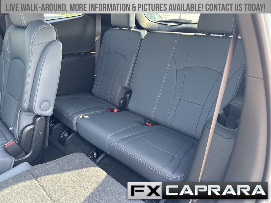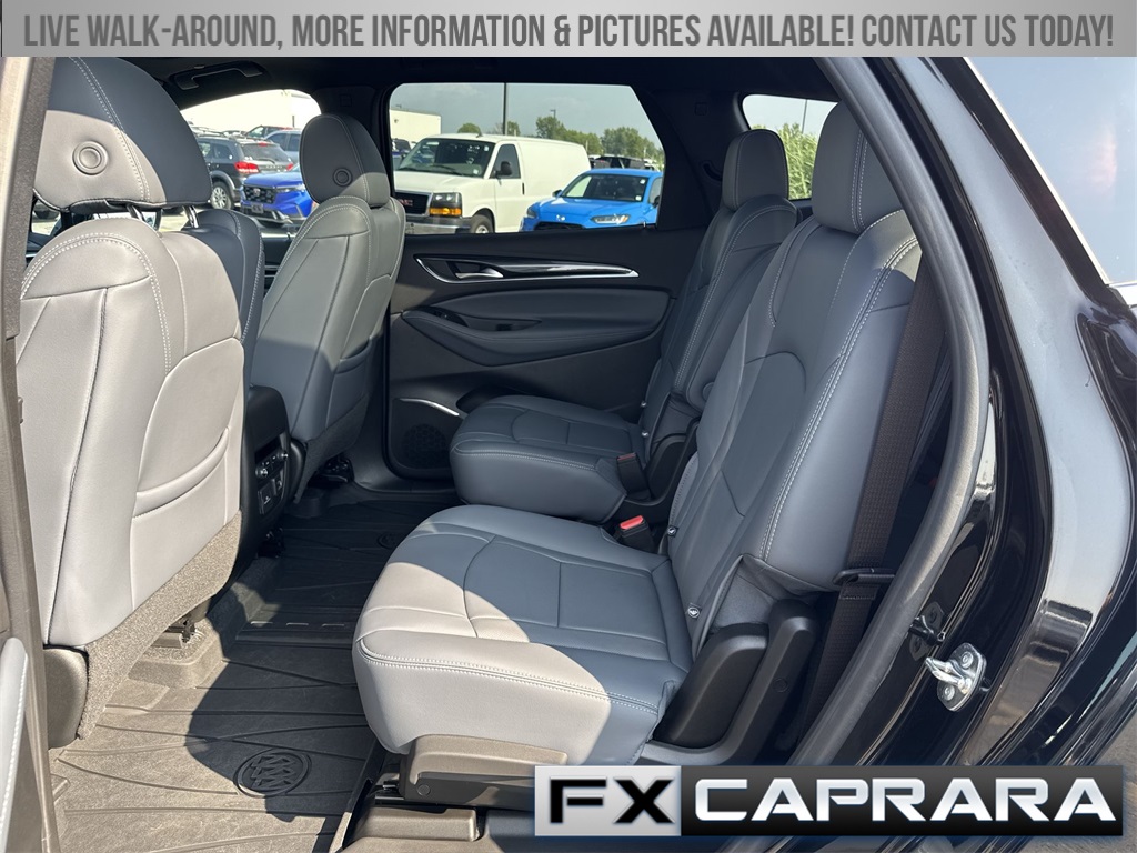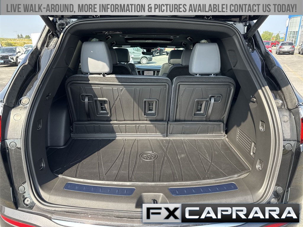 AWD, 18" Aluminum Wheels, 3.49 Final Drive Axle Ratio, 3rd row seats: split-bench, 4-Wheel Disc Brakes, 6 Speakers, 6-Speaker Audio System Feature, 6-Way Power Front Passenger Seat Adjuster, 7-Passenger Seating, 8-Way Power Driver Seat Adjuster, ABS brakes, Air Conditioning, Alloy wheels, AM/FM radio: SiriusXM with 360L, Auto High-beam Headlights, Auto-dimming door mirrors, Auto-dimming Rear-View mirror, Automatic temperature control, Brake assist, Bumpers: body-color, Compass, Delay-off headlights, Driver door bin, Driver vanity mirror, Dual front impact airbags, Dual front side impact airbags, Electronic Stability Control, Emergency communication system: OnStar and Buick connected services capable, Four wheel independent suspension, Front anti-roll bar, Front Bucket Seats, Front Center Armrest, Front dual zone A/C, Front reading lights, Fully automatic headlights, Garage door transmitter, Heated door mirrors, Heated Driver & Front Passenger Seats, Heated front seats, Heated steering wheel, Illuminated entry, Leather steering wheel, Low tire pressure warning, Occupant sensing airbag, Outside temperature display, Overhead airbag, Overhead console, Panic alarm, Passenger door bin, Passenger vanity mirror, Perforated Leather-Appointed Seat Trim, Power door mirrors, Power Driver Lumbar Control Seat Adjuster, Power driver seat, Power Liftgate, Power Passenger Lumbar Control Seat Adjuster, Power passenger seat, Power steering, Power windows, Premium audio system: Buick Infotainment System, Radio data system, Radio: Buick Infotainment System AM/FM Stereo, Rear air conditioning, Rear anti-roll bar, Rear reading lights, Rear window defroster, Rear window wiper, Remote keyless entry, Security system, SiriusXM w/360L, Speed control, Speed-sensing steering, Spoiler, Steering wheel mounted audio controls, Tachometer, Telescoping steering wheel, Tilt steering wheel, Traction control, Trip computer, Turn signal indicator mirrors, Variably intermittent wipers, Vehicle Health Management, Voltmeter, Wireless Apple CarPlay/Wireless Android Auto, AWD.