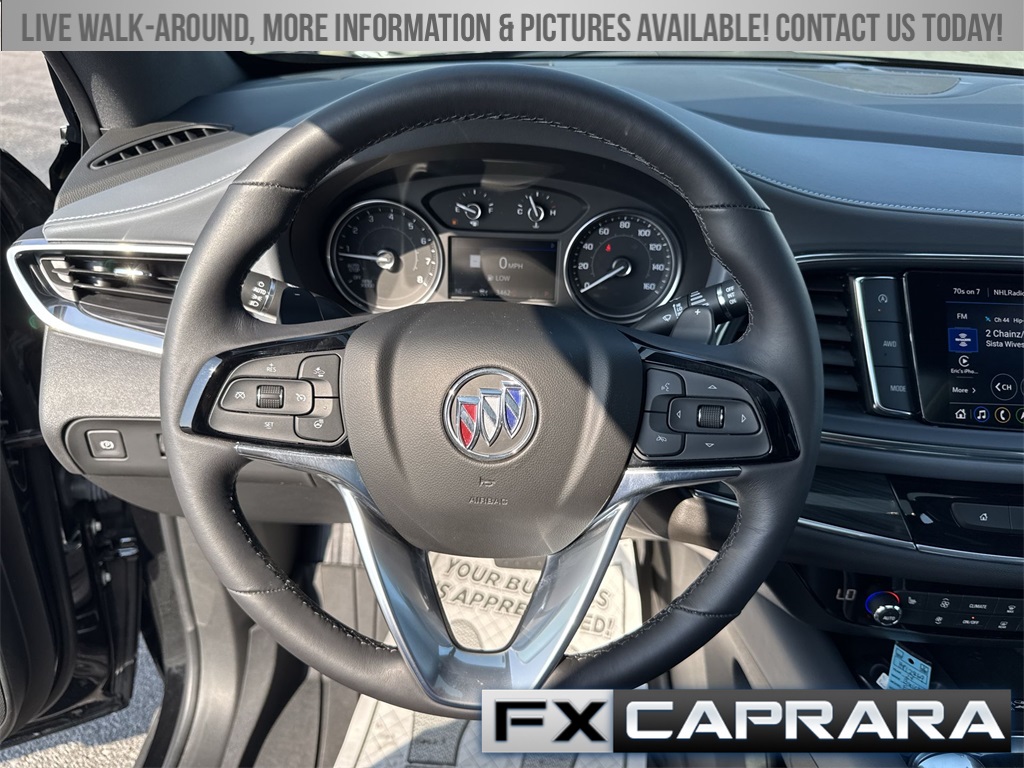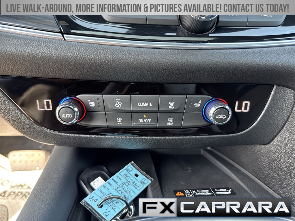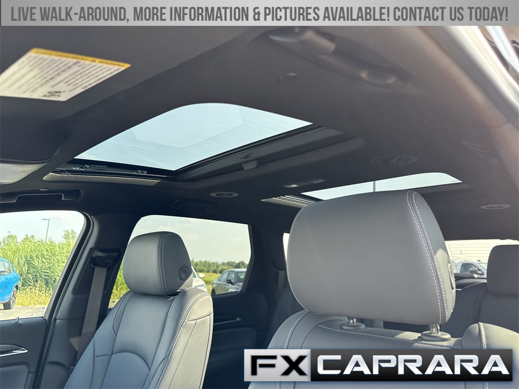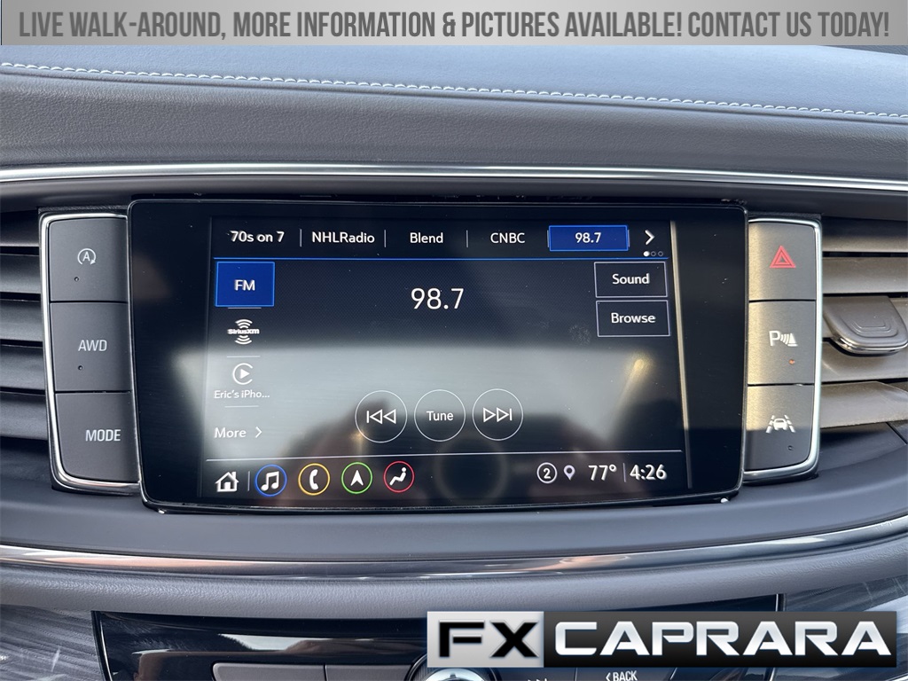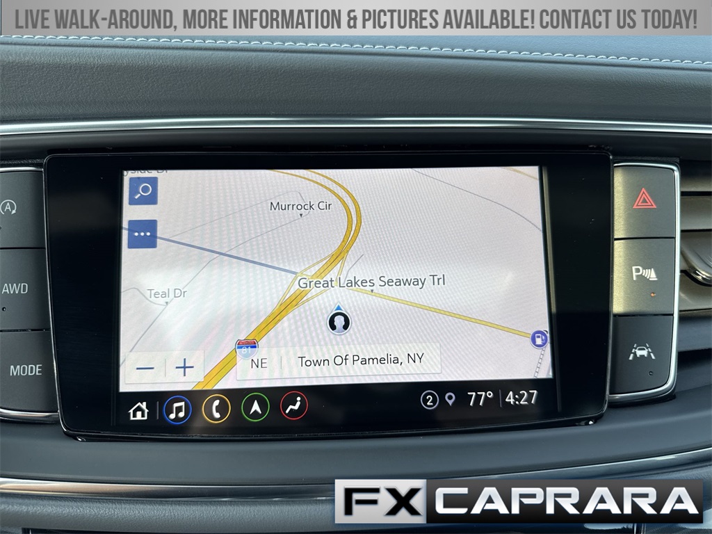 AWD, 18" Aluminum Wheels, 3.49 Final Drive Axle Ratio, 3rd row seats: split-bench, 4-Wheel Disc Brakes, 6 Speakers, 6-Speaker Audio System Feature, 6-Way Power Front Passenger Seat Adjuster, 7-Passenger Seating, 8-Way Power Driver Seat Adjuster, ABS brakes, Air Conditioning, Alloy wheels, AM/FM radio: SiriusXM with 360L, Auto High-beam Headlights, Auto-dimming door mirrors, Auto-dimming Rear-View mirror, Automatic temperature control, Brake assist, Bumpers: body-color, Compass, Delay-off headlights, Driver door bin, Driver vanity mirror, Dual front impact airbags, Dual front side impact airbags, Electronic Stability Control, Emergency communication system: OnStar and Buick connected services capable, Four wheel independent suspension, Front anti-roll bar, Front Bucket Seats, Front Center Armrest, Front dual zone A/C, Front reading lights, Fully automatic headlights, Garage door transmitter, Heated door mirrors, Heated Driver & Front Passenger Seats, Heated front seats, Heated steering wheel, Illuminated entry, Leather steering wheel, Low tire pressure warning, Occupant sensing airbag, Outside temperature display, Overhead airbag, Overhead console, Panic alarm, Passenger door bin, Passenger vanity mirror, Perforated Leather-Appointed Seat Trim, Power door mirrors, Power Driver Lumbar Control Seat Adjuster, Power driver seat, Power Liftgate, Power Passenger Lumbar Control Seat Adjuster, Power passenger seat, Power steering, Power windows, Premium audio system: Buick Infotainment System, Radio data system, Radio: Buick Infotainment System AM/FM Stereo, Rear air conditioning, Rear anti-roll bar, Rear reading lights, Rear window defroster, Rear window wiper, Remote keyless entry, Security system, SiriusXM w/360L, Speed control, Speed-sensing steering, Spoiler, Steering wheel mounted audio controls, Tachometer, Telescoping steering wheel, Tilt steering wheel, Traction control, Trip computer, Turn signal indicator mirrors, Variably intermittent wipers, Vehicle Health Management, Voltmeter, Wireless Apple CarPlay/Wireless Android Auto, AWD.
