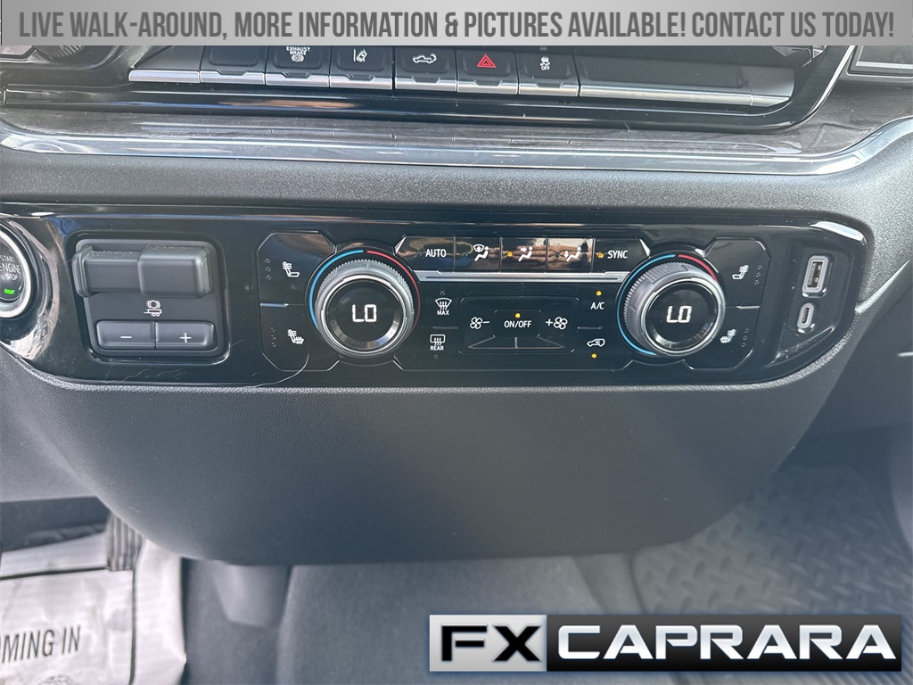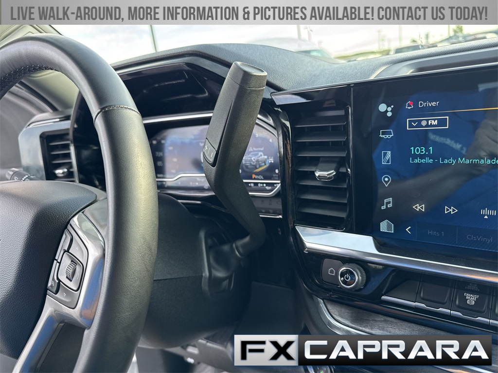 10-Speed Automatic, 4WD, Jet Black Leather, 10-Way Power Driver Seat Adjuster w/Lumbar, 10-Way Power Passenger Seat Adjuster w/Lumbar, 120-Volt Bed Mounted Power Outlet, 120-Volt Interior Power Outlet, 170 Amp Alternator, 220 Amp Alternator, 4-Wheel Disc Brakes, 6 Speakers, 6-Speaker Audio System, 6" Rectangular Chromed Tubular Assist Steps, 720 Cold-Cranking Amps Heavy-Duty Battery, ABS brakes, Air Conditioning, All-Weather Floor Liners (LPO), Alloy wheels, AM/FM radio: SiriusXM with 360L, Apple CarPlay/Android Auto, Auto High-beam Headlights, Auto-dimming door mirrors, Auto-Dimming Inside Rear-View Mirror, Auto-dimming Rear-View mirror, Automatic temperature control, Black Chevytec Spray-On Bedliner, Bluetooth® For Phone, Brake assist, Bumpers: chrome, Chevrolet Connected Access Capable, Chrome Door Handles, Chrome Mirror Caps, Color-Keyed Carpeting Floor Covering, Compass, Deep-Tinted Glass, Delay-off headlights, Deleted 3 Years of Remote Access, Driver door bin, Driver Memory, Driver vanity mirror, Dual front impact airbags, Dual front side impact airbags, Durabed Pickup Bed, Electric Rear-Window Defogger, Electronic Cruise Control w/Set & Resume Speed, Electronic Stability Control, Engine Block Heater, Exhaust Brake, EZ Lift Power Lock & Release Tailgate, Front 40/20/40 Split-Bench Seats w/Lockable Storage, Front anti-roll bar, Front Center Armrest w/Storage, Front dual zone A/C, Front fog lights, Front LED Fog Lamps, Front License Plate Kit, Front Rain-Sensing Wipers, Front reading lights, Front Rubberized Vinyl Floor Mats, Front wheel independent suspension, Fully automatic headlights, HD Rear Vision Camera, Heated door mirrors, Heated Driver & Front Outboard Passenger Seating, Heated front seats, Heated Steering Wheel, Heated steering wheel, Hitch Guidance w/Hitch View, Illuminated entry, In-Vehicle Trailering App System, Keyless Open & Start, LED Taillamps w/Fixed Signature, Low tire pressure warning, Manual Tilt & Telescoping Steering Column, Memory seat, Occupant sensing airbag, OnStar & Chevrolet Connected Services Capable, Outside temperature display, Overhead airbag, Overhead console, Panic alarm, Passenger door bin, Passenger vanity mirror, Perf Leather-Appointed Front Outboard Seat Trim, Power Door Locks, Power door mirrors, Power driver seat, Power Front Windows w/Driver Express Up/Down, Power Front Windows w/Passenger Express Up/Down, Power passenger seat, Power Rear Windows w/Express Down, Power steering, Power windows, Preferred Equipment Group 1LZ, Premium audio system: Chevrolet Infotainment 3 Premium, Push Button Start, Radio: Chevrolet Infotainment 3 Premium System, Rain sensing wipers, Rear reading lights, Rear Rubberized Vinyl Floor Mats, Rear seat center armrest, Rear step bumper, Rear Wheelhouse Liners, Rear window defroster, Remote keyless entry, Remote Vehicle Starter System, Security system, SiriusXM w/360L, Speed control, Speed-sensing steering, Split folding rear seat, Standard Tailgate, Steering Wheel Audio Controls, Steering wheel mounted audio controls, Suspension Package, Tachometer, Telescoping steering wheel, Tilt steering wheel, Traction control, Trip computer, Turn signal indicator mirrors, Unauthorized Entry Theft-Deterrent System, Up-Level Rear Seat w/Storage Package, Variably intermittent wipers, Voltmeter, Wheels: 18" Machined Alum w/Silver Painted Accents, Wi-Fi Hotspot Capable, Winter Grille Cover, Wireless Phone Projection,