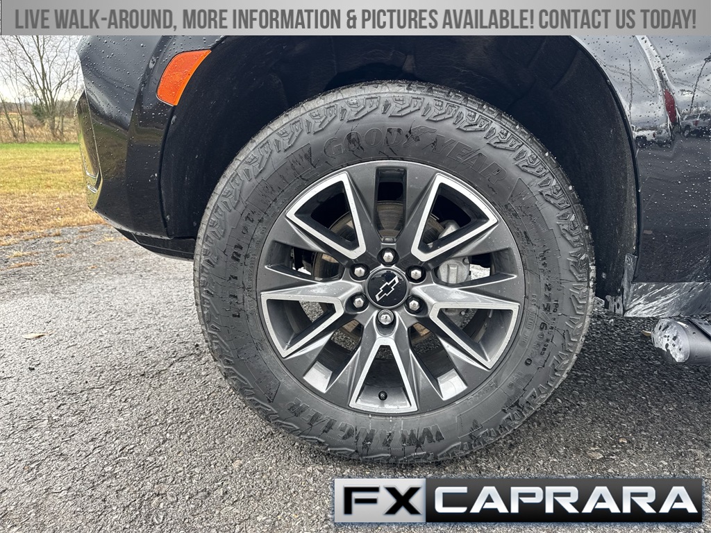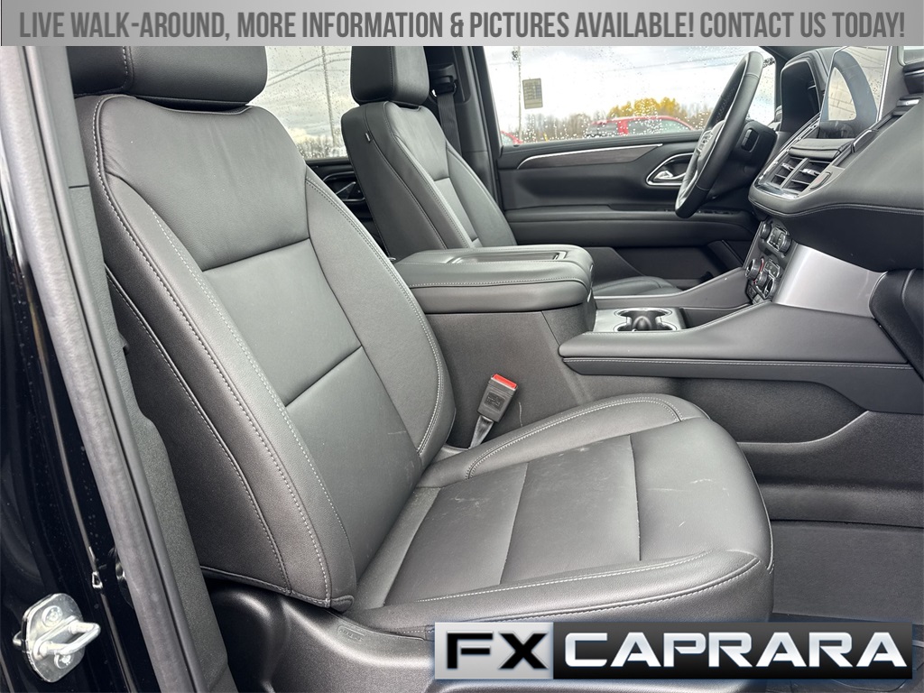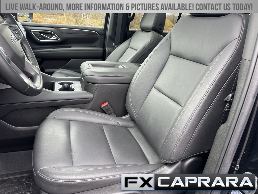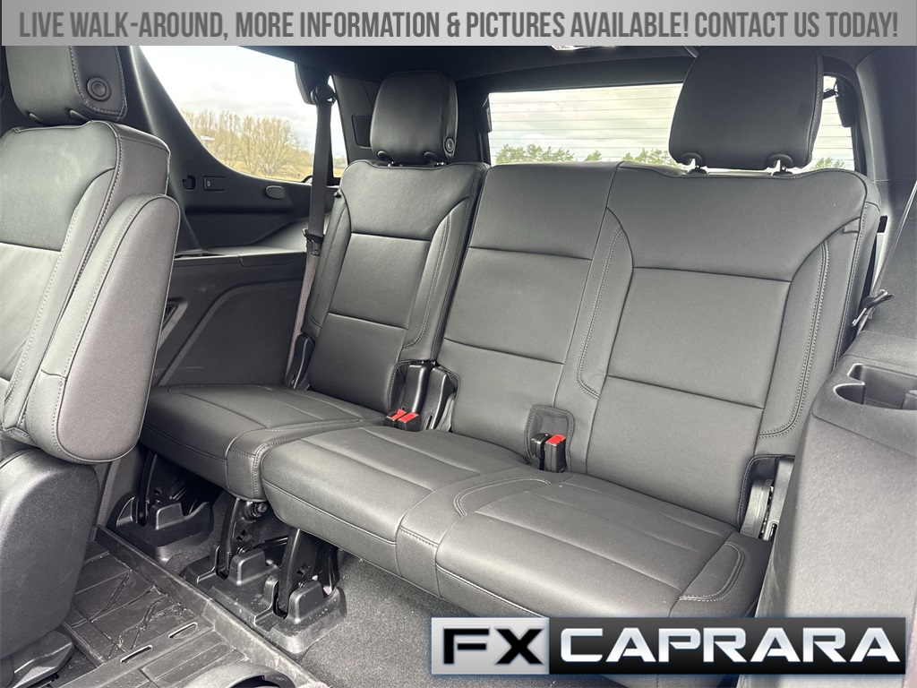 4WD, Leather, 10-Way Power Driver & Passenger Seat Adjusters, 1st & 2nd Row Color-Keyed Carpeted Floor Mats, 2-Speed Active Electronic AutoTrac Transfer Case, 3.23 Rear Axle Ratio, 3rd row seats: split-bench, 4-Wheel Disc Brakes, 9 Speakers, ABS brakes, Air Conditioning, Alloy wheels, AM/FM radio: SiriusXM with 360L, Apple CarPlay/Android Auto, Auto High-beam Headlights, Auto-Dimming Inside Rear-View Mirror, Auto-dimming Rear-View mirror, Automatic temperature control, Black Tubular Assist Steps, Bose 9-Speaker Stereo Audio System Feature, Brake assist, Bright Front & Rear Door Sill Plates, Bumpers: body-color, Color-Keyed Carpeting Floor Covering, Compass, Delay-off headlights, Driver & Front Outboard Passenger Airbags, Driver door bin, Driver vanity mirror, Dual front impact airbags, Dual front side impact airbags, Electronic Stability Control, Emergency communication system: OnStar and Chevrolet connected services capable, Enhanced Driver Information Center, Floor Console w/Storage Area, Four wheel independent suspension, Front anti-roll bar, Front Bucket Seats, Front Center Armrest, Front dual zone A/C, Front High-Approach Angle Fascia, Front High-Back Reclining Bucket Seats, Front reading lights, Fully automatic headlights, Garage door transmitter, Hands-Free Rear Power Programmable Liftgate, Heated door mirrors, Heated Driver & Front Passenger Seats, Heated front seats, Hill Descent Control, Illuminated entry, Infotainment Display, Leather-Appointed Seat Trim, LED Daytime Running Lamps, Low tire pressure warning, Memory seat, Memory Settings for Driver, Navigation System, Occupant sensing airbag, Outside temperature display, Overhead airbag, Overhead console, Panic alarm, Passenger door bin, Passenger vanity mirror, Power door mirrors, Power driver seat, Power Liftgate, Power passenger seat, Power steering, Power windows, Premium audio system: Chevrolet Infotainment 3 Premium, Premium Smooth Ride Suspension, Radio: Chevrolet Infotainment 3 Premium System, Rain sensing wipers, Rear air conditioning, Rear anti-roll bar, Rear reading lights, Rear seat center armrest, Rear window defroster, Rear window wiper, Red Horizontal-Mounted Recovery Hooks, Remote keyless entry, Remote Start, Roof rack: xxxxxx, Security system, SiriusXM w/360L, Speed control, Speed-sensing steering, Split folding rear seat, Spoiler, Steering wheel mounted audio controls, Tachometer, Telescoping steering wheel, Tilt steering wheel, Traction control, Trip computer, Universal Home Remote, Variably intermittent wipers, Voltmeter, Wheels: 20" x 9" Machined Aluminum, Wireless Charging, Wrapped Steering Wheel, 4WD, Leather.