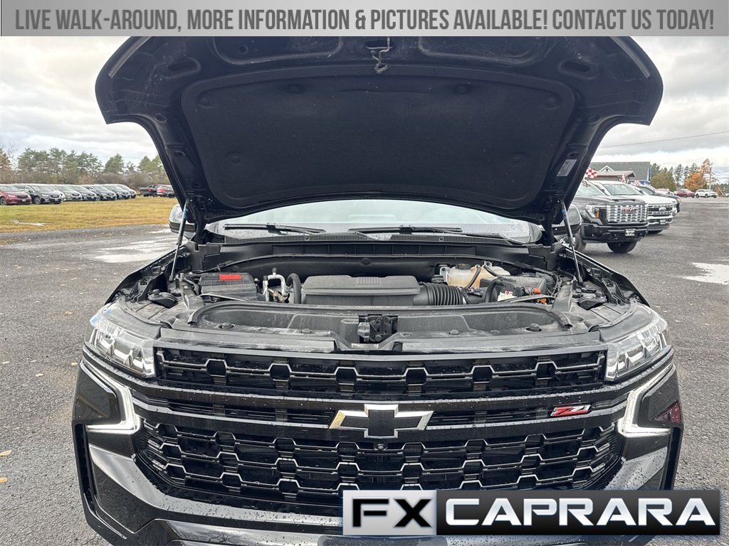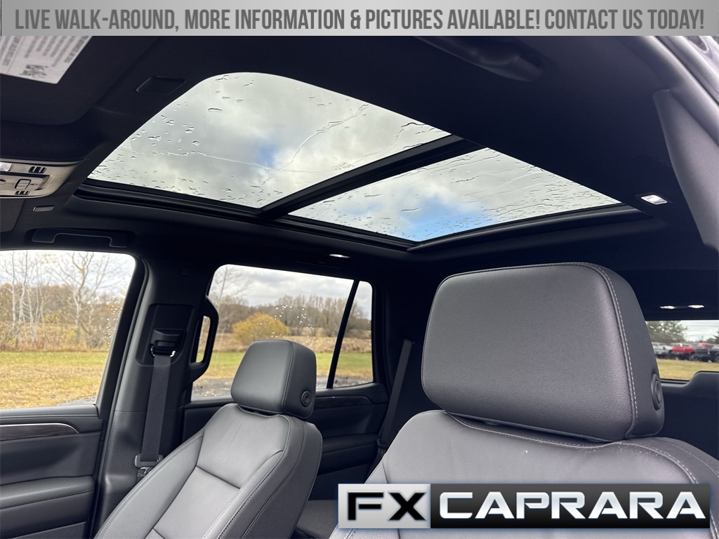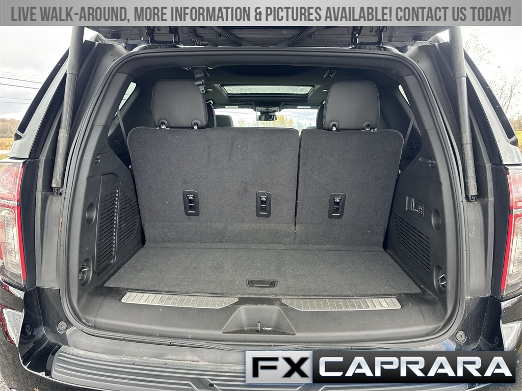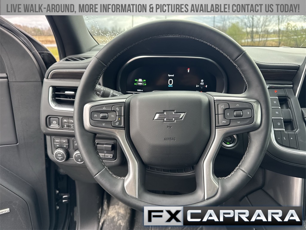 4WD, Leather, 10-Way Power Driver & Passenger Seat Adjusters, 1st & 2nd Row Color-Keyed Carpeted Floor Mats, 2-Speed Active Electronic AutoTrac Transfer Case, 3.23 Rear Axle Ratio, 3rd row seats: split-bench, 4-Wheel Disc Brakes, 9 Speakers, ABS brakes, Air Conditioning, Alloy wheels, AM/FM radio: SiriusXM with 360L, Apple CarPlay/Android Auto, Auto High-beam Headlights, Auto-Dimming Inside Rear-View Mirror, Auto-dimming Rear-View mirror, Automatic temperature control, Black Tubular Assist Steps, Bose 9-Speaker Stereo Audio System Feature, Brake assist, Bright Front & Rear Door Sill Plates, Bumpers: body-color, Color-Keyed Carpeting Floor Covering, Compass, Delay-off headlights, Driver & Front Outboard Passenger Airbags, Driver door bin, Driver vanity mirror, Dual front impact airbags, Dual front side impact airbags, Electronic Stability Control, Emergency communication system: OnStar and Chevrolet connected services capable, Enhanced Driver Information Center, Floor Console w/Storage Area, Four wheel independent suspension, Front anti-roll bar, Front Bucket Seats, Front Center Armrest, Front dual zone A/C, Front High-Approach Angle Fascia, Front High-Back Reclining Bucket Seats, Front reading lights, Fully automatic headlights, Garage door transmitter, Hands-Free Rear Power Programmable Liftgate, Heated door mirrors, Heated Driver & Front Passenger Seats, Heated front seats, Hill Descent Control, Illuminated entry, Infotainment Display, Leather-Appointed Seat Trim, LED Daytime Running Lamps, Low tire pressure warning, Memory seat, Memory Settings for Driver, Navigation System, Occupant sensing airbag, Outside temperature display, Overhead airbag, Overhead console, Panic alarm, Passenger door bin, Passenger vanity mirror, Power door mirrors, Power driver seat, Power Liftgate, Power passenger seat, Power steering, Power windows, Premium audio system: Chevrolet Infotainment 3 Premium, Premium Smooth Ride Suspension, Radio: Chevrolet Infotainment 3 Premium System, Rain sensing wipers, Rear air conditioning, Rear anti-roll bar, Rear reading lights, Rear seat center armrest, Rear window defroster, Rear window wiper, Red Horizontal-Mounted Recovery Hooks, Remote keyless entry, Remote Start, Roof rack: xxxxxx, Security system, SiriusXM w/360L, Speed control, Speed-sensing steering, Split folding rear seat, Spoiler, Steering wheel mounted audio controls, Tachometer, Telescoping steering wheel, Tilt steering wheel, Traction control, Trip computer, Universal Home Remote, Variably intermittent wipers, Voltmeter, Wheels: 20" x 9" Machined Aluminum, Wireless Charging, Wrapped Steering Wheel, 4WD, Leather.