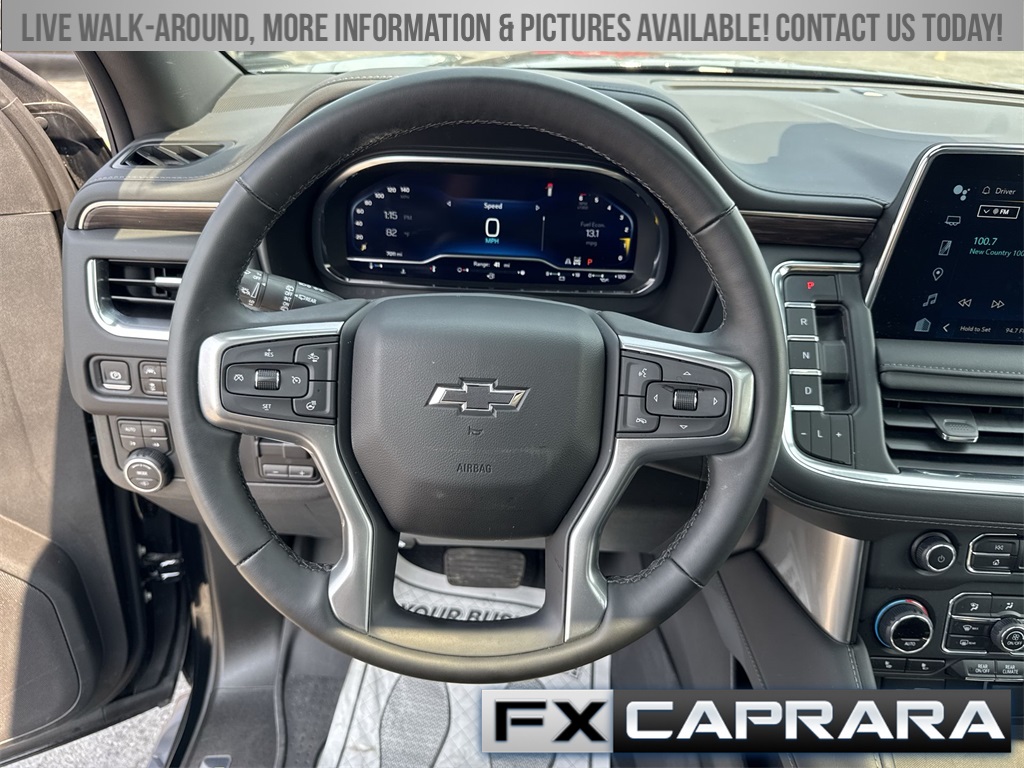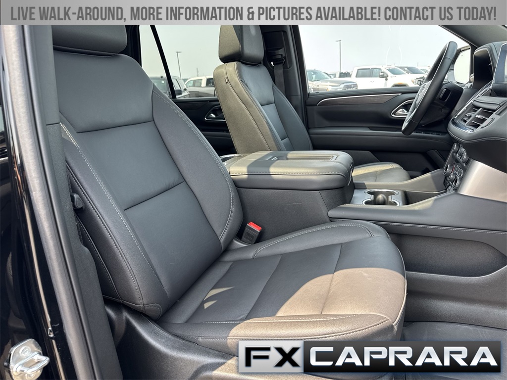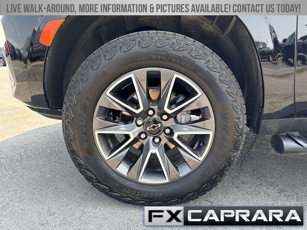4WD, Leather, 10-Way Power Driver & Passenger Seat Adjusters, 1st & 2nd Row Color-Keyed Carpeted Floor Mats, 2-Speed Active Electronic AutoTrac Transfer Case, 3.23 Rear Axle Ratio, 3rd row seats: split-bench, 4-Wheel Disc Brakes, 9 Speakers, ABS brakes, Air Conditioning, Alloy wheels, AM/FM radio: SiriusXM with 360L, Apple CarPlay/Android Auto, Auto High-beam Headlights, Auto-Dimming Inside Rear-View Mirror, Auto-dimming Rear-View mirror, Automatic temperature control, Black Tubular Assist Steps, Bose 9-Speaker Stereo Audio System Feature, Brake assist, Bright Front & Rear Door Sill Plates, Bumpers: body-color, Color-Keyed Carpeting Floor Covering, Compass, Delay-off headlights, Driver & Front Outboard Passenger Airbags, Driver door bin, Driver vanity mirror, Dual front impact airbags, Dual front side impact airbags, Electronic Stability Control, Emergency communication system: OnStar and Chevrolet connected services capable, Enhanced Driver Information Center, Floor Console w/Storage Area, Four wheel independent suspension, Front anti-roll bar, Front Bucket Seats, Front Center Armrest, Front dual zone A/C, Front High-Approach Angle Fascia, Front High-Back Reclining Bucket Seats, Front reading lights, Fully automatic headlights, Garage door transmitter, Hands-Free Rear Power Programmable Liftgate, Heated door mirrors, Heated Driver & Front Passenger Seats, Heated front seats, Hill Descent Control, Illuminated entry, Infotainment Display, Leather-Appointed Seat Trim, LED Daytime Running Lamps, Low tire pressure warning, Memory seat, Memory Settings for Driver, Navigation System, Occupant sensing airbag, Outside temperature display, Overhead airbag, Overhead console, Panic alarm, Passenger door bin, Passenger vanity mirror, Power door mirrors, Power driver seat, Power Liftgate, Power passenger seat, Power steering, Power windows, Premium audio system: Chevrolet Infotainment 3 Premium, Premium Smooth Ride Suspension, Radio: Chevrolet Infotainment 3 Premium System, Rain sensing wipers, Rear air conditioning, Rear anti-roll bar, Rear reading lights, Rear seat center armrest, Rear window defroster, Rear window wiper, Red Horizontal-Mounted Recovery Hooks, Remote keyless entry, Remote Start, Roof rack: xxxxxx, Security system, SiriusXM w/360L, Speed control, Speed-sensing steering, Split folding rear seat, Spoiler, Steering wheel mounted audio controls, Tachometer, Telescoping steering wheel, Tilt steering wheel, Traction control, Trip computer, Universal Home Remote, Variably intermittent wipers, Voltmeter, Wheels: 20" x 9" Machined Aluminum, Wireless Charging, Wrapped Steering Wheel, 4WD, Leather.