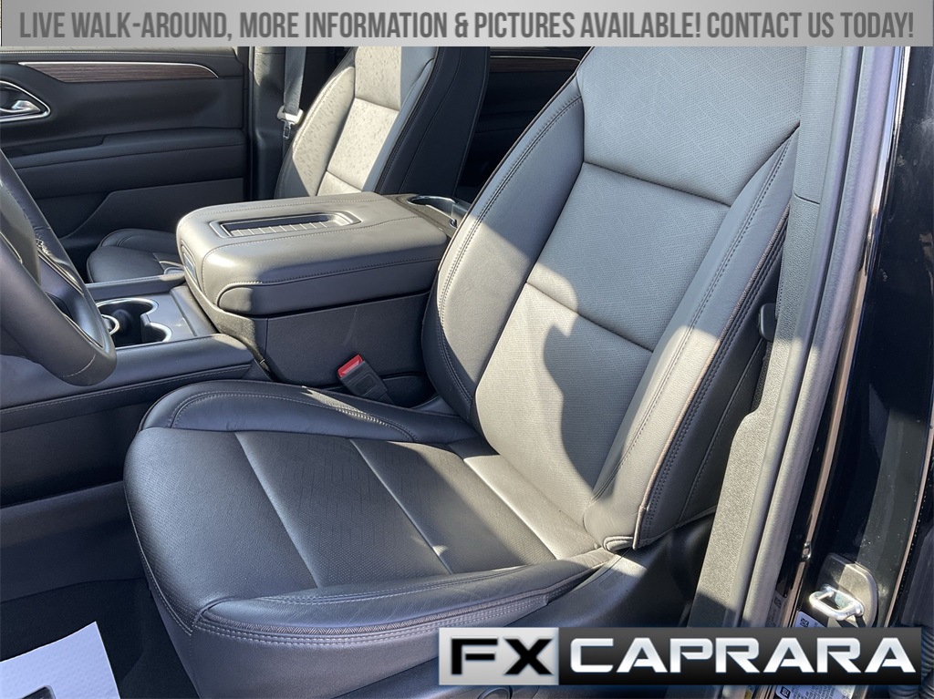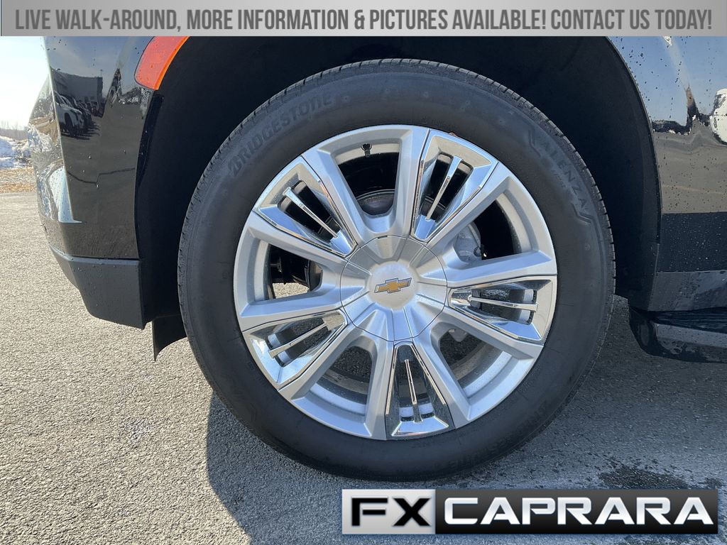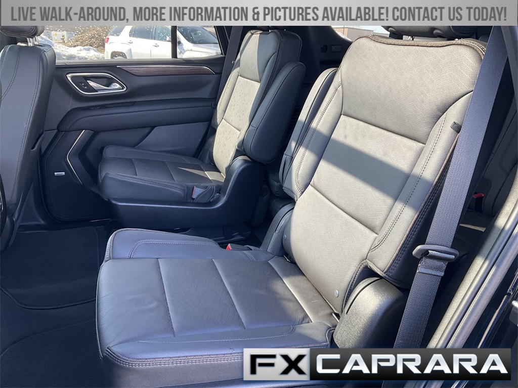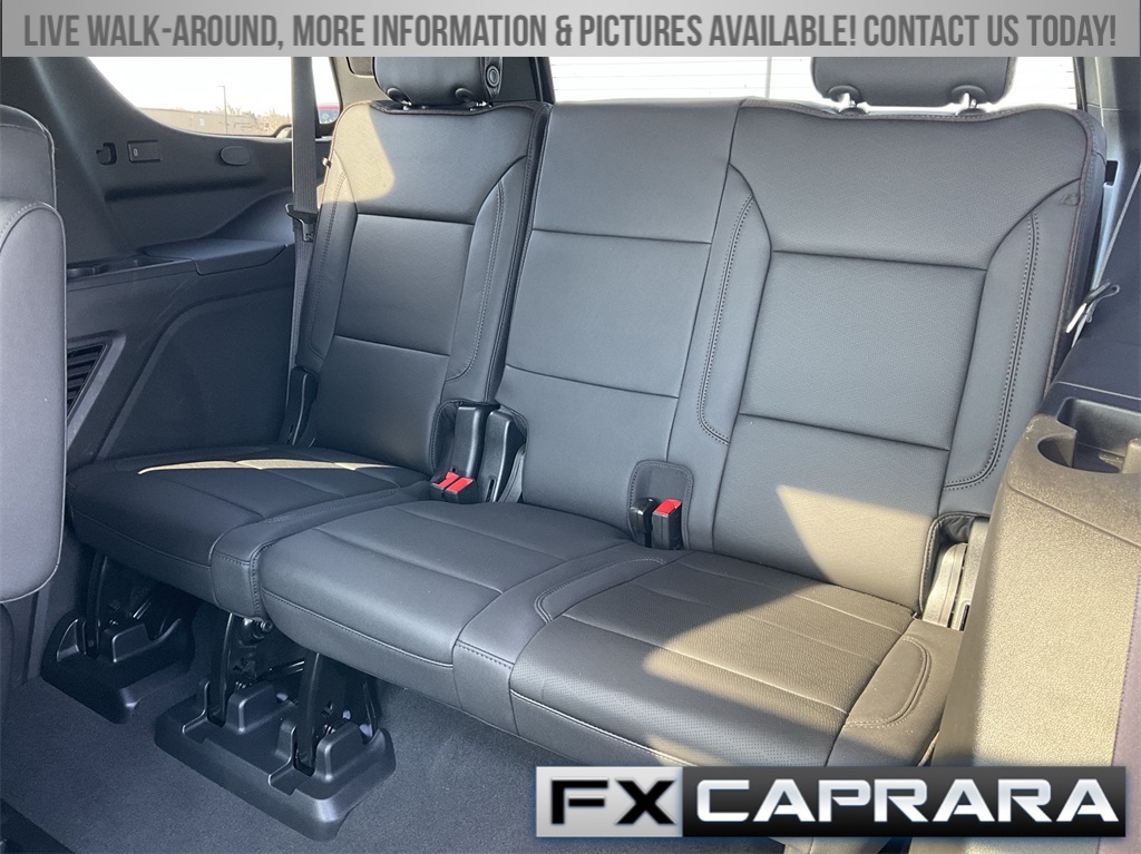 4WD, Leather, 10 Speakers, 12-Way Power Driver & Passenger Seat Adjusters, 15" Diagonal Multi-Color Head-Up Display, 1st & 2nd Row Color-Keyed Carpeted Floor Mats, 2-Speed Active Electronic AutoTrac Transfer Case, 3.23 Rear Axle Ratio, 3rd Row 60/40 Power-Folding Split-Bench Seat, 3rd row seats: split-bench, 4-Wheel Disc Brakes, ABS brakes, Adaptive Cruise Control, Adaptive suspension, Air Conditioning, Alloy wheels, AM/FM radio: SiriusXM with 360L, Apple CarPlay/Android Auto, Auto High-beam Headlights, Auto-dimming door mirrors, Auto-dimming Rear-View mirror, Auto-leveling suspension, Automatic temperature control, Bose 10-Speaker Centerpoint Surround Audio Sys Ft, Brake assist, Bright Front & Rear Door Sill Plates, Bumpers: body-color, Chrome Door Handles w/Body-Color Strip, Color-Keyed Carpeting Floor Covering, Compass, Delay-off headlights, Driver & Front Outboard Passenger Airbags, Driver & Front Passenger Heated & Ventilated Seats, Driver door bin, Driver vanity mirror, Dual Exhaust System, Dual front impact airbags, Dual front side impact airbags, Electronic Stability Control, Emergency communication system: OnStar and Chevrolet connected services capable, Enhanced Automatic Emergency Braking, Enhanced Driver Information Center, Exterior Parking Camera Rear, Floor Console, Four wheel independent suspension, Front anti-roll bar, Front Bucket Seats, Front Center Armrest, Front dual zone A/C, Front High-Back Reclining Bucket Seats, Front reading lights, Fully automatic headlights, Garage door transmitter, Hands-Free Rear Power Programmable Liftgate, HD Surround Vision, Heads-Up Display, Heated 2nd Row Outboard Seats, Heated door mirrors, Heated Driver & Front Passenger Seats, Heated front seats, Heated rear seats, Heated Steering Wheel, Heated steering wheel, Hill Descent Control, Illuminated entry, Infotainment Display, Inside Rearview Auto-Dimming Rear Camera Mirror, Lane Change Alert w/Side Blind Zone Alert, LED Daytime Running Lamps, Low tire pressure warning, Magnetic Ride Control Suspension, Memory seat, Memory Settings, Navigation System, Occupant sensing airbag, Outside Heated Power-Adjustable Mirrors, Outside temperature display, Overhead airbag, Overhead console, Panic alarm, Passenger door bin, Passenger vanity mirror, Perforated Leather Seat Trim, Power door mirrors, Power driver seat, Power Liftgate, Power passenger seat, Power Release 2nd Row Bucket Seats, Power steering, Power Tilt & Telescopic Steering Column, Power windows, Premium audio system: Chevrolet Infotainment 3 Premium, Radio: Chevrolet Infotainment 3 Premium System, Rain sensing wipers, Rear air conditioning, Rear anti-roll bar, Rear Camera Mirror Washer, Rear Cross Traffic Alert, Rear Pedestrian Alert, Rear reading lights, Rear window defroster, Rear window wiper, Remote keyless entry, Remote Start, Roof rack: xxxxxx, Safety Alert Seat, Security system, Set of 4 Wheel Locks (LPO), SiriusXM w/360L, Speed control, Speed-sensing steering, Split folding rear seat, Spoiler, Steering wheel memory, Steering wheel mounted audio controls, Tachometer, Telescoping steering wheel, Tilt steering wheel, Traction control, Trip computer, Turn signal indicator mirrors, Universal Home Remote, Variably intermittent wipers, Ventilated front seats, Voltmeter, Wheels: 22" x 9" Sterling Silver Premium Painted, Wireless Charging, Wrapped Steering Wheel, 4WD, Leather.