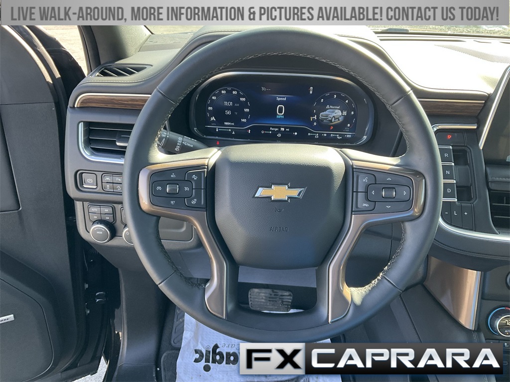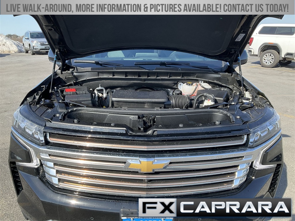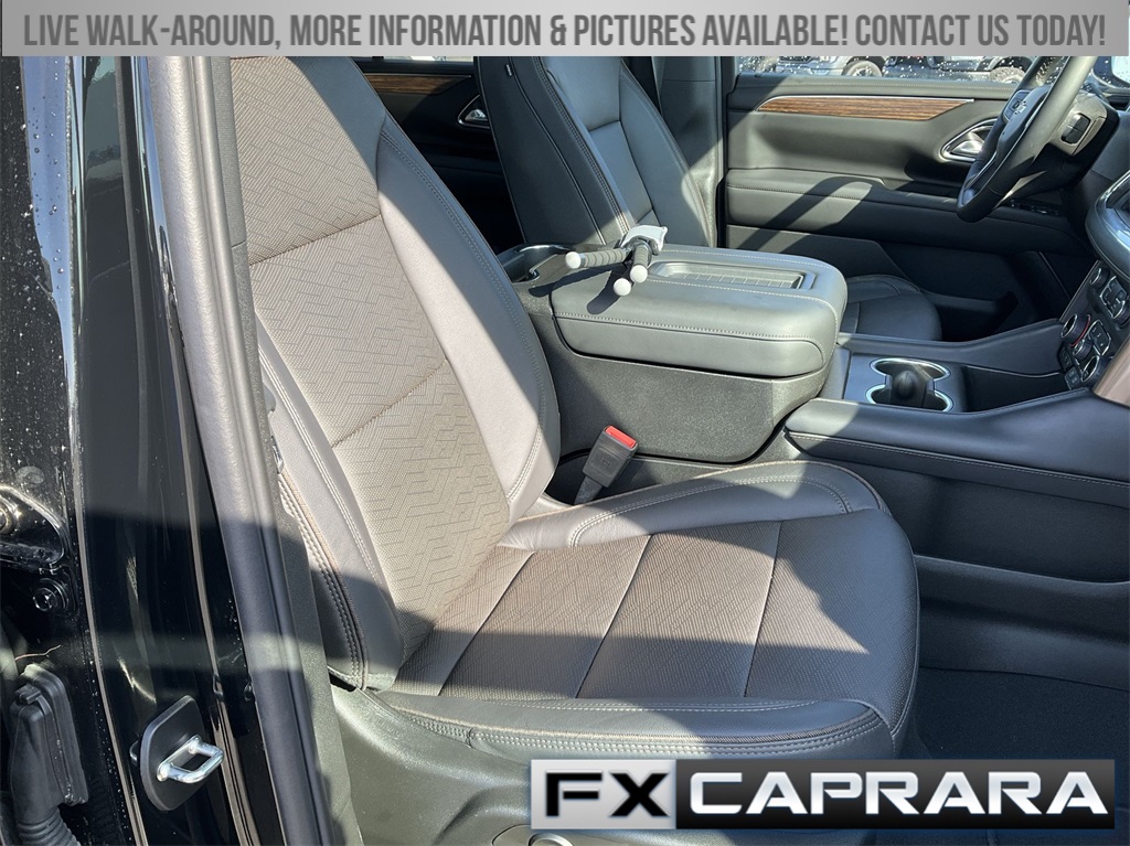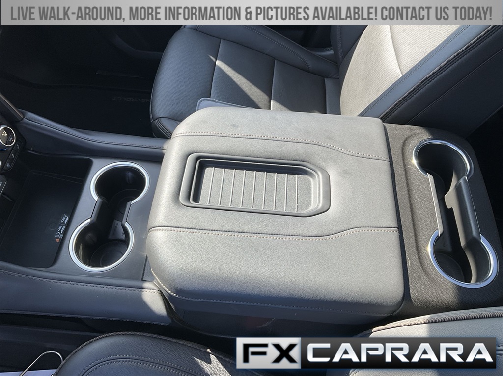 4WD, Leather, 10 Speakers, 12-Way Power Driver & Passenger Seat Adjusters, 15" Diagonal Multi-Color Head-Up Display, 1st & 2nd Row Color-Keyed Carpeted Floor Mats, 2-Speed Active Electronic AutoTrac Transfer Case, 3.23 Rear Axle Ratio, 3rd Row 60/40 Power-Folding Split-Bench Seat, 3rd row seats: split-bench, 4-Wheel Disc Brakes, ABS brakes, Adaptive Cruise Control, Adaptive suspension, Air Conditioning, Alloy wheels, AM/FM radio: SiriusXM with 360L, Apple CarPlay/Android Auto, Auto High-beam Headlights, Auto-dimming door mirrors, Auto-dimming Rear-View mirror, Auto-leveling suspension, Automatic temperature control, Bose 10-Speaker Centerpoint Surround Audio Sys Ft, Brake assist, Bright Front & Rear Door Sill Plates, Bumpers: body-color, Chrome Door Handles w/Body-Color Strip, Color-Keyed Carpeting Floor Covering, Compass, Delay-off headlights, Driver & Front Outboard Passenger Airbags, Driver & Front Passenger Heated & Ventilated Seats, Driver door bin, Driver vanity mirror, Dual Exhaust System, Dual front impact airbags, Dual front side impact airbags, Electronic Stability Control, Emergency communication system: OnStar and Chevrolet connected services capable, Enhanced Automatic Emergency Braking, Enhanced Driver Information Center, Exterior Parking Camera Rear, Floor Console, Four wheel independent suspension, Front anti-roll bar, Front Bucket Seats, Front Center Armrest, Front dual zone A/C, Front High-Back Reclining Bucket Seats, Front reading lights, Fully automatic headlights, Garage door transmitter, Hands-Free Rear Power Programmable Liftgate, HD Surround Vision, Heads-Up Display, Heated 2nd Row Outboard Seats, Heated door mirrors, Heated Driver & Front Passenger Seats, Heated front seats, Heated rear seats, Heated Steering Wheel, Heated steering wheel, Hill Descent Control, Illuminated entry, Infotainment Display, Inside Rearview Auto-Dimming Rear Camera Mirror, Lane Change Alert w/Side Blind Zone Alert, LED Daytime Running Lamps, Low tire pressure warning, Magnetic Ride Control Suspension, Memory seat, Memory Settings, Navigation System, Occupant sensing airbag, Outside Heated Power-Adjustable Mirrors, Outside temperature display, Overhead airbag, Overhead console, Panic alarm, Passenger door bin, Passenger vanity mirror, Perforated Leather Seat Trim, Power door mirrors, Power driver seat, Power Liftgate, Power passenger seat, Power Release 2nd Row Bucket Seats, Power steering, Power Tilt & Telescopic Steering Column, Power windows, Premium audio system: Chevrolet Infotainment 3 Premium, Radio: Chevrolet Infotainment 3 Premium System, Rain sensing wipers, Rear air conditioning, Rear anti-roll bar, Rear Camera Mirror Washer, Rear Cross Traffic Alert, Rear Pedestrian Alert, Rear reading lights, Rear window defroster, Rear window wiper, Remote keyless entry, Remote Start, Roof rack: xxxxxx, Safety Alert Seat, Security system, Set of 4 Wheel Locks (LPO), SiriusXM w/360L, Speed control, Speed-sensing steering, Split folding rear seat, Spoiler, Steering wheel memory, Steering wheel mounted audio controls, Tachometer, Telescoping steering wheel, Tilt steering wheel, Traction control, Trip computer, Turn signal indicator mirrors, Universal Home Remote, Variably intermittent wipers, Ventilated front seats, Voltmeter, Wheels: 22" x 9" Sterling Silver Premium Painted, Wireless Charging, Wrapped Steering Wheel, 4WD, Leather.