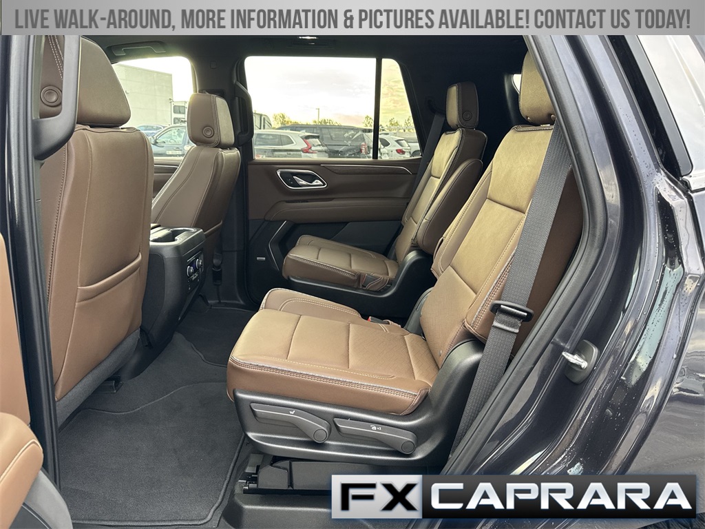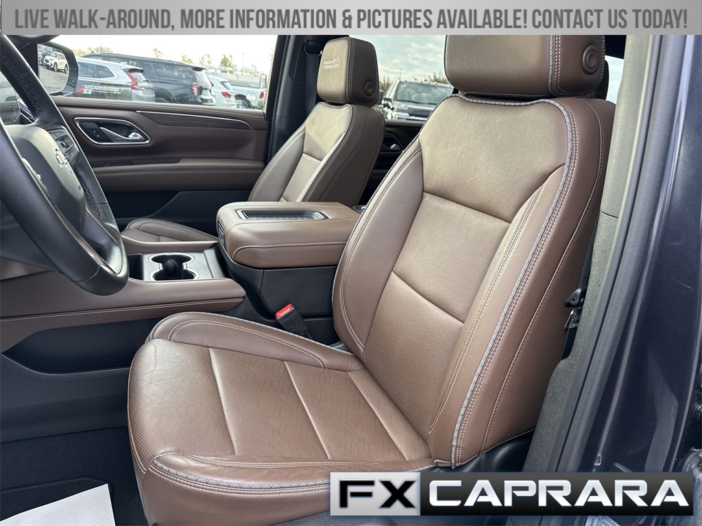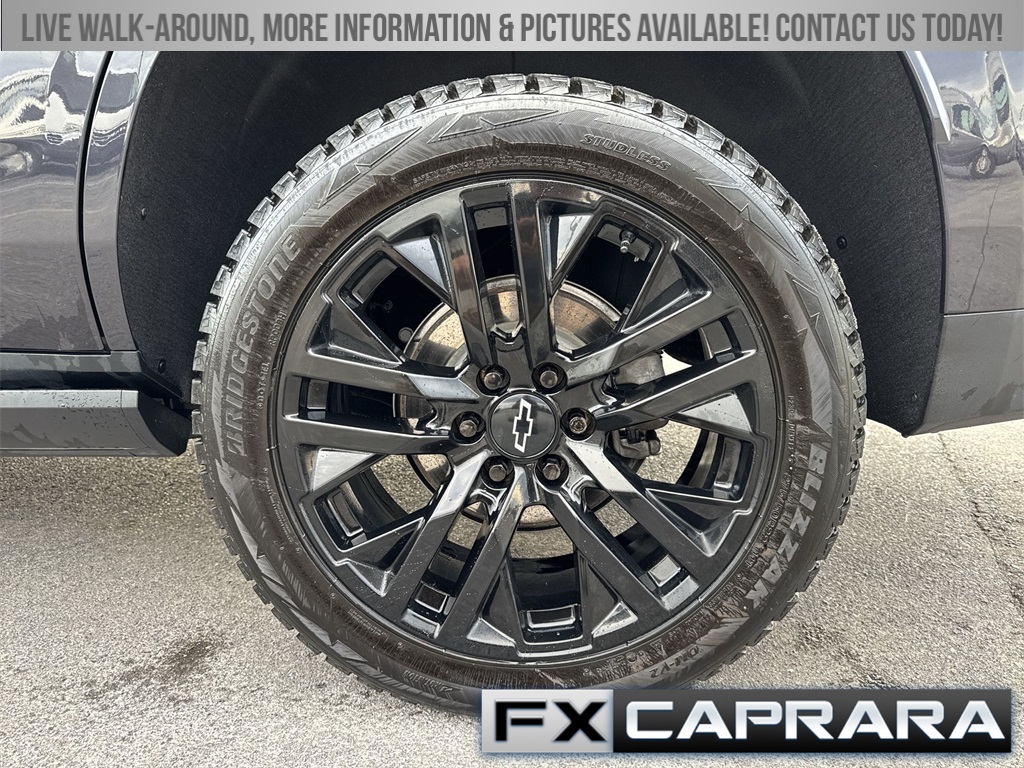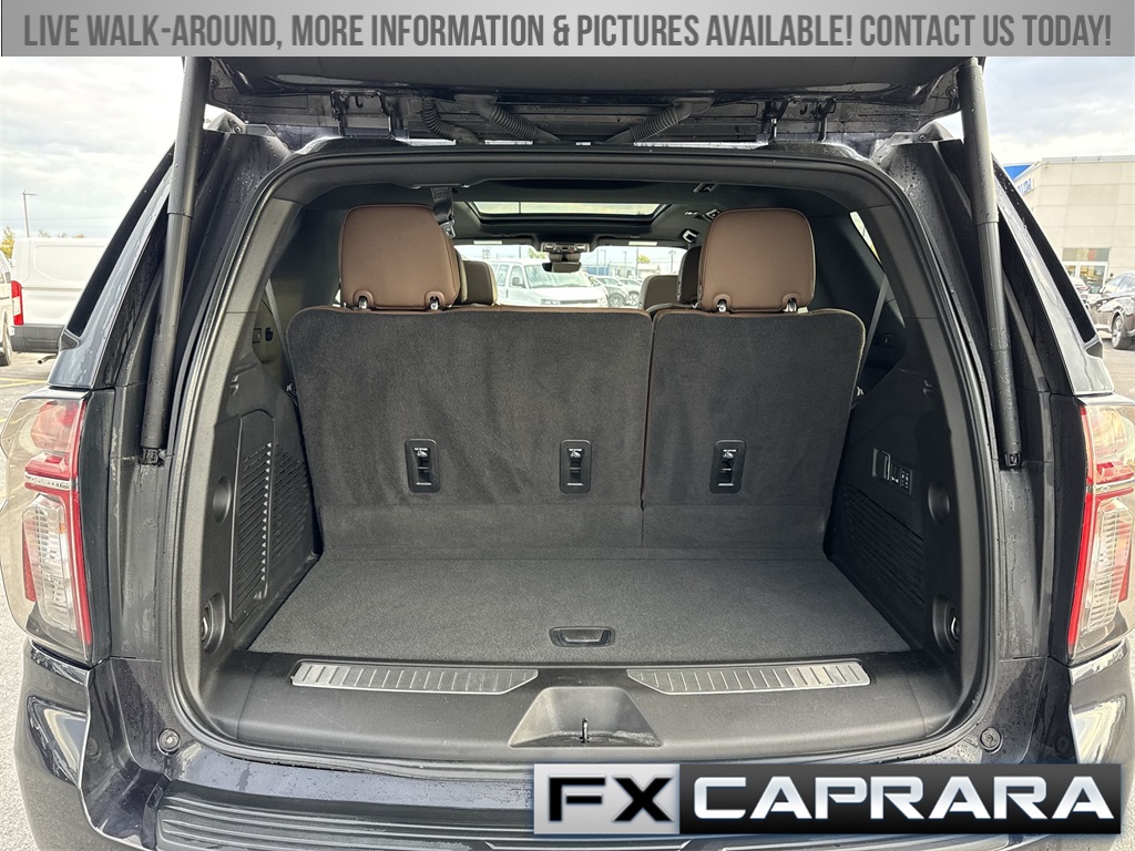 4WD, Leather, 10 Speakers, 12-Way Power Driver & Passenger Seat Adjusters, 15" Diagonal Multi-Color Head-Up Display, 1st & 2nd Row Color-Keyed Carpeted Floor Mats, 2-Speed Active Electronic AutoTrac Transfer Case, 3.23 Rear Axle Ratio, 3rd Row 60/40 Power-Folding Split-Bench Seat, 3rd row seats: split-bench, 4-Wheel Disc Brakes, ABS brakes, Adaptive Cruise Control, Adaptive suspension, Air Conditioning, Alloy wheels, AM/FM radio: SiriusXM with 360L, Apple CarPlay/Android Auto, Auto High-beam Headlights, Auto-dimming door mirrors, Auto-dimming Rear-View mirror, Auto-leveling suspension, Automatic temperature control, Bose 10-Speaker Centerpoint Surround Audio Sys Ft, Brake assist, Bright Front & Rear Door Sill Plates, Bumpers: body-color, Chrome Door Handles w/Body-Color Strip, Color-Keyed Carpeting Floor Covering, Compass, Delay-off headlights, Driver & Front Outboard Passenger Airbags, Driver & Front Passenger Heated & Ventilated Seats, Driver door bin, Driver vanity mirror, Dual Exhaust System, Dual front impact airbags, Dual front side impact airbags, Electronic Stability Control, Emergency communication system: OnStar and Chevrolet connected services capable, Enhanced Automatic Emergency Braking, Enhanced Driver Information Center, Exterior Parking Camera Rear, Floor Console, Four wheel independent suspension, Front anti-roll bar, Front Bucket Seats, Front Center Armrest, Front dual zone A/C, Front High-Back Reclining Bucket Seats, Front reading lights, Fully automatic headlights, Garage door transmitter, Hands-Free Rear Power Programmable Liftgate, HD Surround Vision, Heads-Up Display, Heated 2nd Row Outboard Seats, Heated door mirrors, Heated Driver & Front Passenger Seats, Heated front seats, Heated rear seats, Heated Steering Wheel, Heated steering wheel, Hill Descent Control, Illuminated entry, Infotainment Display, Inside Rearview Auto-Dimming Rear Camera Mirror, Lane Change Alert w/Side Blind Zone Alert, LED Daytime Running Lamps, Low tire pressure warning, Magnetic Ride Control Suspension, Memory seat, Memory Settings, Navigation System, Occupant sensing airbag, Outside Heated Power-Adjustable Mirrors, Outside temperature display, Overhead airbag, Overhead console, Panic alarm, Passenger door bin, Passenger vanity mirror, Perforated Leather Seat Trim, Power door mirrors, Power driver seat, Power Liftgate, Power passenger seat, Power Release 2nd Row Bucket Seats, Power steering, Power Tilt & Telescopic Steering Column, Power windows, Premium audio system: Chevrolet Infotainment 3 Premium, Radio: Chevrolet Infotainment 3 Premium System, Rain sensing wipers, Rear air conditioning, Rear anti-roll bar, Rear Camera Mirror Washer, Rear Cross Traffic Alert, Rear Pedestrian Alert, Rear reading lights, Rear window defroster, Rear window wiper, Remote keyless entry, Remote Start, Roof rack: xxxxxx, Safety Alert Seat, Security system, Set of 4 Wheel Locks (LPO), SiriusXM w/360L, Speed control, Speed-sensing steering, Split folding rear seat, Spoiler, Steering wheel memory, Steering wheel mounted audio controls, Tachometer, Telescoping steering wheel, Tilt steering wheel, Traction control, Trip computer, Turn signal indicator mirrors, Universal Home Remote, Variably intermittent wipers, Ventilated front seats, Voltmeter, Wheels: 22" x 9" Sterling Silver Premium Painted, Wireless Charging, Wrapped Steering Wheel, 4WD, Leather.