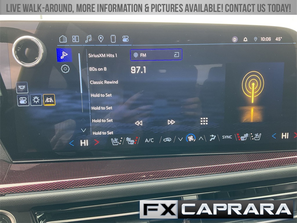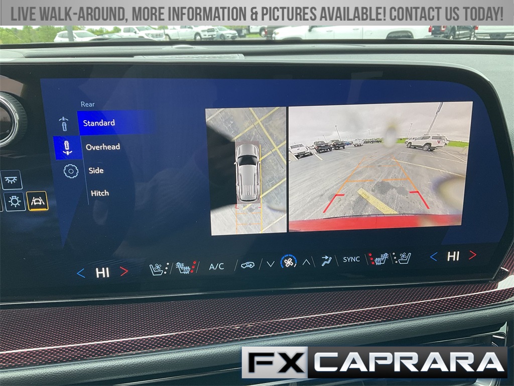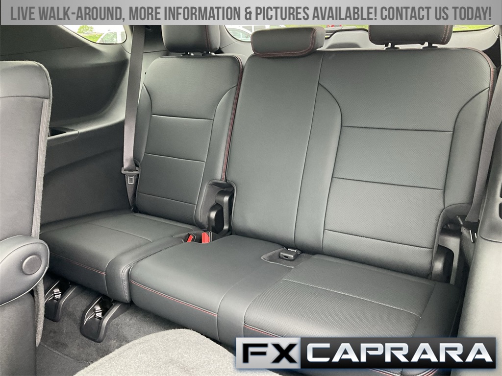 AWD, 10 Speakers, 3rd row seats: split-bench, 4-Wheel Disc Brakes, 6-Way Power Front Passenger Seat Adjuster, 8-Way Power Driver Seat Adjuster, ABS brakes, Air Conditioning, Alloy wheels, AM/FM radio: SiriusXM with 360L, Apple CarPlay/Android Auto, Auto High-beam Headlights, Auto-dimming door mirrors, Automatic temperature control, Bose Premium 10-Speaker Audio System Feature, Brake assist, Bumpers: body-color, Compass, Delay-off headlights, Driver 4-Way Power Lumbar Seat Adjuster, Driver door bin, Driver vanity mirror, Dual front impact airbags, Dual front side impact airbags, Electronic Stability Control, Emergency communication system, Exterior Parking Camera Rear, Four wheel independent suspension, Front anti-roll bar, Front Bucket Seats, Front Center Armrest, Front dual zone A/C, Front Passenger 4-Way Power Lumbar Seat Adjuster, Front reading lights, Fully automatic headlights, Heated door mirrors, Heated front seats, Heated rear seats, Heated steering wheel, Illuminated entry, Low tire pressure warning, Navigation System, Occupant sensing airbag, Outside temperature display, Overhead airbag, Overhead console, Panic alarm, Passenger door bin, Passenger vanity mirror, Perforated Leather-Appointed Seat Trim, Power door mirrors, Power driver seat, Power Liftgate, Power moonroof, Power passenger seat, Power steering, Power windows, Radio data system, Radio: 17.7" Diagonal Display, Rain sensing wipers, Rear air conditioning, Rear anti-roll bar, Rear reading lights, Rear window defroster, Rear window wiper, Remote keyless entry, Security system, SiriusXM w/360L, Speed control, Speed-sensing steering, Spoiler, Sport steering wheel, Steering wheel mounted audio controls, Tachometer, TBD Axle Ratio, Telescoping steering wheel, Tilt steering wheel, Traction control, Trip computer, Turn signal indicator mirrors, Variably intermittent wipers, Ventilated front seats, Voltmeter, Wheels: 22" High Gloss Black Painted Aluminum, AWD.