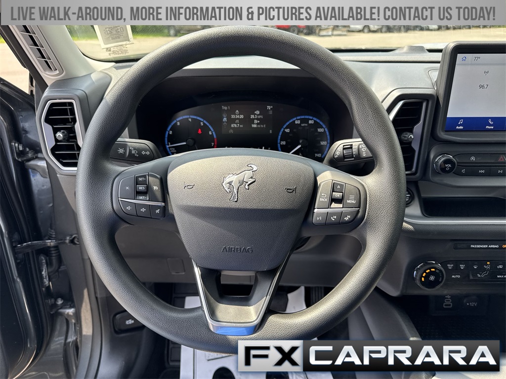 Bronco Sport Big Bend, 4D Sport Utility, 8-Speed Automatic, 4WD, Carbonized Gray Metallic, Brake assist, Electronic Stability Control, Equipment Group 200A, Front License Plate Bracket, Heated door mirrors, Power door mirrors, 3.80 Axle Ratio, 4-Wheel Disc Brakes, 6 Speakers, ABS brakes, Air Conditioning, Alloy wheels, AM/FM radio: SiriusXM, AM/FM Stereo, Auto High-beam Headlights, Automatic temperature control, Compass, Delay-off headlights, Driver door bin, Driver vanity mirror, Dual front impact airbags, Dual front side impact airbags, Emergency communication system: SYNC 3 911 Assist, Four wheel independent suspension, Front anti-roll bar, Front Bucket Seats, Front Center Armrest, Front reading lights, Fully automatic headlights, Illuminated entry, Knee airbag, Low tire pressure warning, Occupant sensing airbag, Outside temperature display, Overhead airbag, Overhead console, Panic alarm, Passenger door bin, Passenger vanity mirror, Power steering, Power windows, Radio data system, Rear anti-roll bar, Rear reading lights, Rear seat center armrest, Rear window defroster, Rear window wiper, Remote keyless entry, Security system, SiriusXM, Speed control, Speed-sensing steering, Speed-Sensitive Wipers, Split folding rear seat, Steering wheel mounted audio controls, SYNC 3 Communications & Entertainment System, Tachometer, Telescoping steering wheel, Tilt steering wheel, Traction control, Trip computer, Unique Cloth Front Bucket Seats, Variably intermittent wipers, Wheels: 17" Carbonized Gray-Painted Aluminum, Bronco Sport Big Bend, 4D Sport Utility, 8-Speed Automatic, 4WD, Carbonized Gray Metallic, Brake assist, Electronic Stability Control, Equipment Group 200A, Front License Plate Bracket, Heated door mirrors, Power door mirrors.