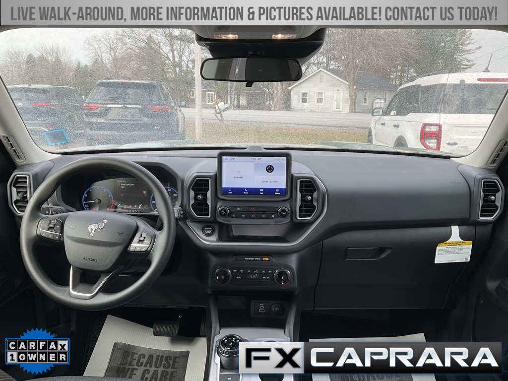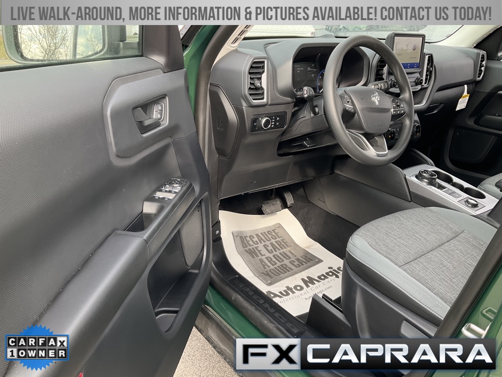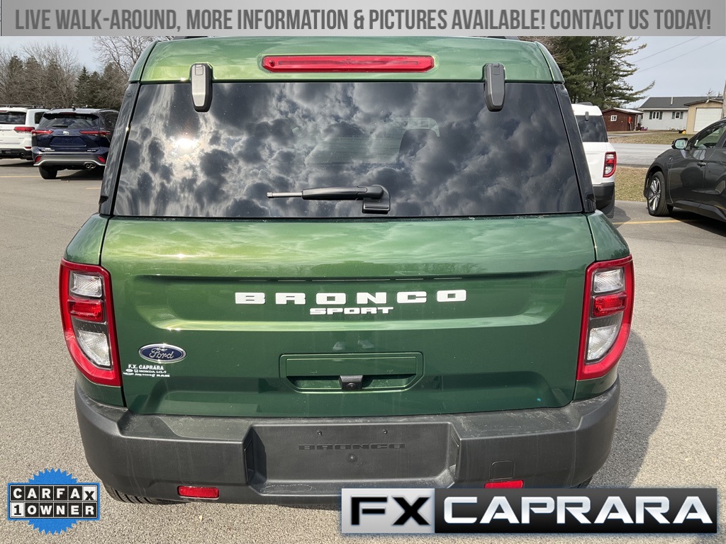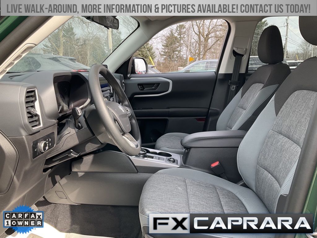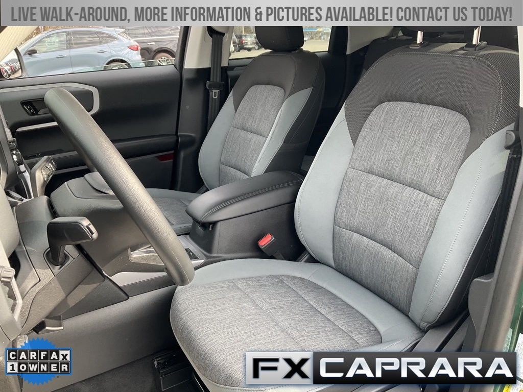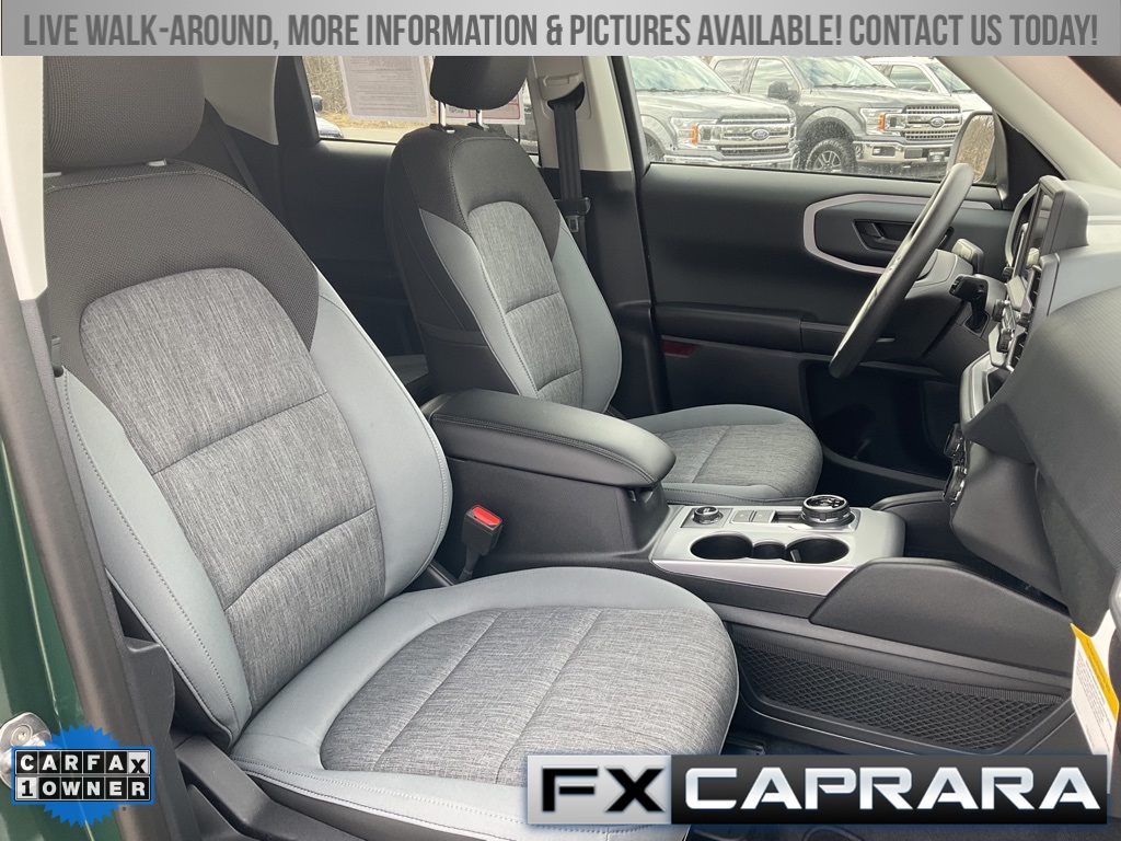 Bronco Sport Big Bend, 4D Sport Utility, 1.5L EcoBoost, 4WD, Eruption Green Metallic, Medium Dark Slate Cloth, Equipment Group 200A, Heated door mirrors, 3.80 Axle Ratio, 4-Wheel Disc Brakes, 6 Speakers, ABS brakes, Air Conditioning, Alloy wheels, AM/FM radio: SiriusXM, AM/FM Stereo, Auto High-beam Headlights, Automatic temperature control, Brake assist, Compass, Delay-off headlights, Driver door bin, Driver vanity mirror, Dual front impact airbags, Dual front side impact airbags, Electronic Stability Control, Emergency communication system: SYNC 3 911 Assist, Four wheel independent suspension, Front anti-roll bar, Front Bucket Seats, Front Center Armrest, Front License Plate Bracket, Front reading lights, Fully automatic headlights, Illuminated entry, Knee airbag, Low tire pressure warning, Occupant sensing airbag, Outside temperature display, Overhead airbag, Overhead console, Panic alarm, Passenger door bin, Passenger vanity mirror, Power door mirrors, Power steering, Power windows, Radio data system, Rear anti-roll bar, Rear reading lights, Rear seat center armrest, Rear window defroster, Rear window wiper, Remote keyless entry, Security system, SiriusXM, Speed control, Speed-sensing steering, Speed-Sensitive Wipers, Split folding rear seat, Steering wheel mounted audio controls, SYNC 3 Communications & Entertainment System, Tachometer, Telescoping steering wheel, Tilt steering wheel, Traction control, Trip computer, Unique Cloth Front Bucket Seats, Variably intermittent wipers, Wheels: 17" Carbonized Gray-Painted Aluminum, Bronco Sport Big Bend, 4D Sport Utility, 1.5L EcoBoost, 4WD, Eruption Green Metallic, Medium Dark Slate Cloth, Equipment Group 200A, Heated door mirrors.
