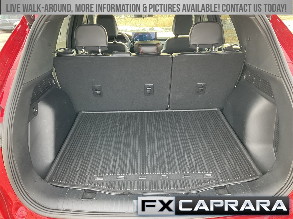 AWD, 2.91 Axle Ratio, 4-Wheel Disc Brakes, 6 Speakers, ABS brakes, Air Conditioning, Alloy wheels, AM/FM radio: SiriusXM, AM/FM Stereo, Auto High-beam Headlights, Automatic temperature control, Brake assist, Bumpers: body-color, Compass, Delay-off headlights, Driver door bin, Driver vanity mirror, Dual front impact airbags, Dual front side impact airbags, Electronic Fuel Door Release, Electronic Stability Control, Emergency communication system: SYNC 4 911 Assist, Exterior Parking Camera Rear, FordPass Connect, Four wheel independent suspension, Front anti-roll bar, Front Bucket Seats, Front Center Armrest, Front dual zone A/C, Front fog lights, Front reading lights, Fully automatic headlights, Heated door mirrors, Heated front seats, Heated steering wheel, Heated Vinyl/Cloth Front Sport Contour Bucket Seats, Illuminated entry, Knee airbag, Low tire pressure warning, Neutral Towing Capability, Occupant sensing airbag, Outside temperature display, Overhead airbag, Overhead console, Panic alarm, Passenger door bin, Passenger vanity mirror, Pedestrian Alert Sounder, Power door mirrors, Power driver seat, Power Liftgate, Power steering, Power windows, Radio data system, Rear anti-roll bar, Rear reading lights, Rear seat center armrest, Rear window defroster, Rear window wiper, Remote keyless entry, Roof rack: rails only, Speed control, Speed-sensing steering, Speed-Sensitive Wipers, Split folding rear seat, Spoiler, Sport steering wheel, Steering wheel mounted audio controls, SYNC 4, Tachometer, Telescoping steering wheel, Tilt steering wheel, Traction control, Trip computer, Variably intermittent wipers, Wheels: 18" Rock Metallic Painted Aluminum, AWD.