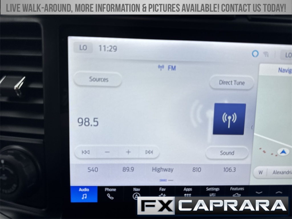 4WD, 3.31 Axle Ratio, 4-Wheel Disc Brakes, 6 Speakers, ABS brakes, Air Conditioning, Alloy wheels, AM/FM radio: SiriusXM with 360L, Auto High-beam Headlights, Auto-dimming Rear-View mirror, Automatic temperature control, Brake assist, Bumpers: chrome, Chrome wheels, Cloth 40/20/40 Front Seat, Compass, Delay-off headlights, Driver door bin, Driver vanity mirror, Dual front impact airbags, Dual front side impact airbags, Electronic Stability Control, Emergency communication system: SYNC 4 911 Assist, Front anti-roll bar, Front Center Armrest w/Storage, Front dual zone A/C, Front fog lights, Front reading lights, Front wheel independent suspension, Fully automatic headlights, Heated door mirrors, Illuminated entry, Low tire pressure warning, Navigation system: Connected Navigation, Occupant sensing airbag, Outside temperature display, Overhead airbag, Overhead console, Panic alarm, Passenger door bin, Passenger vanity mirror, Power door mirrors, Power driver seat, Power steering, Power windows, Radio data system, Radio: AM/FM SiriusXM w/360L, Rear reading lights, Rear step bumper, Rear window defroster, Remote keyless entry, Security system, Speed control, Split folding rear seat, Steering wheel mounted audio controls, SYNC 4 w/Enhanced Voice Recognition, Tachometer, Telescoping steering wheel, Tilt steering wheel, Traction control, Trip computer, Variably intermittent wipers, Voltmeter, Wheels: 18" Chrome-Like PVD, 4WD.