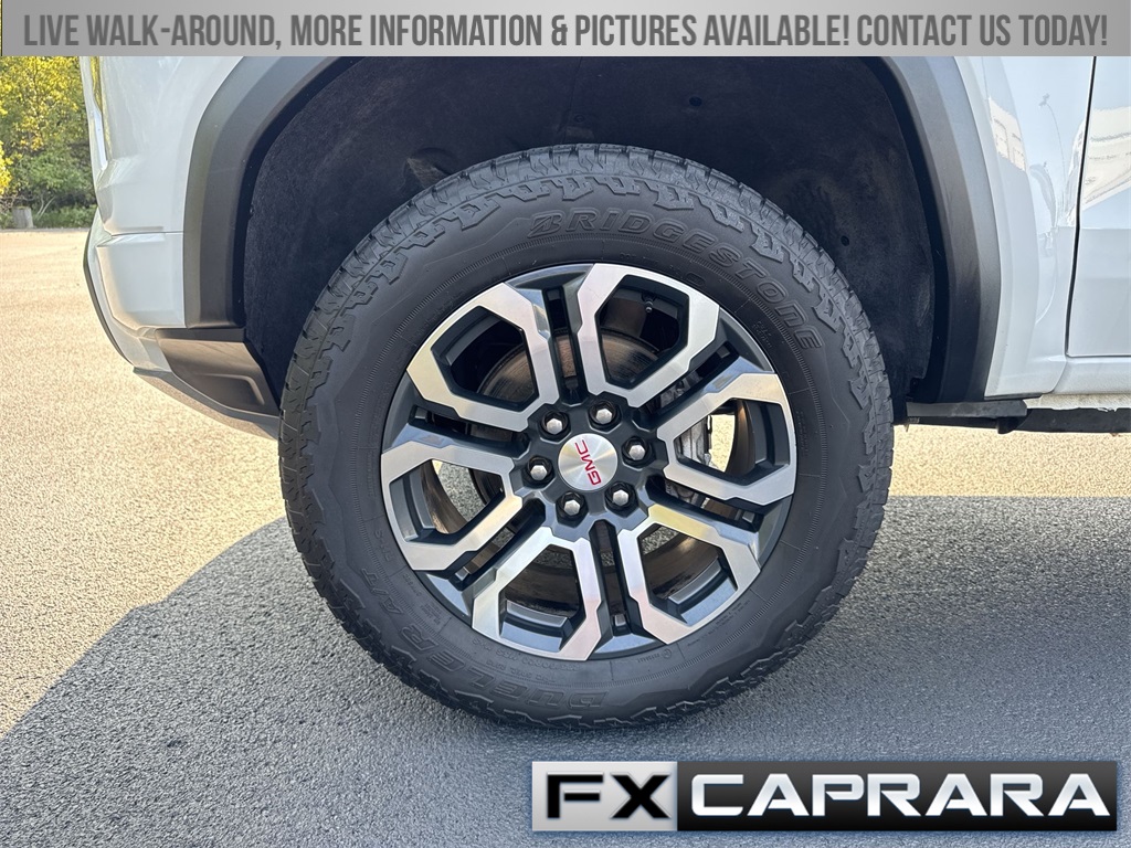 4WD, 120-Volt Bed Mounted Power Outlet, 2 1st Row USB Charge/Data Ports, 2 Rear USB Ports in Center Console (Charge-Only), 3.42 Rear Axle Ratio, 4-Way Manual Front Passenger Seat Adjuster, 4-Wheel Disc Brakes, 6 Speakers, 6-Speaker Audio System Feature, 8-Way Power Driver Seat Adjuster, ABS brakes, Air Conditioning, Alloy wheels, AM/FM radio, Apple CarPlay/Android Auto, Auto High-beam Headlights, Auto-dimming Rear-View mirror, Automatic Emergency Braking, Automatic Locking Rear Differential, Automatic Stop/Start, Automatic temperature control, Brake assist, Bumpers: body-color, Canyon Pro Safety, Cloth/CoreTec Seat Trim, Compass, Delay-off headlights, Driver & Front Passenger Illuminated Visors, Driver door bin, Driver Mode Selector, Driver vanity mirror, Dual front impact airbags, Dual front side impact airbags, Dual-Zone Automatic Air Conditioning, Electronic Stability Control, EZ-Lift & Lower Tailgate, Following Distance Indicator, Forward Collision Alert, Front anti-roll bar, Front Bucket Seats, Front Center Armrest, Front dual zone A/C, Front fog lights, Front LED Fog Lamps, Front Passenger Seatback Map Pocket, Front Pedestrian & Bicyclist Braking, Front reading lights, Front wheel independent suspension, Heated door mirrors, Heated Driver & Front Passenger Seats, Heated front seats, Heated Power-Adjustable Outside Mirrors, Illuminated entry, Inside Rear-View Auto-Dimming Mirror, IntelliBeam Automatic High Beam On/Off, Interior Overhead Courtesy Light w/Dual Reading Lamp, Lane Keep Assist w/Lane Departure Warning, Low tire pressure warning, Manual Rear-Sliding Window, MultiStow Tailgate, Navigation System, Occupant sensing airbag, Outside temperature display, Overhead airbag, Overhead console, Panic alarm, Passenger door bin, Passenger vanity mirror, Power door mirrors, Power Driver Lumbar Control Seat Adjuster, Power driver seat, Power steering, Power windows, Radio data system, Radio: 11.3" Diagonal Premium GMC Infotainment Sys, Rear of Console 120-Volt Power Outlet, Rear reading lights, Rear step bumper, Rear window defroster, Rear-Window Electric Defogger, Remote keyless entry, Remote Vehicle Starter System, Security system, SiriusXM w/360L, Speed control, Speed-sensing steering, Split folding rear seat, Steering wheel mounted audio controls, Stop/Start System Disable Button Engine Control, Tachometer, Tailgate Keyed Cylinder Lock, Telescoping steering wheel, Tilt & Telescopic Manual Steering Column, Tilt steering wheel, Traction control, Trip computer, Variably intermittent wipers, Wheels: 18" x 8.5" Dark Gray Machined Finish Alum, Wireless Apple CarPlay/Wireless Android Auto, 4WD.