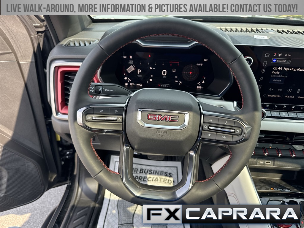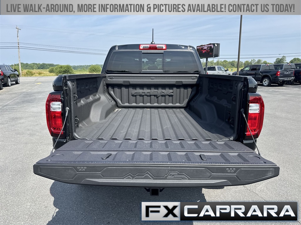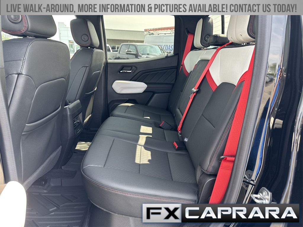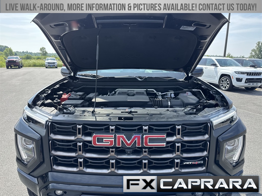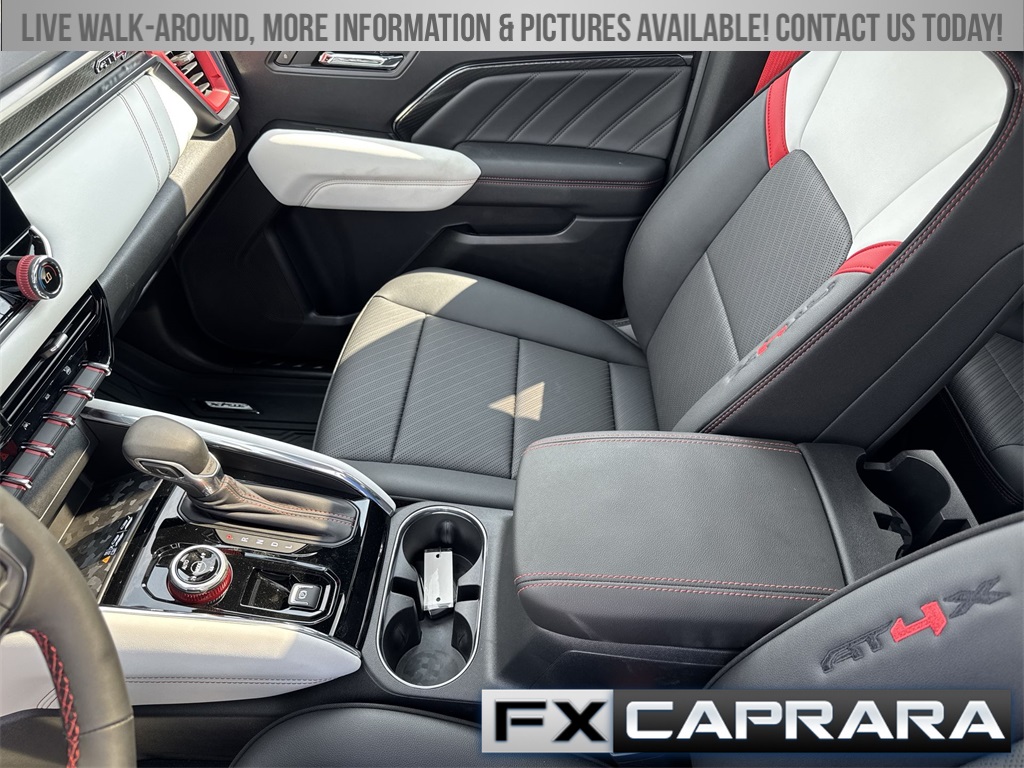 4WD, 120-Volt Bed Mounted Power Outlet, 2 1st Row USB Charge/Data Ports, 2 Rear USB Ports in Center Console (Charge-Only), 220 Amps Alternator, 3.42 Rear Axle Ratio, 4-Wheel Disc Brakes, 6-Way Power Passenger Seat Adjuster, 7 Speakers, 8-Way Power Driver Seat Adjuster, ABS brakes, Adaptive Cruise Control, Air Conditioning, Alloy wheels, AM/FM radio, Apple CarPlay/Android Auto, Auto High-beam Headlights, Auto-dimming Rear-View mirror, Automatic Emergency Braking, Automatic Stop/Start, Automatic temperature control, Brake assist, Bumpers: body-color, Canyon Pro Safety, Compass, Delay-off headlights, Driver & Front Passenger Illuminated Visors, Driver & Front Passenger Ventilated Seats, Driver door bin, Driver Memory, Driver Mode Selector, Driver Seatback Map Pocket, Driver vanity mirror, Driver-Selectable Full-Locking Front Differential, Driver-Selectable Full-Locking Rear Differential, Dual front impact airbags, Dual front side impact airbags, Dual-Zone Automatic Air Conditioning, Electronic Stability Control, EZ-Lift & Lower Tailgate, Following Distance Indicator, Forward Collision Alert, Front anti-roll bar, Front Bucket Seats, Front Center Armrest, Front dual zone A/C, Front fog lights, Front LED Fog Lamps, Front Passenger Seatback Map Pocket, Front Pedestrian & Bicyclist Braking, Front reading lights, Front wheel independent suspension, HD Surround Vision, Heads-Up Display, Heated door mirrors, Heated Driver & Front Passenger Seats, Heated front seats, Heated Power-Adjustable Outside Mirrors, Heated Steering Wheel, Heated steering wheel, Illuminated entry, Inside Rear-View Auto-Dimming Mirror, Integrated Trailer Brake Controller, IntelliBeam Automatic High Beam On/Off, Interior Overhead Courtesy Light w/Dual Reading Lamp, Lane Keep Assist w/Lane Departure Warning, Low tire pressure warning, Manual Rear-Sliding Window, Memory seat, Multicolor 6.3" Diagonal Head-Up Display, MultiStow Tailgate, Navigation system: OnStar, Occupant sensing airbag, Outside temperature display, Overhead airbag, Overhead console, Panic alarm, Passenger door bin, Passenger vanity mirror, Perforated Leather-Appointed Seat Trim, Power door mirrors, Power Driver Lumbar Control Seat Adjuster, Power driver seat, Power Inner Sliding Glass Sunroof w/Manual Shade, Power Passenger Lumbar Control Seat Adjuster, Power passenger seat, Power steering, Power windows, Preferred Equipment Group 4TX, Premium 7-Speaker Bose Sound System, Radio data system, Radio: 11.3" Diagonal Premium GMC Infotainment Sys, Rear Center Fold-Down Armrest w/2 Cupholders, Rear Cross Traffic Braking, Rear of Console 120-Volt Power Outlet, Rear Pedestrian Alert, Rear reading lights, Rear seat center armrest, Rear step bumper, Rear window defroster, Rear-Window Electric Defogger, Red Seat Belt Color, Remote keyless entry, Remote Vehicle Starter System, Removable Front & Rear Off-Road Assist Steps (LPO), Safety Alert Seat, Security system, SiriusXM w/360L, Speed control, Speed-sensing steering, Split folding rear seat, Spray-On Bedliner, Steering wheel mounted audio controls, Stop/Start System Disable Button Engine Control, Tachometer, Tailgate Keyed Cylinder Lock, Telescoping steering wheel, Tilt & Telescopic Manual Steering Column, Tilt steering wheel, Traction control, Trailering App System, Trailering Package, Trip computer, Ultrasonic Rear Park Assist, Variably intermittent wipers, Ventilated front seats, Wheels: 17
