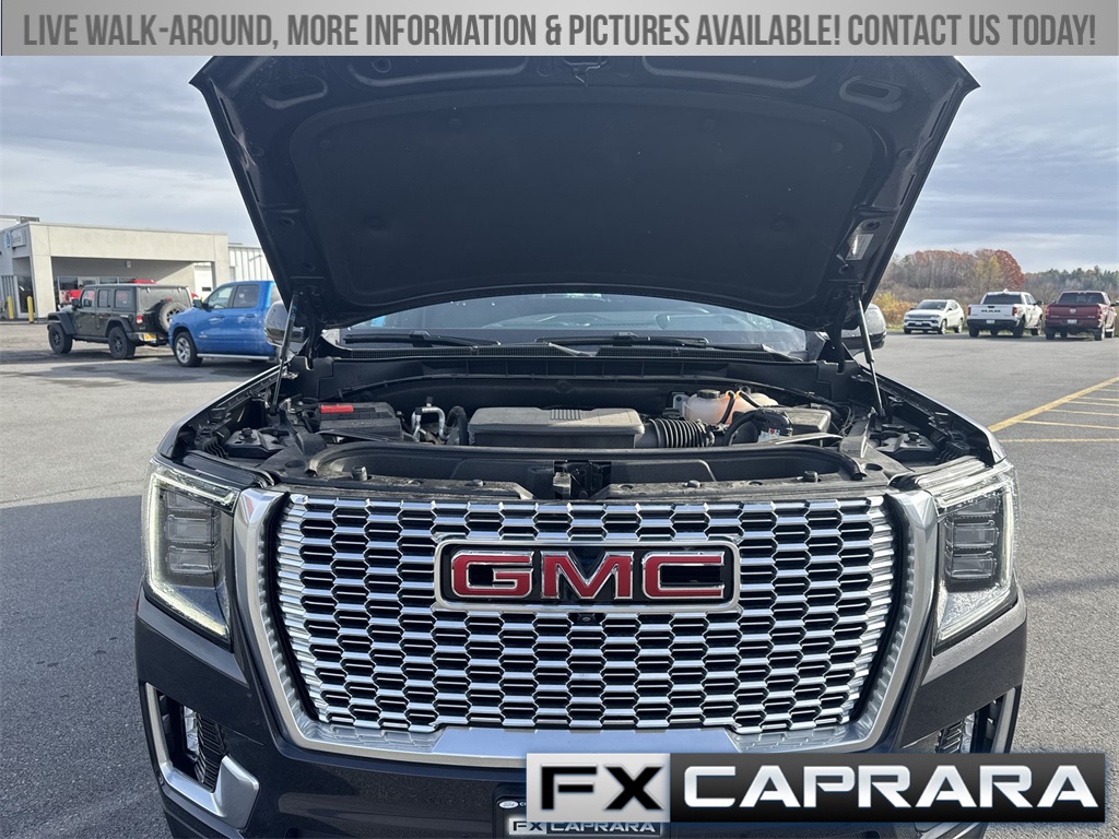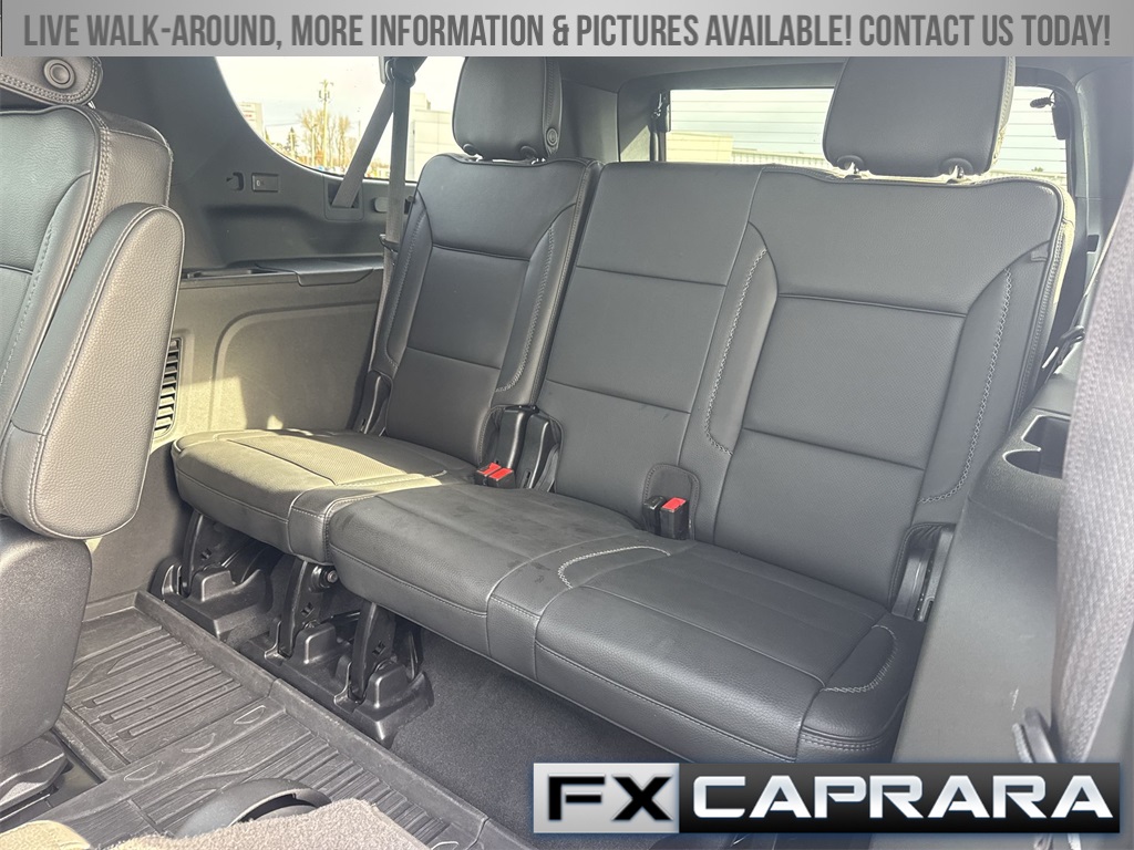 4WD, 15" Diagonal Multi-Color Head-Up Display, 2 Presets For Outside Rearview Mirrors, 3.23 Rear Axle Ratio, 3rd Row 60/40 Power-Folding Split-Bench Seat, 3rd row seats: split-bench, 4-Wheel Disc Brakes, ABS brakes, Adaptive Cruise Control, Adaptive suspension, Advanced Security Package, Advanced Technology Package, Air Conditioning, Air Ride Adaptive Suspension, Alloy wheels, AM/FM radio: SiriusXM with 360L, AM/FM Stereo, Apple CarPlay/Android Auto, Auto High-beam Headlights, Auto-dimming door mirrors, Auto-dimming Rear-View mirror, Auto-leveling suspension, Automatic temperature control, Bodyside moldings, Brake assist, Bright Front & Rear Door Sill Plates, Bumpers: body-color, Chrome Door Handles w/Body-Color Strip, Compass, Delay-off headlights, Driver door bin, Driver vanity mirror, Dual Exhaust System, Dual front impact airbags, Dual front side impact airbags, Dual-Pane Panoramic Power Sunroof, Electronic Limited Slip Differential (eLSD), Electronic Stability Control, Emergency communication system: OnStar and GMC connected services capable, Enhanced Automatic Emergency Braking, Enhanced Automatic Parking Assist, Extra Capacity Cooling System, Floor Console, Four wheel independent suspension, Front anti-roll bar, Front Bucket Seats, Front Center Armrest, Front dual zone A/C, Front fog lights, Front reading lights, Fully automatic headlights, Garage door transmitter, Glass Breakage Sensor, Hands-Free Power Programmable Rear Liftgate, HD Surround Vision, Heads-Up Display, Heated 2nd Row Outboard Position Seats, Heated door mirrors, Heated Driver & Front Passenger Seats, Heated front seats, Heated rear seats, Heated Steering Wheel, Heated steering wheel, Hill Descent Control, Hitch View, Illuminated entry, Inside Rearview Auto-Dimming Rear Camera Mirror, Integrated Trailer Brake Controller, Low tire pressure warning, Magnetic Ride Control Suspension, Max Trailering Package, Memory seat, Navigation System, Occupant sensing airbag, Outside Heated Power-Adjustable Mirrors, Outside temperature display, Overhead airbag, Overhead console, Panic alarm, Passenger door bin, Passenger vanity mirror, Perforated Heated & Ventilated Dr & Frt Pass Seats, Power door mirrors, Power driver seat, Power Liftgate, Power passenger seat, Power Release 2nd Row Bucket Seats, Power steering, Power Tilt & Telescopic Steering Column, Power windows, Power-Retractable Assist Steps, Premium Capability Package w/Active Response 4WD, Rain sensing wipers, Rear air conditioning, Rear anti-roll bar, Rear Camera Mirror Washer, Rear Cross Traffic Alert, Rear Pedestrian Alert, Rear reading lights, Rear Seat Media System, Rear window defroster, Rear window wiper, Remote keyless entry, Reverse Automatic Braking, Roof rack: rails only, Safety Alert Seat, Security system, SiriusXM w/360L, Smart Trailer Integration Indicator, Speed control, Speed-sensing steering, Split folding rear seat, Spoiler, Sport Pedal Cover Kit (LPO), Steering wheel memory, Steering wheel mounted audio controls, Super Cruise, Tachometer, Telescoping steering wheel, Theft-Deterrent Alarm System, Tilt steering wheel, Traction control, Trailer Side Blind Zone Alert, Trip computer, Turn signal indicator mirrors, Universal Home Remote, Variably intermittent wipers, Vehicle Inclination Sensor, Vehicle Interior Movement Sensor, Ventilated front seats, Voltmeter, Wireless Charging, 4WD.