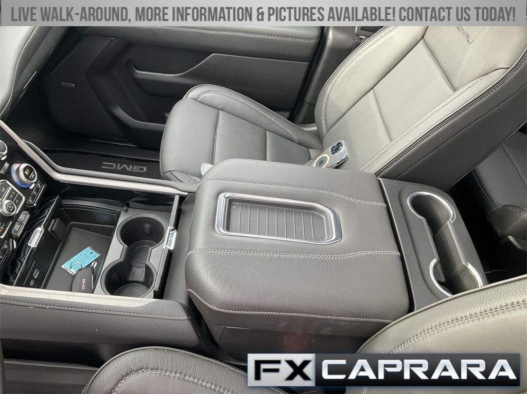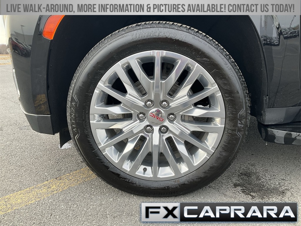 4WD, 12-Way Power Seat Adjusters, 14 Speakers, 15" Diagonal Multi-Color Head-Up Display, 2 Presets For Outside Rearview Mirrors, 3.23 Rear Axle Ratio, 3rd Row 60/40 Power-Folding Split-Bench Seat, 3rd row seats: split-bench, 4-Wheel Disc Brakes, ABS brakes, Adaptive Cruise Control, Adaptive suspension, Air Conditioning, Alloy wheels, AM/FM radio: SiriusXM with 360L, AM/FM Stereo, Apple CarPlay/Android Auto, Auto High-beam Headlights, Auto-dimming door mirrors, Auto-dimming Rear-View mirror, Auto-leveling suspension, Automatic Emergency Braking, Automatic temperature control, Bodyside moldings, Bose 14-Speaker Surround w/CenterPoint, Brake assist, Bright Front & Rear Door Sill Plates, Bumpers: body-color, Chrome Door Handles w/Body-Color Strip, Compass, Delay-off headlights, Driver door bin, Driver vanity mirror, Dual Exhaust System, Dual front impact airbags, Dual front side impact airbags, Electronic Stability Control, Emergency communication system: OnStar and GMC connected services capable, Enhanced Automatic Emergency Braking, Floor Console, Following Distance Indicator, Forward Collision Alert, Four wheel independent suspension, Front & Rear Park Assist, Front anti-roll bar, Front Bucket Seats, Front Center Armrest, Front dual zone A/C, Front fog lights, Front Pedestrian Braking, Front reading lights, Fully automatic headlights, Galvano Bodyside Moldings, Garage door transmitter, Hands-Free Power Programmable Rear Liftgate, HD Surround Vision, Heads-Up Display, Heated 2nd Row Outboard Position Seats, Heated door mirrors, Heated Driver & Front Passenger Seats, Heated front seats, Heated rear seats, Heated Steering Wheel, Heated steering wheel, Hill Descent Control, Illuminated entry, Inside Rear-View Auto-Dimming Mirror, IntelliBeam Automatic High Beam On/Off, Lane Change Alert w/Side Blind Zone Alert, Lane Keep Assist w/Lane Departure Warning, Low tire pressure warning, Magnetic Ride Control Suspension, Memory seat, Navigation System, Occupant sensing airbag, Outside Heated Power-Adjustable Mirrors, Outside temperature display, Overhead airbag, Overhead console, Panic alarm, Passenger door bin, Passenger vanity mirror, Perforated Heated & Ventilated Dr & Frt Pass Seats, Perforated Leather Seating Surfaces, Power door mirrors, Power driver seat, Power Liftgate, Power passenger seat, Power Release 2nd Row Bucket Seats, Power steering, Power Tilt & Telescopic Steering Column, Power windows, Rain sensing wipers, Rear air conditioning, Rear anti-roll bar, Rear Cross Traffic Alert, Rear Pedestrian Alert, Rear reading lights, Rear window defroster, Rear window wiper, Remote keyless entry, Roof rack: rails only, Safety Alert Seat, Security system, SiriusXM w/360L, Speed control, Speed-sensing steering, Split folding rear seat, Spoiler, Steering wheel memory, Steering wheel mounted audio controls, Tachometer, Telescoping steering wheel, Tilt steering wheel, Traction control, Trip computer, Turn signal indicator mirrors, Universal Home Remote, Variably intermittent wipers, Ventilated front seats, Voltmeter, Wheels: 20" x 9" 6-Spoke Polished Aluminum, Wireless Charging, 4WD.