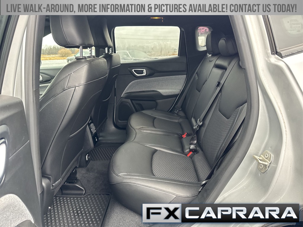 4WD, 17" x 7" Aluminum Wheels, 2nd Row USB Type A/C Charge Only, 3.73 Final Drive Ratio, 360 Surround View Camera System, 4-Wheel Disc Brakes, 6 Speakers, ABS brakes, Adaptive Cruise Control w/Stop & Go, Air Conditioning, Air Conditioning ATC w/Dual Zone Control, All-Season Floor Mats, Alloy wheels, AM/FM radio: SiriusXM, Auto High-beam Headlights, Auto-Dimming Rear-View Mirror, Brake assist, Bumpers: body-color, Compass, Convenience Group, Delay-off headlights, Driver Assistance Group, Driver door bin, Driver vanity mirror, Dual front impact airbags, Dual front side impact airbags, Electronic Stability Control, Emergency communication system: Jeep Connect, Foot Activated Open 'N Go Liftgate, Four wheel independent suspension, Front anti-roll bar, Front Bucket Seats, Front Center Armrest w/Storage, Front fog lights, Front License Plate Bracket, Front reading lights, Fully automatic headlights, Heated door mirrors, Heated Front Seats, Heated Steering Wheel, Humidity Sensor, Illuminated entry, Knee airbag, Leather Shift Knob, Leather steering wheel, Low tire pressure warning, Occupant sensing airbag, Outside temperature display, Overhead airbag, Overhead console, P&P Park & Unpark Assist System, Panic alarm, ParkSense Fr/Rr Park Assist System, ParkView Rear Back-Up Camera, Passenger door bin, Passenger vanity mirror, Power 2-Way Driver Lumbar Adjust, Power door mirrors, Power Liftgate, Power steering, Power windows, Premium Cloth/Vinyl Bucket Seats, Premium LED Fog Lamps, Quick Order Package 29J Latitude, Radio: Uconnect 5 w/10.1" Display, Rain Sensitive/Intermittent Wipers, Rear anti-roll bar, Rear seat center armrest, Rear window defroster, Rear window wiper, Remote keyless entry, Remote Start System, Reversible Carpet/Vinyl Cargo Mat, Security system, Sliding Sun Visors w/Illuminated Mirrors, Speed control, Split folding rear seat, Spoiler, Steering wheel mounted audio controls, Tachometer, Telescoping steering wheel, Tilt steering wheel, Traction control, Trip computer, Universal Garage Door Opener, Variably intermittent wipers, Windshield Wiper De-Icer, Wireless Charging Pad, 4WD.