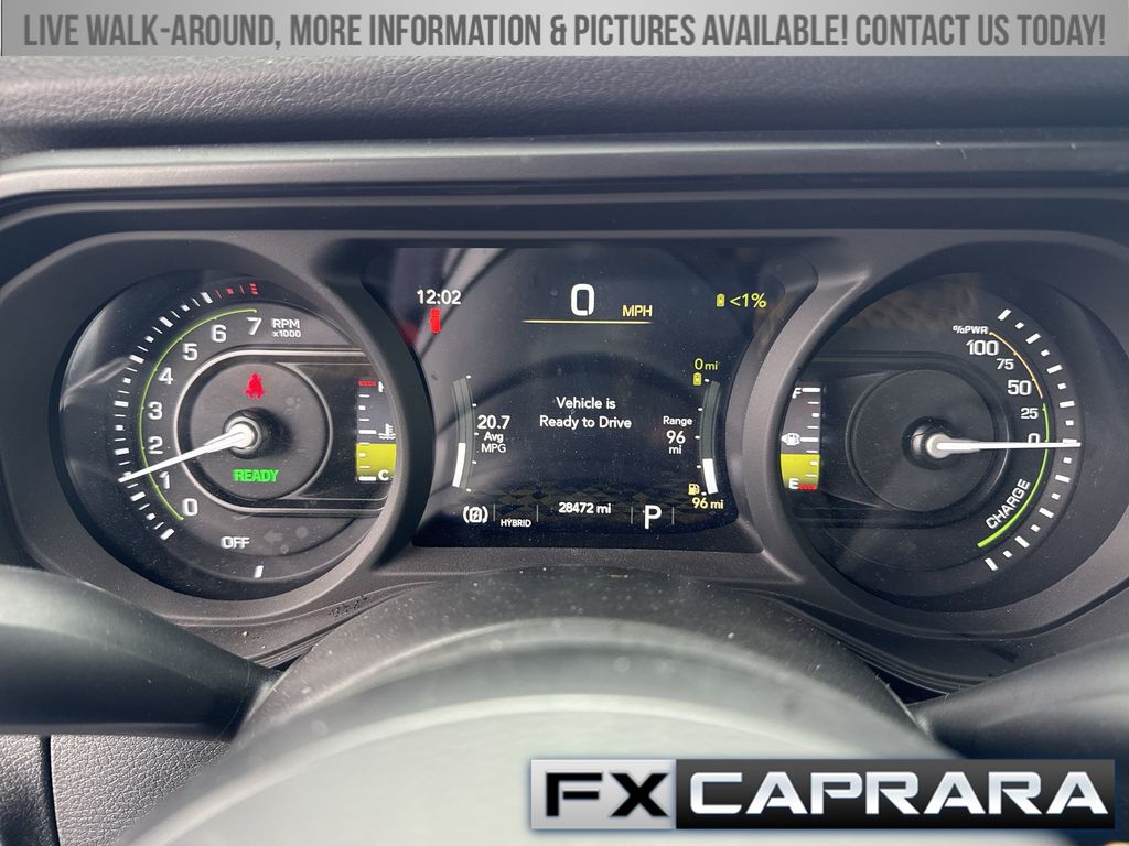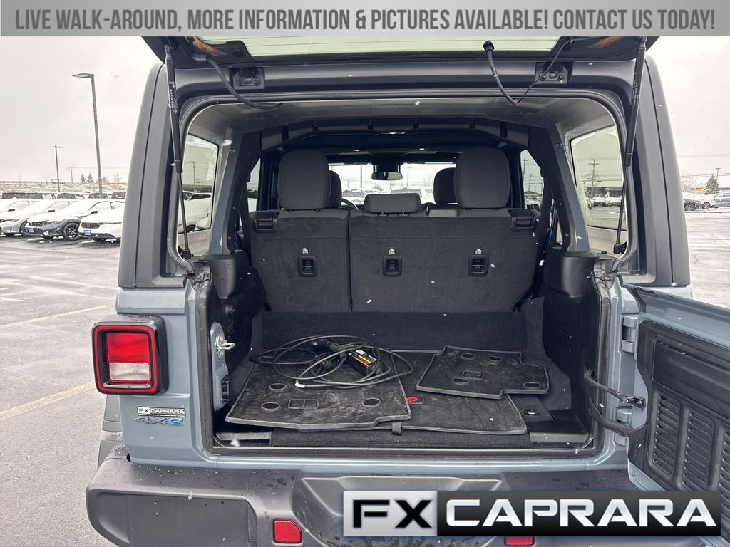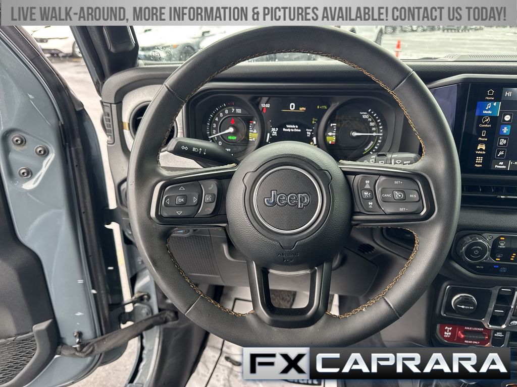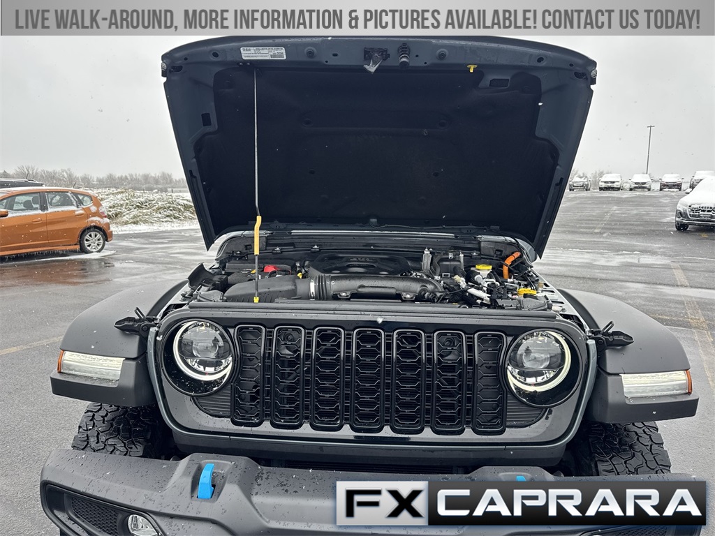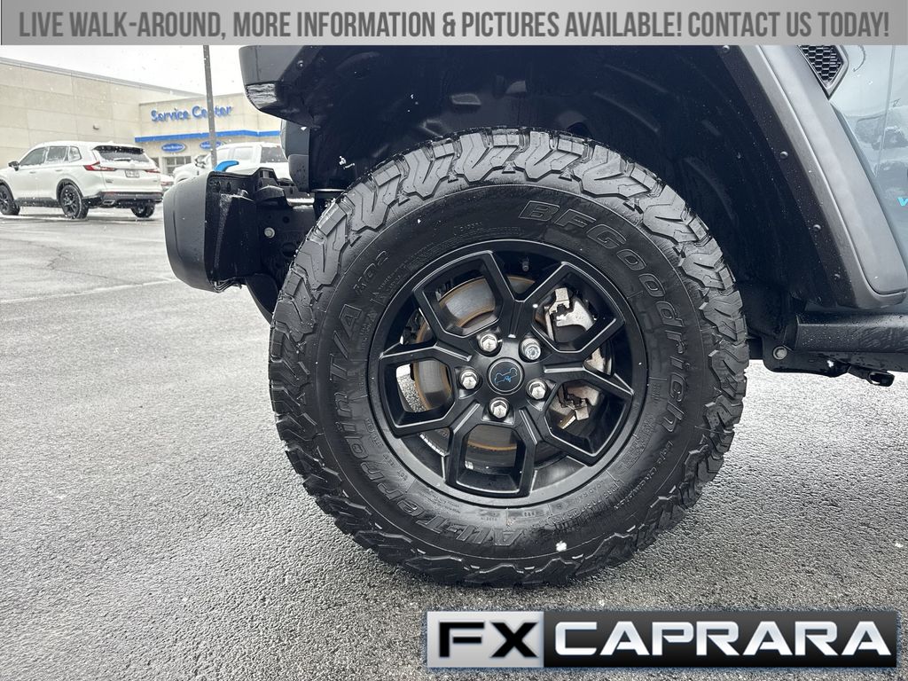 2.0L I4 DOHC, 2-Door Passive Entry, Front Door Locks, 4-Wheel Disc Brakes, 4xe 4-Wheel Drive Swing Gate Decal, 7 & 4 Pin Wiring Harness, 8 Speakers, 97 MPH Vehicle Max Speed Calibration, ABS brakes, Air Conditioning, Alloy wheels, Apple CarPlay/Android Auto, Automatic temperature control, Auxiliary Switches, Black 3-Piece Hard Top, Black Grille, Brake assist, Cloth Low-Back Bucket Seats, Compass, Convenience Group, Conventional Differential Front Axle, Delay-off headlights, Driver door bin, Driver vanity mirror, Dual front impact airbags, Dual front side impact airbags, E-Locker Rear Axle, Electronic Stability Control, Emergency/Assistance Call, Freedom Panel Storage Bag, Front anti-roll bar, Front Bucket Seats, Front Center Armrest w/Storage, Front dual zone A/C, Front fog lights, Front LED Fog Lamps, Front reading lights, Fully automatic headlights, Heated door mirrors, Heated Front Seats, Heated Steering Wheel, Illuminated entry, Integrated roll-over protection, LED Premium Reflector Headlamps, Low tire pressure warning, Molded in Color Rubicon Highline Flare, MOPAR All-Weather Floor Mats, No Soft Top, Occupant sensing airbag, Off-Road Plus Mode, Outside temperature display, Overhead airbag, Panic alarm, ParkView Rear Back-Up Camera, Passenger door bin, Passenger vanity mirror, Power door mirrors, Power steering, Power windows, Quick Order Package 29W Willys, Radio data system, Radio: Uconnect 5 w/12.3" Display, Rear anti-roll bar, Rear reading lights, Rear Window Defroster, Rear Window Wiper/Washer, Remote keyless entry, Remote Start System, Security system, Speed control, Split folding rear seat, Sport Suspension, Steering wheel mounted audio controls, Tachometer, Telescoping steering wheel, Tilt steering wheel, Traction control, Trip computer, Universal Garage Door Opener, Variably intermittent wipers, Voltmeter, Wheels: 17" x 7.5" Painted Black, Wheels: 20" x 8" Machined/Painted Gray, Willy's Suspension, Willys, Willys 4xe Hood Decal, 2.0L I4 DOHC.