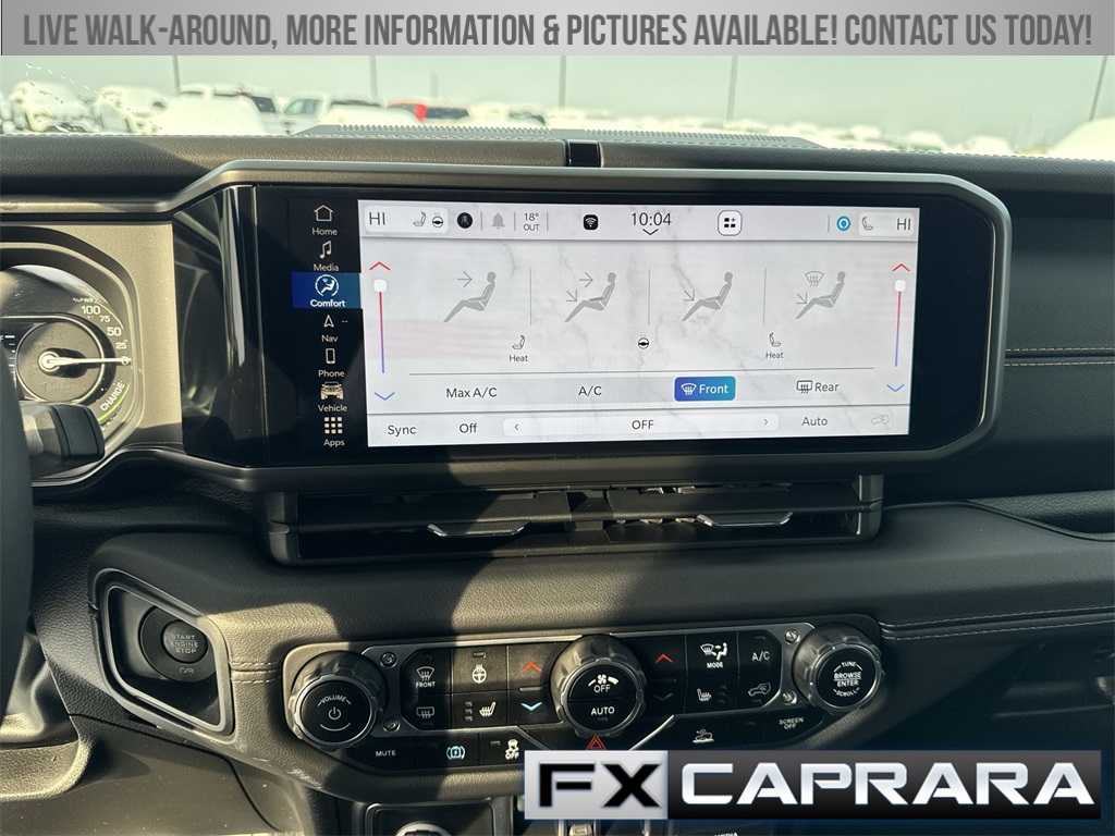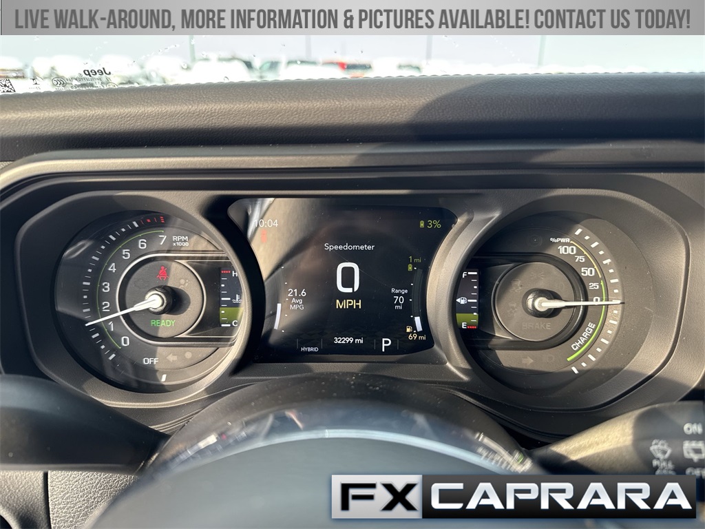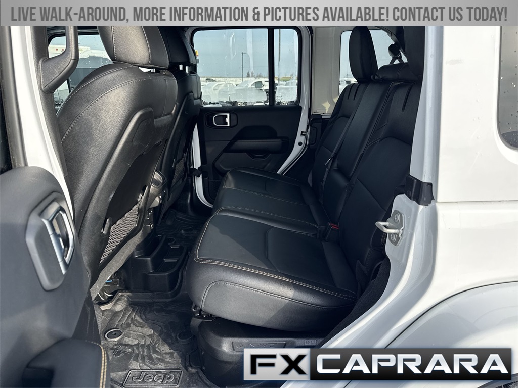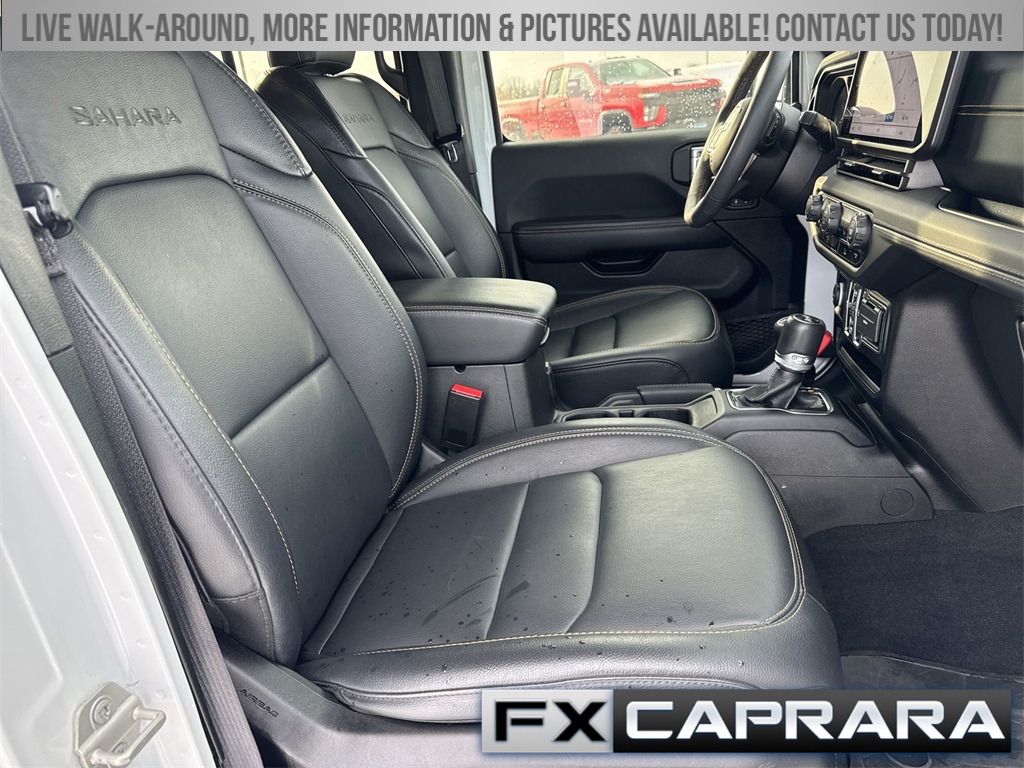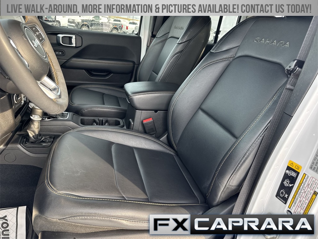 2.0L I4 DOHC, 12.3" Touchscreen Display, 3.73 Rear Axle Ratio, 4-Wheel Disc Brakes, 4G LTE Wi-Fi Hot Spot, 8 Speakers, ABS brakes, Air Conditioning, Alloy wheels, Alpine Premium Audio System, AM/FM radio: SiriusXM, Apple CarPlay, Apple CarPlay/Android Auto, Auto-Dimming Rear-View Mirror, Automatic temperature control, Brake assist, Cloth Low-Back Bucket Seats, Compass, Connected Travel & Traffic Services, Connectivity - US/Canada, Delay-off headlights, Disassociated Touchscreen Display, Driver door bin, Driver vanity mirror, Dual front impact airbags, Dual front side impact airbags, Electronic Stability Control, Emergency communication system: Jeep Connect, Front anti-roll bar, Front Bucket Seats, Front Center Armrest w/Storage, Front dual zone A/C, Front fog lights, Front License Plate Bracket, Front reading lights, Fully automatic headlights, Google Android Auto, GPS Navigation, HD Radio, Heated door mirrors, Heated front seats, Heated steering wheel, Illuminated entry, Integrated Center Stack Radio, Integrated Off-Road Camera, Integrated roll-over protection, Integrated Voice Command w/Bluetooth, Low tire pressure warning, MOPAR All-Weather Floor Mats, Occupant sensing airbag, Outside temperature display, Overhead airbag, Panic alarm, ParkView Rear Back-Up Camera, Passenger door bin, Passenger vanity mirror, Power door mirrors, Power steering, Power Top Quarter Window Storage Bag, Power windows, Quick Order Package 29P Sahara, Radio data system, Radio: Uconnect 5 Nav w/12.3" Display, Radio: Uconnect 5 w/12.3" Display, Rear anti-roll bar, Rear reading lights, Rear seat center armrest, Rear Window Defroster, Rear Window Wiper/Washer, Remote keyless entry, Removable Rear Quarter Windows, Security system, SiriusXM Radio Service, SiriusXM w/360L, Sky 1-Touch Power Top, Speed control, Split folding rear seat, Sport Suspension, Steering wheel mounted audio controls, Tachometer, Technology Group, Telescoping steering wheel, Tilt steering wheel, Traction control, Trip computer, Universal Garage Door Opener, Variably intermittent wipers, Voltmeter, Wheels: 20" x 8" Painted Black Aluminum, 2.0L I4 DOHC.