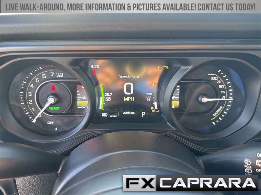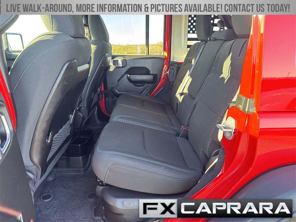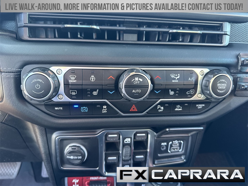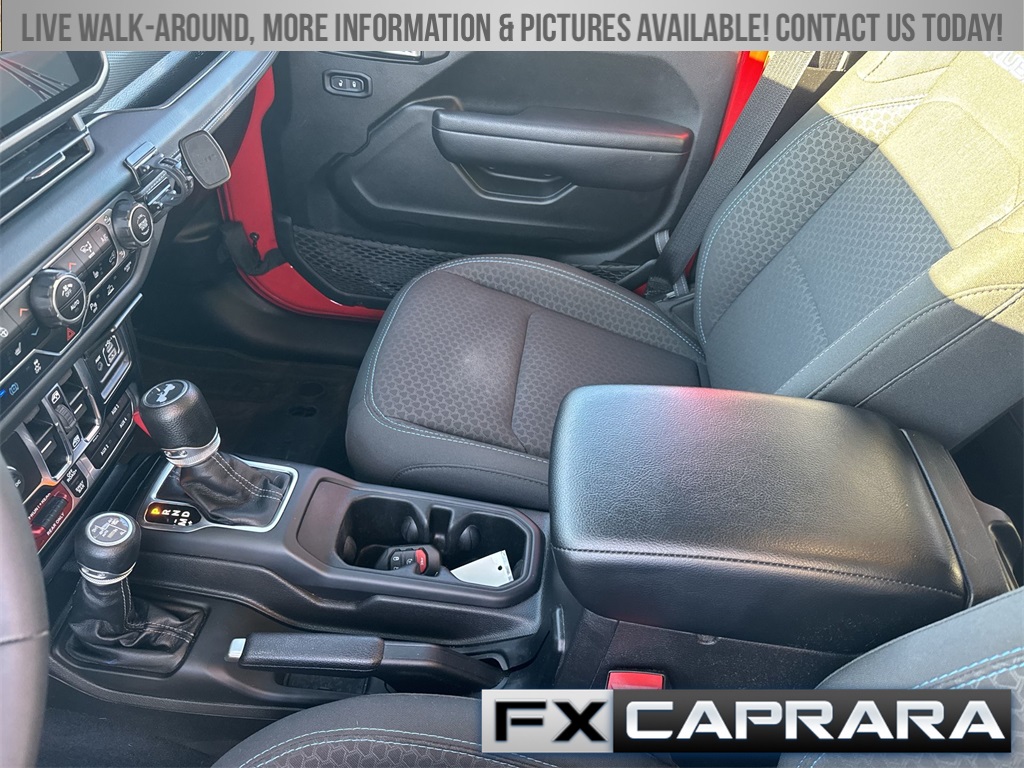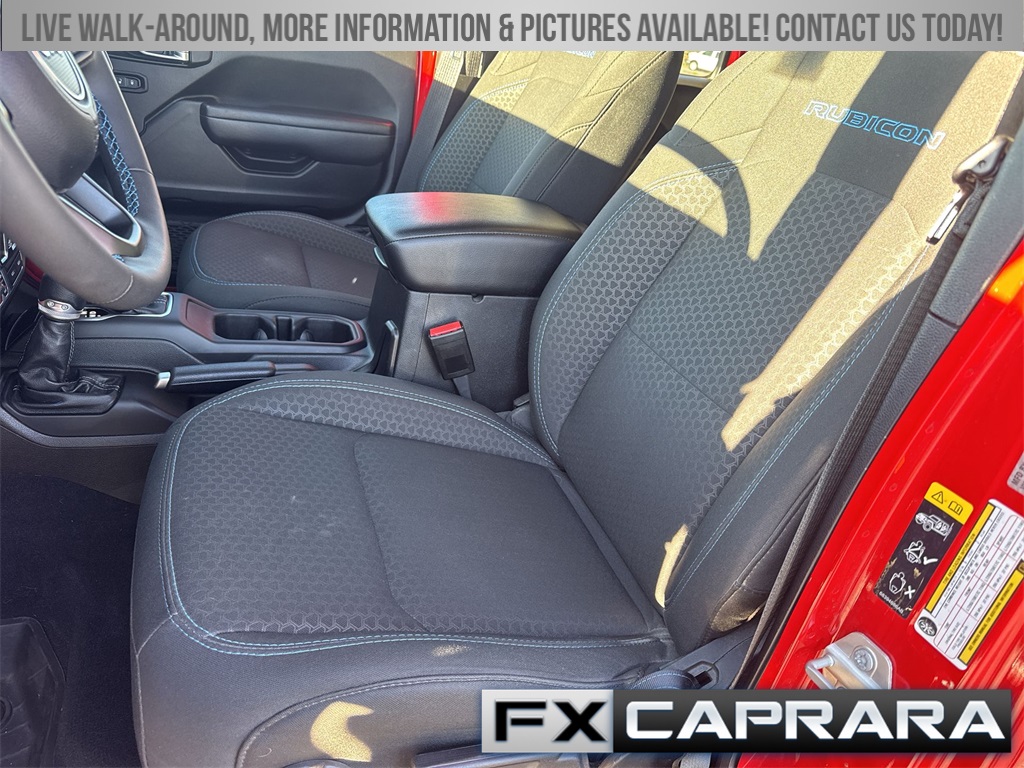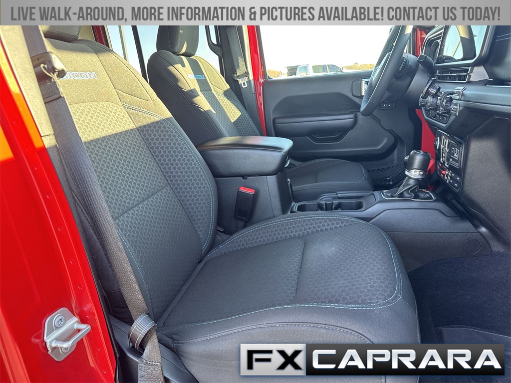 2.0L I4 DOHC, 12.3" Touchscreen Display, 4-Wheel Disc Brakes, 4.10 Rear Axle Ratio, 4G LTE Wi-Fi Hot Spot, 8 Speakers, ABS brakes, Air Conditioning, Alloy wheels, Alpine Premium Audio System, AM/FM radio: SiriusXM, Apple CarPlay, Apple CarPlay/Android Auto, Auto High Beam Headlamp Control, Auto-Dimming Rear-View Mirror, Automatic temperature control, Blind Spot & Cross Path Detection, Brake assist, Compass, Connected Travel & Traffic Services, Connectivity - US/Canada, Convenience Group, Delay-off headlights, Disassociated Touchscreen Display, Driver door bin, Driver vanity mirror, Dual front impact airbags, Dual front side impact airbags, Electronic Stability Control, Emergency communication system: Jeep Connect, Front anti-roll bar, Front Bucket Seats, Front Center Armrest w/Storage, Front dual zone A/C, Front fog lights, Front License Plate Bracket, Front reading lights, Fully automatic headlights, Google Android Auto, GPS Navigation, HD Radio, Heated door mirrors, Heated Front Seats, Heated Steering Wheel, Illuminated entry, Integrated Center Stack Radio, Integrated Off-Road Camera, Integrated roll-over protection, Integrated Voice Command w/Bluetooth, Low tire pressure warning, MOPAR All-Weather Floor Mats, MOPAR Performance Satin Black Grille, Occupant sensing airbag, Outside temperature display, Overhead airbag, Panic alarm, ParkSense Rear Park Assist System, ParkView Rear Back-Up Camera, Passenger door bin, Passenger vanity mirror, Performance Suspension, Power door mirrors, Power steering, Power Top Quarter Window Storage Bag, Power windows, Quick Order Package 29V Rubicon, Radio data system, Radio: Uconnect 5 Nav w/12.3" Display, Radio: Uconnect 5 w/12.3" Display, Rear anti-roll bar, Rear reading lights, Rear Window Defroster, Rear Window Wiper/Washer, Remote keyless entry, Remote Start System, Removable Rear Quarter Windows, Safety Group, Security system, SiriusXM Radio Service, SiriusXM w/360L, Sky 1-Touch Power Top, Speed control, Split folding rear seat, Steering wheel mounted audio controls, Sustainable Premium Cloth Seats, Tachometer, Technology Group, Telescoping steering wheel, Tilt steering wheel, Traction control, Trip computer, Universal Garage Door Opener, Variably intermittent wipers, Voltmeter, Wheels: 17" x 7.5" Machined w/Black Pockets, 2.0L I4 DOHC.