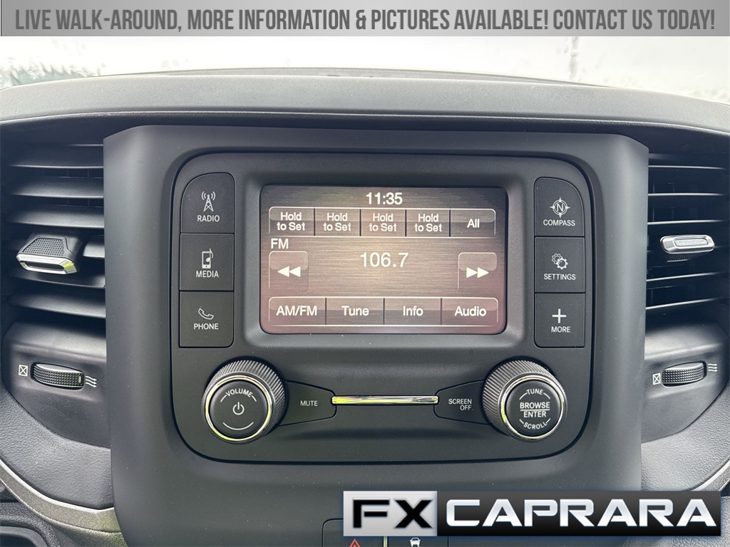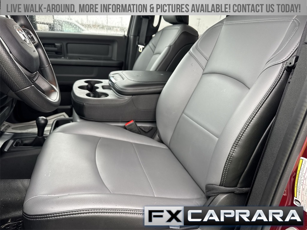 17" x 7.5" Steel Styled Wheels, 2 Way Rear Headrest Seat, 3.73 Axle Ratio, 4 Way Front Headrests, 4-Wheel Disc Brakes, 40/20/40 Split Bench Seat, 5th Wheel/Gooseneck Towing Prep Group, 6 Speakers, ABS brakes, Active Noise Control System, Air Conditioning, AM/FM radio, Black Exterior Mirrors, Brake assist, Center Hub, Clearance Lamps, Cold Weather Group, Compass, Delay-off headlights, Driver door bin, Dual front impact airbags, Dual front side impact airbags, Electronic Stability Control, Electronically Controlled Throttle, Emergency communication system: SiriusXM Guardian, Engine Block Heater, Front anti-roll bar, Front Center Armrest w/Storage, Front License Plate Bracket, Front reading lights, Fully automatic headlights, Global Telematics Box Module (TBM), GPS Antenna Input, Heavy Duty Vinyl 40/20/40 Split Bench Seat, Illuminated entry, Integrated Voice Command w/Bluetooth, Low tire pressure warning, Manual Adjust 4-Way Driver Seat, Manual Folding Exterior Mirrors, Manual Telescoping Mirrors, Manufacturer's Statement of Origin, MOPAR Spray In Bedliner, MOPAR Winter Front Grille Cover, Occupant sensing airbag, Outside temperature display, Overhead airbag, Overhead console, ParkView Rear Back-Up Camera, Passenger door bin, Passenger vanity mirror, Power steering, Power windows, Quick Order Package 2HA Tradesman, Radio data system, Radio: Uconnect 3 w/5" Display, Rear anti-roll bar, Rear Folding Seat, Rear step bumper, SiriusXM Radio Service, Speed control, Storage Tray, Tachometer, Tilt steering wheel, Tip Start, Tow Hooks, Traction control, Tradesman Level 1 Equipment Group, Trailer Brake Control, Trailer Light Check, Variably intermittent wipers, Voltmeter.