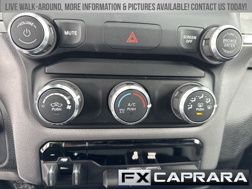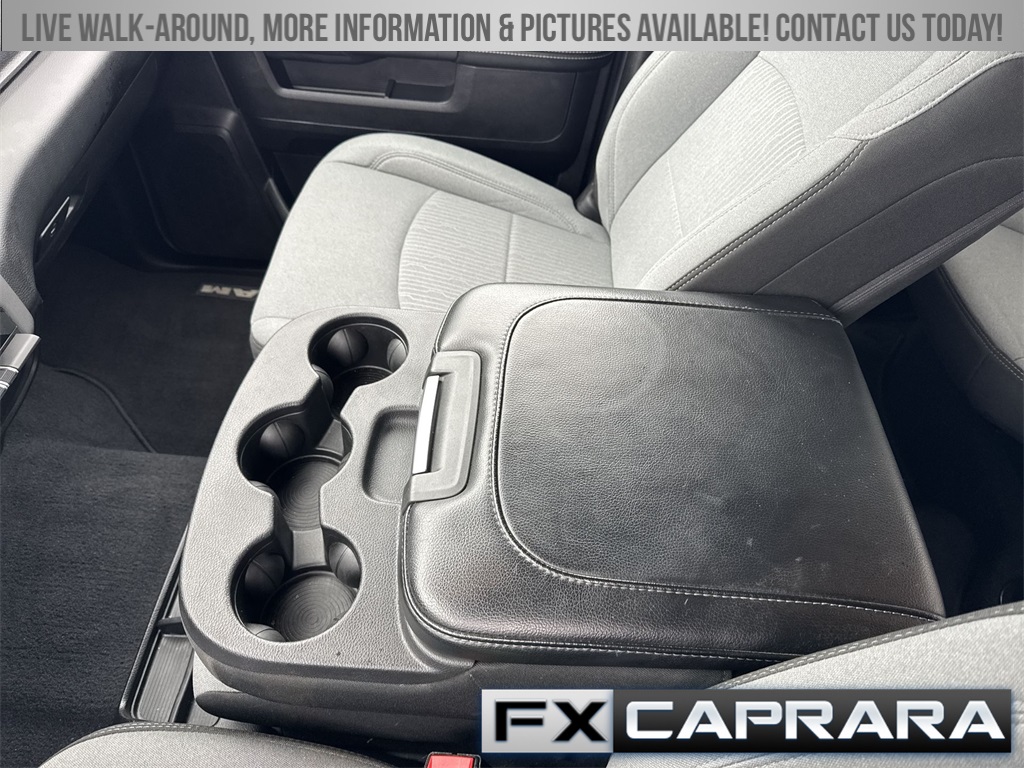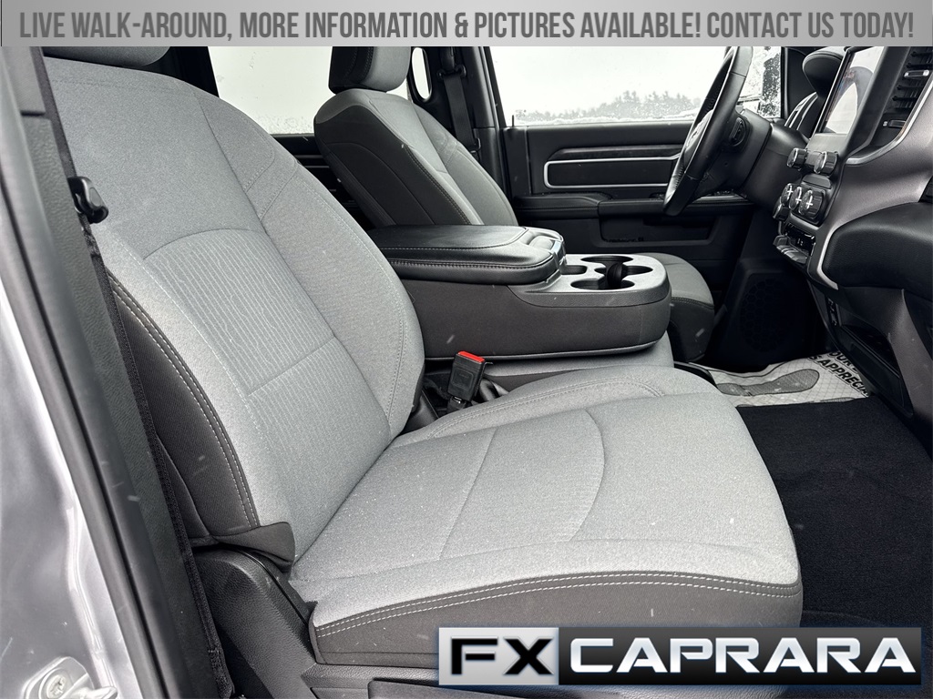 2 Way Rear Headrest Seat, 2nd Row In Floor Storage Bins, 3.73 Axle Ratio, 4 Way Front Headrests, 4-Wheel Disc Brakes, 40/20/40 Split Bench Seat, 4G LTE Wi-Fi Hot Spot, 6 Speakers, 8.4" Touchscreen Display, 9 Alpine Speakers w/Subwoofer, ABS brakes, Active Noise Control System, Air Conditioning, Anti-Spin Differential Rear Axle, Apple CarPlay, Auto Power-Folding Mirrors, Bed Utility Group, Big Horn IP Badge, Black Exterior Mirrors, Bluetooth Handsfree Phone & Audio, Brake assist, Bumpers: chrome, Center Hub, Center Stack Storage Drawer, Chrome Flat Cab-Length Side Steps, Cloth 40/20/40 Bench Seat, Compass, Connectivity - US/Canada, Delay-off headlights, Driver door bin, Dual front impact airbags, Dual front side impact airbags, Dual Glove Boxes, Electronic Stability Control, Electronically Controlled Throttle, Emergency communication system: SiriusXM Guardian, Exterior Mirrors Courtesy Lamps, Exterior Mirrors w/Heating Element, Exterior Mirrors w/Supplemental Signals, Foam Bottle Insert (Door Trim Panel), Footwell Courtesy Lamp, For Details, Visit DriveUconnect.com, For More Info, Call 800-643-2112, Forward & Reverse Utility Lights, Front anti-roll bar, Front Armrest w/Cupholders, Front Center Armrest w/Storage, Front Center Seat Cushion Storage, Front Fog Lamps, Front License Plate Bracket, Front reading lights, Front Seat Back Map Pockets, Fully automatic headlights, Global Telematics Box Module (TBM), Glove Box Lamp, Google Android Auto, GPS Antenna Input, Heated door mirrors, Illuminated entry, Integrated Center Stack Radio, Integrated Voice Command w/Bluetooth, Leather Wrapped Steering Wheel, LED Bed Lighting, Level 1 Equipment Group, Locking Lower Glove Box, Low tire pressure warning, Manual Adjust 4-Way Driver Seat, Manual Adjust 4-Way Front Passenger Seat, Manufacturer's Statement of Origin, Mirror Running Lights, MOPAR Deployable Bed Step, MOPAR Spray In Bedliner, Occupant sensing airbag, Outside temperature display, Overhead airbag, Overhead console, Panic alarm, ParkView Rear Back-Up Camera, Passenger door bin, Passenger vanity mirror, Power 2-Way Driver Lumbar Adjust, Power Adjust 8-Way Driver Seat, Power Adjust Mirrors, Power Adjustable Convex Aux Mirrors, Power door mirrors, Power Heated Fold Telescope Mirrors, Power steering, Power Telescoping Mirrors, Power windows, Premium Cloth 40/20/40 Bench Seat (DISC), Protection Group, Quick Order Package 2GZ Big Horn, Radio data system, Radio: Uconnect 3 w/5" Display, Radio: Uconnect 5 W w/8.4" Display, Rear 60/40 Folding Seat, Rear anti-roll bar, Rear Dome w/On/Off Switch Lamp, Rear Folding Seat, Rear seat center armrest, Rear step bumper, Remote keyless entry, Remote USB Port - Charge Only, Selectable Tire Fill Alert, SiriusXM Radio Service, SiriusXM Satellite Radio, Speed control, Steering Wheel Mounted Audio Controls, Storage Tray, Tachometer, Tilt steering wheel, Tip Start, Tow Hooks, Traction control, Trip computer, Turn signal indicator mirrors, Variably intermittent wipers, Voltmeter, Wheels: 18" x 8.0" Polished Aluminum, Wheels: 18" x 8.0" Steel Chrome Clad.